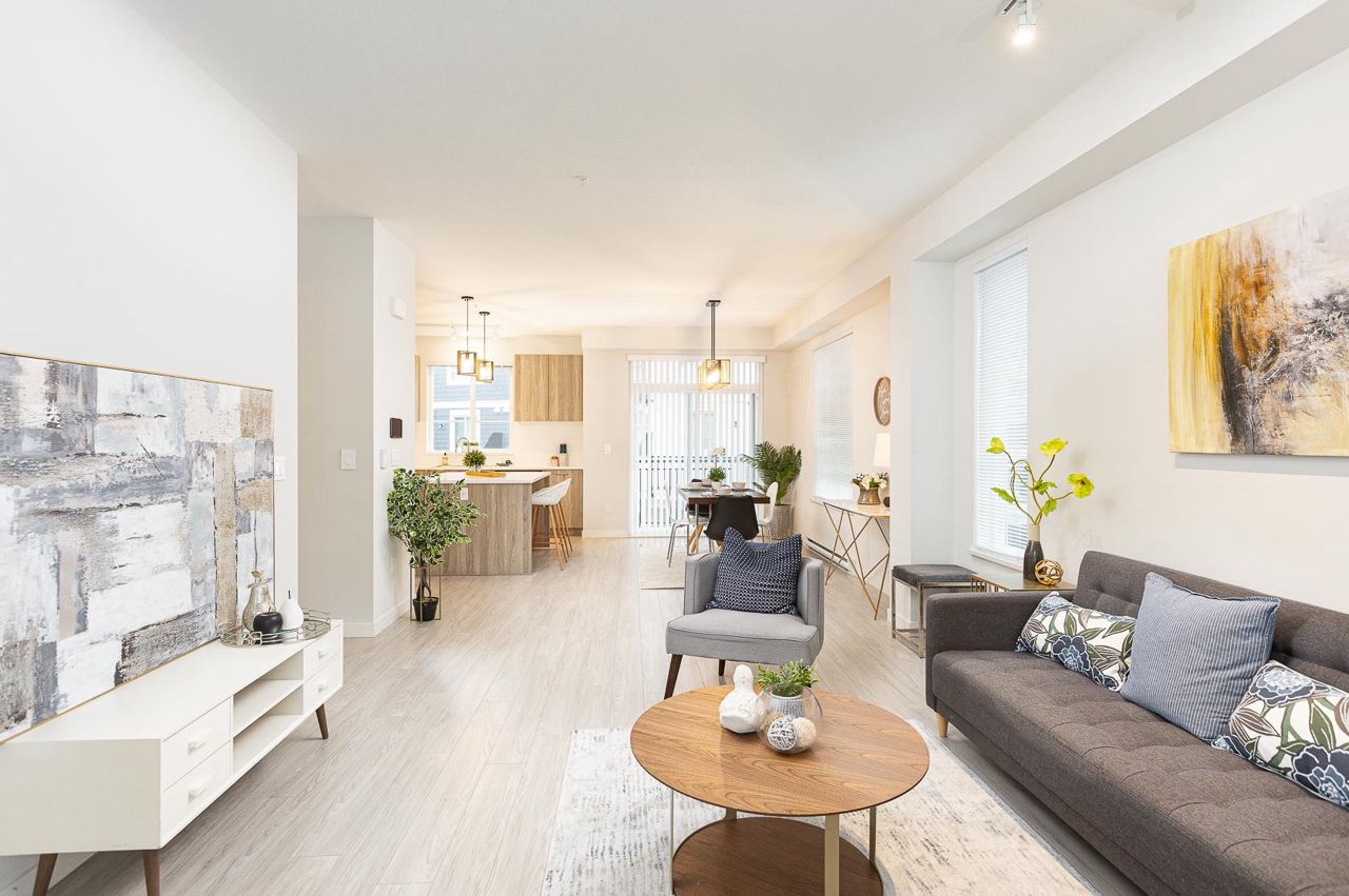 Welcome to Archer Green, a 3 bed+den 2.5 bath quality townhouse built by Polygon.This end unit w/ NW facing home boasts a heritage front door w/ patio, fenced yard, a gourmet kitchen loaded w/ sleek SS appliances & stone countertop, a large kitchen island, airy 9 foot ceilings on the main & in the main bdrm, laminate flooring in common areas, plush carpeting in bdrms & stairways, & convenient powder room w/ porcelain tile flooring. Equipped with Smart Home control, & enjoy parking for 2 cars in the side-by-side garage,. Indulge at The Archer Club, w/ 8,000 sqft of amenities, including:Outdoor pool & hot-tub, Outdoor lounge w/ a fire table, Gym, Fireside lounge, Multi-purpose room, Indoor dog wash station, BBQ area, Garden, Outdoor kid's play area, & Parcel lockers.