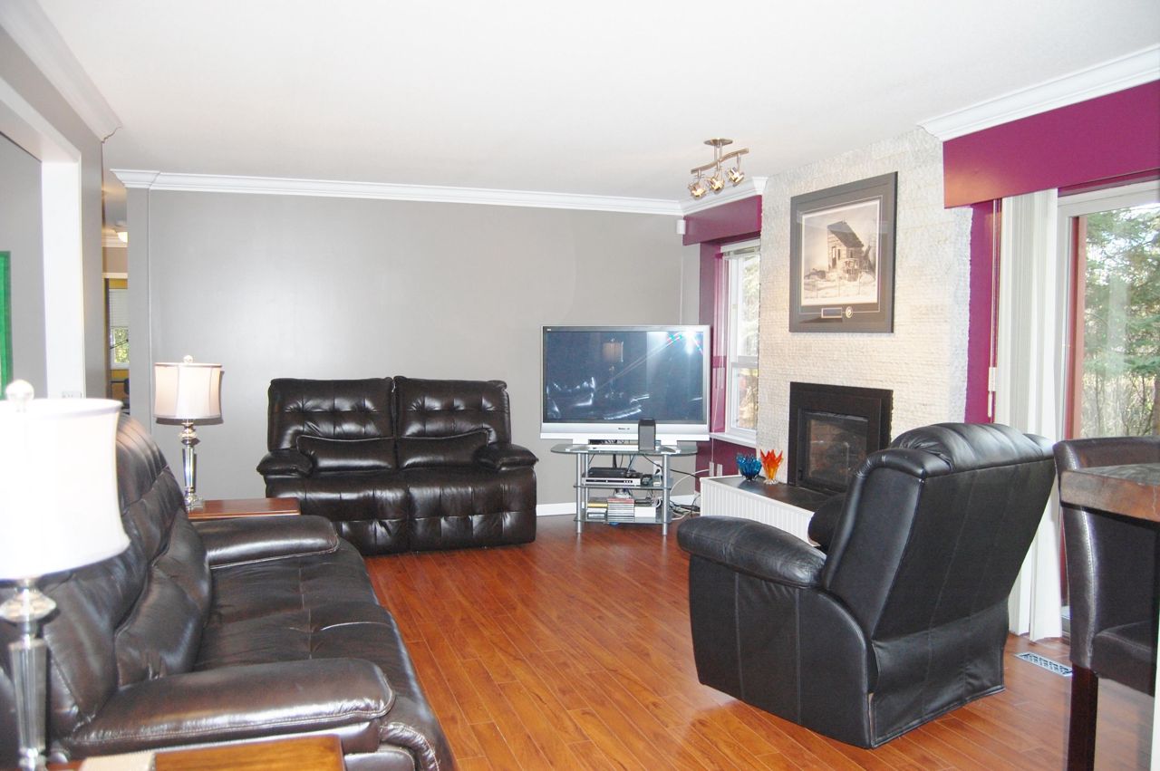 On a cul de sac of acre parcels, this rancher with full basement is set well back from the road, maximizing the fantastic private setting utilizing many trees, shrubs and raised garden beds There's 7/16" laminate floors and crown mouldings in nearly all main floor rooms. The kitchen has granite countertops, gas range and quality appliances. A 30x40 heated dream shop was added in 2012 with a 100am sub panel from the 200amp house main panel. 14x12 garden shed with power ties into the monitored security system. The home is wired for a generator if power is disrupted. A heat pump keeps the home comfortable and cool on hot days. The full basement features a 54' long recroom! There's also a bedroom/storage room, 3 piece bath and a cold room for preserves. This is the full package.