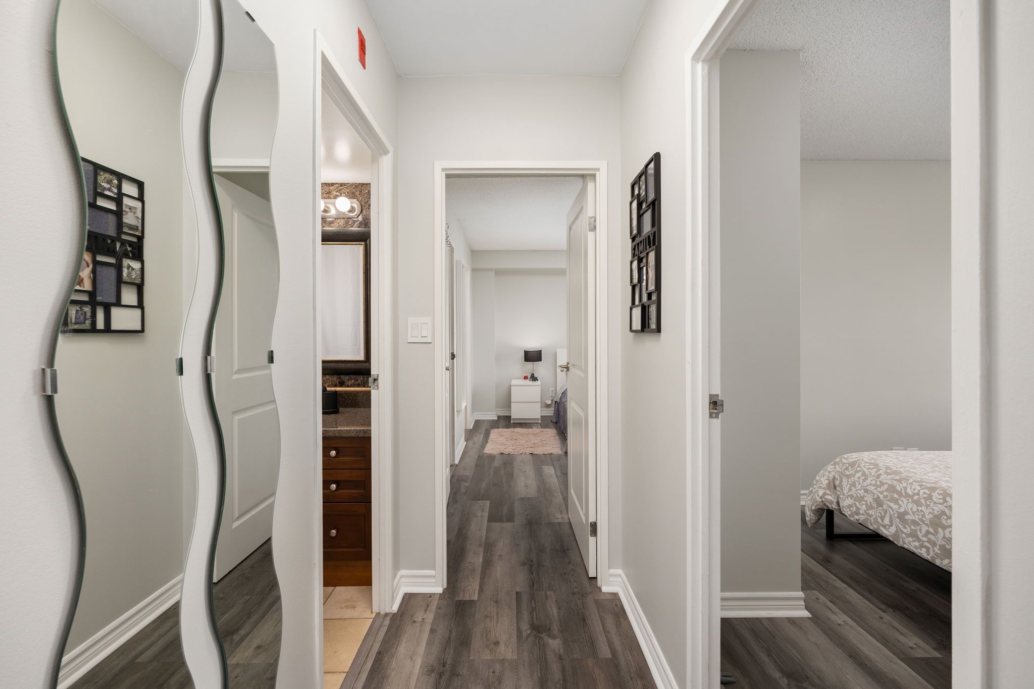 2 bedroom, 2 bathroom renovated condo in sought-after Erindale, Mississauga! Centrally located close to QEW, Huron Park, Erindale Park, Huron Park Recreation Centre, Erindale GO station, Square One, Trillium Hospital (M Site), Credit Valley Lawn Tennis Club, and Credit Valley Golf Club, UTM. Many Elementary and Secondary Schools, Groceries Stores, and other Amenities. Enjoy panoramic views from the Condo’s two south-facing balconies. Primary Bedroom has a spacious walk-in closet and ensuite. Condo has many upgraded features including: Marble Backsplash in Primary Ensuite, Updated Mantle for Wood Burning Fireplace, New S/S Appliances. See attachment to listing for Upgrades.S/S Dishwasher (Brand New), S/S Fridge, Ceran Top Stove, Stacked W & D , Two Walk-Out Balconies, Owned Hot Water Heater