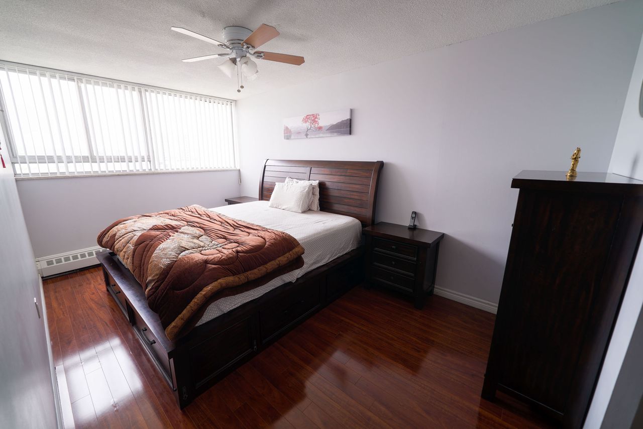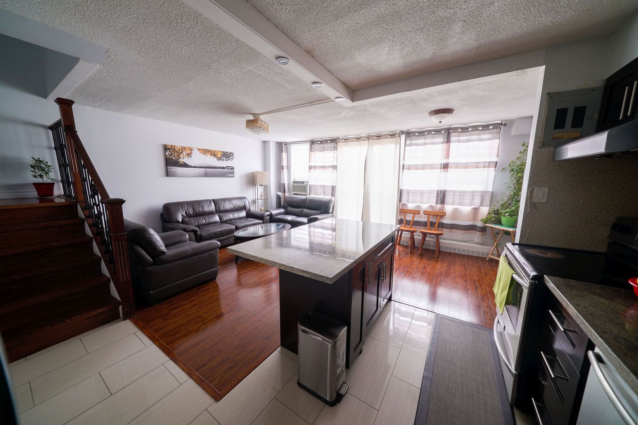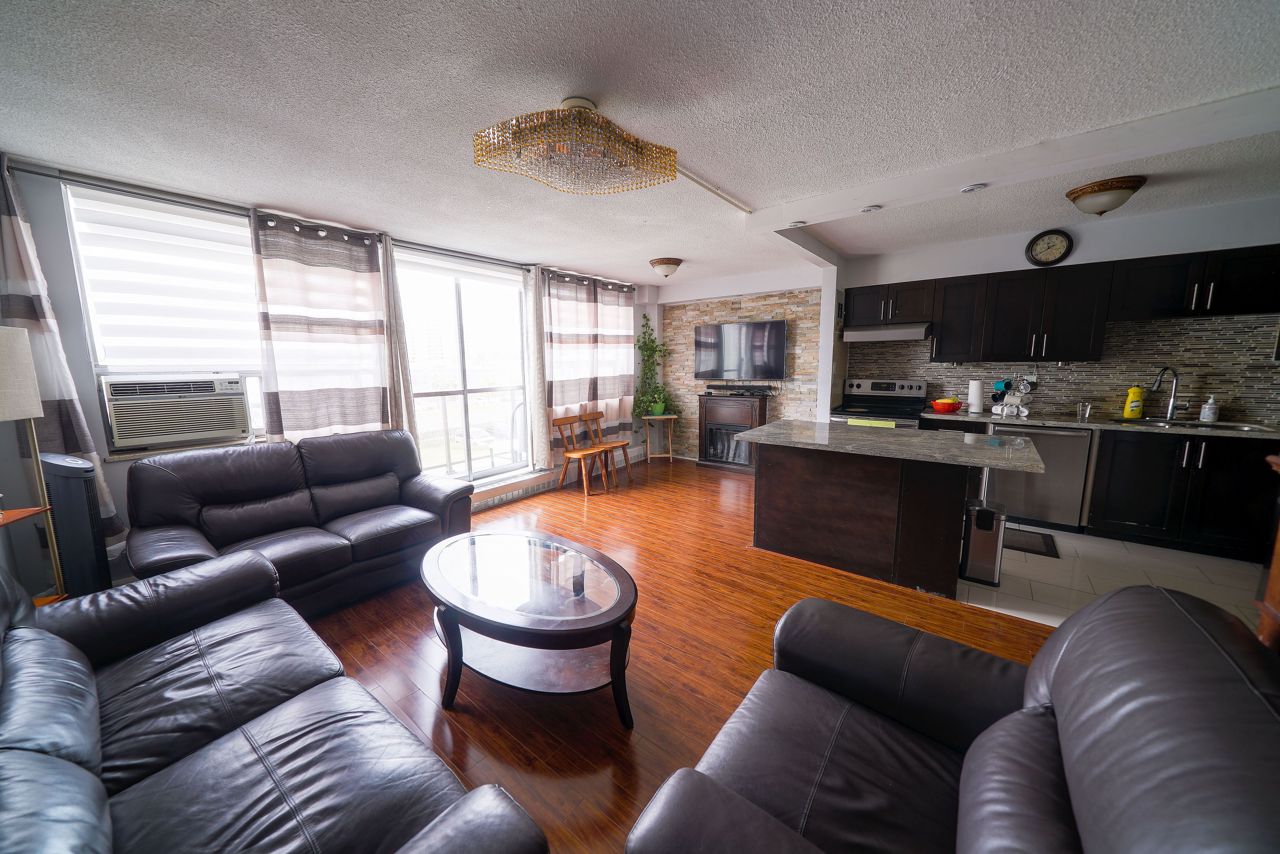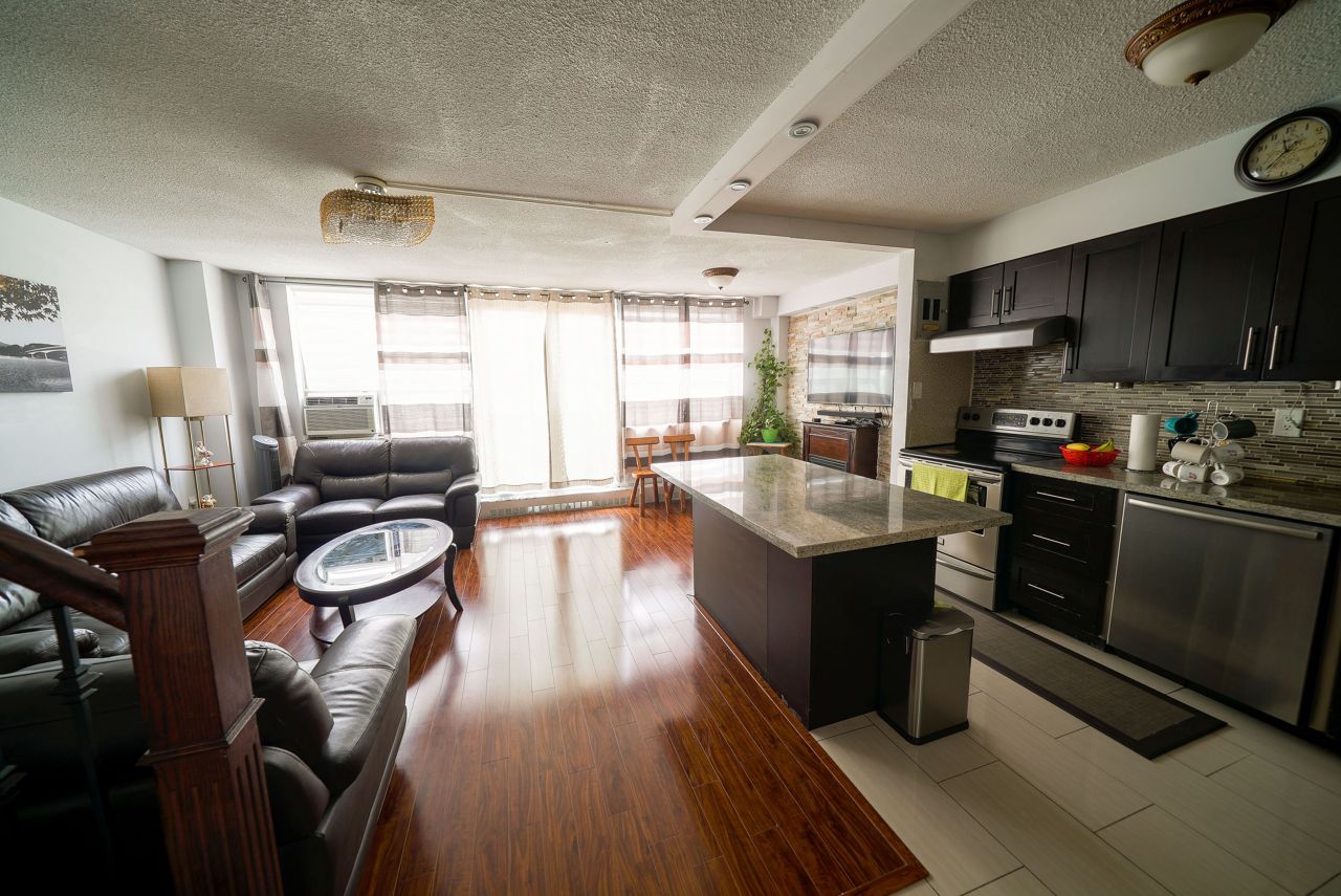 Spacious and bright two level unit with functional layout (1,178 sqft.), featuring 3 good size bedrooms, modern open concept kitchen with granite countertop and stainless steel appliances. Walk out to a large balcony. Spacious Master Bedroom With Ensuite Bath and Walk-In Closet. Large ensuite laundry room. Building features a gym, large party hall and kids play area. Located In One Of The Most Desired Areas In Mississauga. Close to Many Amenities, including shopping at Westdale Mall, Go Station and transit, UofT Mississauga and great elementary and secondary schools.Includes 3 wall AC units. All electrical light fixtures, including 3 chandeliers. All window coverings. Stainless steel appliances. Parking and locker included.