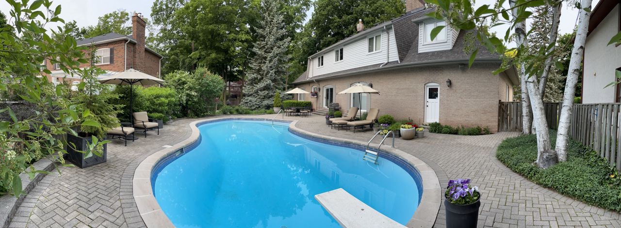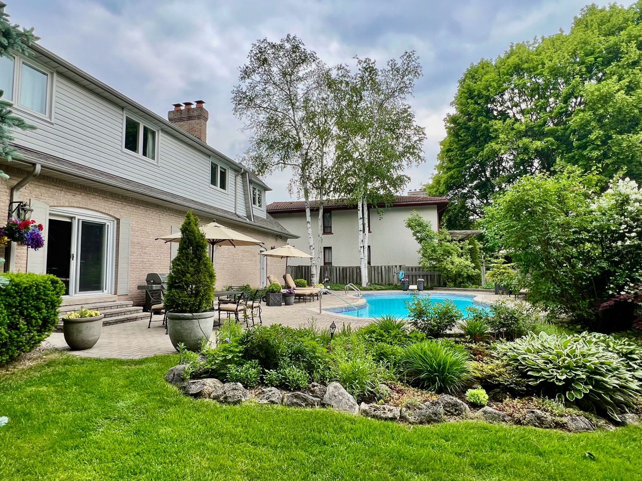Come and see this Beautiful Mississauga Showstopper!! Right in the heart of Sherwood Forest, this 3000 sqft + 1500sqft basement, is what dreams are made of.Close to highways and Top rated private and public schools, this family home is perfection. 5 bedrooms, 2.5 bathrooms, heated marble floors in the primary bathroom, vaulted ceilings in the primary and secondary bedrooms, a kitchen with walkout to pool and stone patio, and a mostly finished basement that adds an additional 1500 square feet of living space. This home also boasts black walnut hardwood floors in the living and dining room (the dining room is separated with French doors), central vacuum and outdoor sprinkler system, saltwater pool with two change rooms at the rear of the garage, oversized driveway, double car garage, stunning lawn and landscaping featuring natural stone and lush greenery, all situated on a gorgeous, ultra wide quiet, tree-lined street, and so much more!