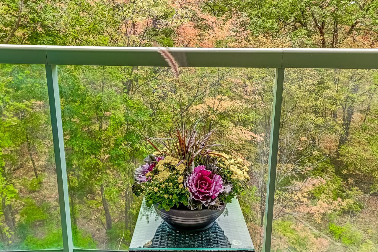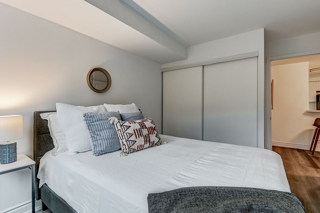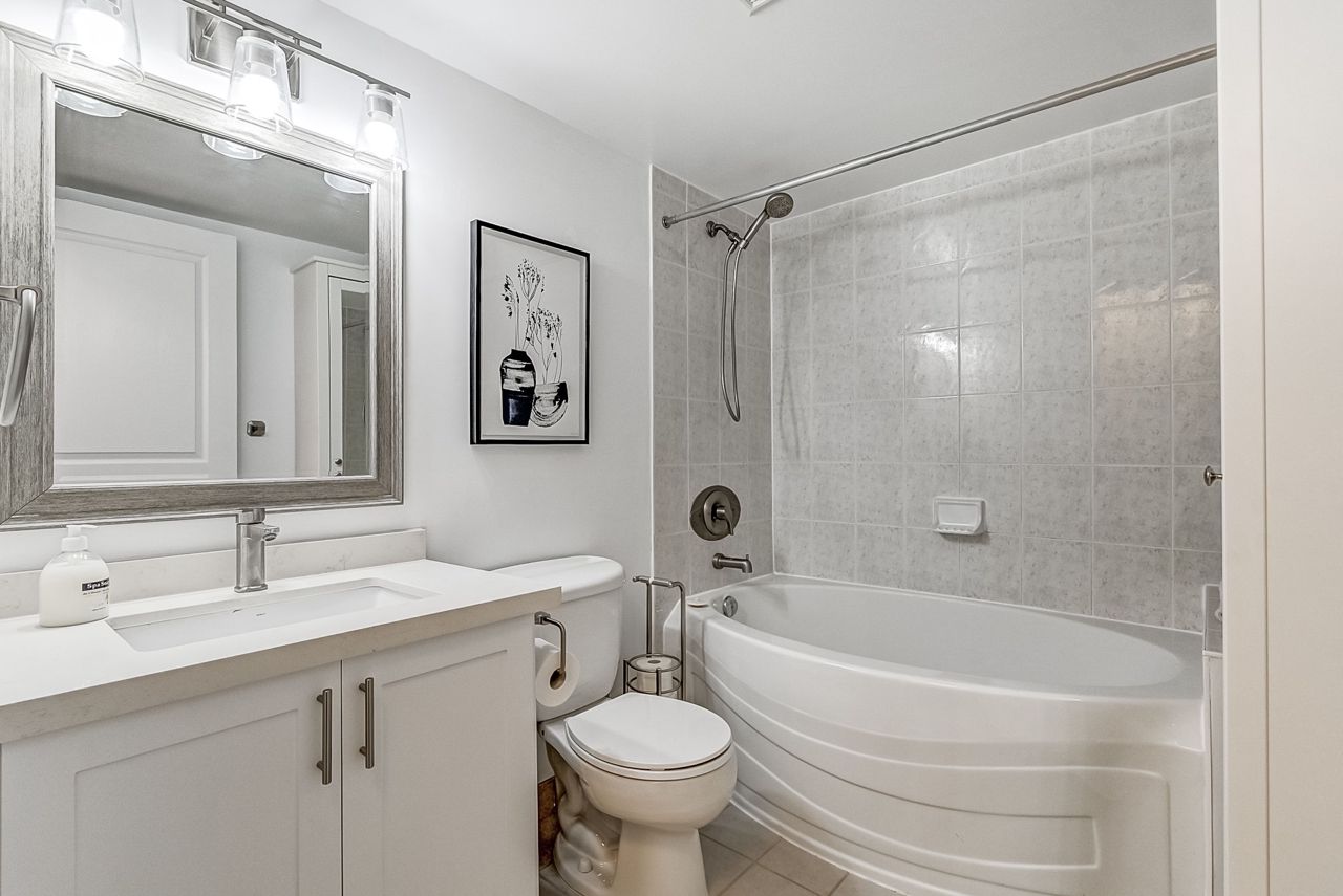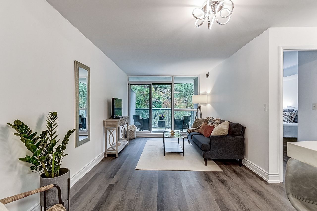 Beautiful renovated 1 BR 1 Bath unit with parking space and a large private balcony overlooking a tranquil ravine/forest. Gas, Water and Hydro are all included. This well-maintained complex is super convenient and just steps to restaurants and fantastic shopping, including Erin Mills Town Centre. Really close to the Credit Valley Hospital (15 mins walk); fantastic schools, including U of T Mississauga; beautiful parks and trails, Hwys 403 and 407; and transit is at your door!The complex offers high-end amenities, such as 24 Hr Gatehouse Security, Indoor Salt Water Pool, Gym, Hot Tub/Sauna, Tennis Court, Party Room, Library and more. This spacious unit features newer flooring, with no carpet, smooth ceilings, modern light fixtures, floor to ceiling windows in the living area, and upgraded baseboards. The stunning kitchen boasts newer stainless-steel appliances, subway-tiled backsplash; quartz counters; double undermount sink; and an arched breakfast bar.Your own locker ‘room’, is conveniently located just behind your parking spot. Required:fully completed application; full UTD Equifax credit report with score, photo ID, references contact info, employment letter, last 6 weeks of pay stubs.