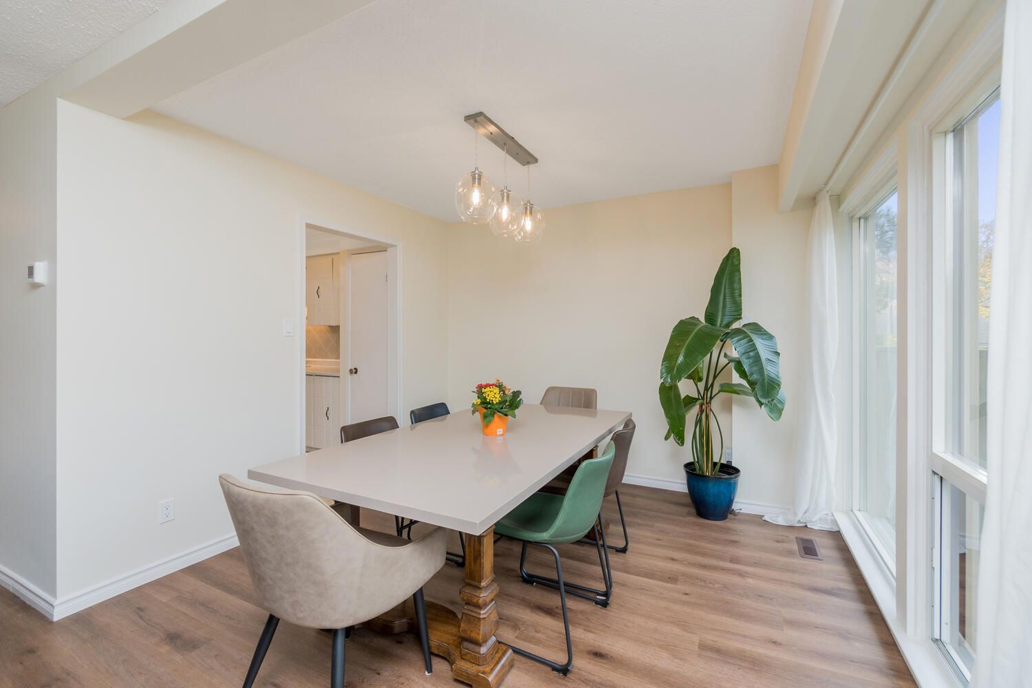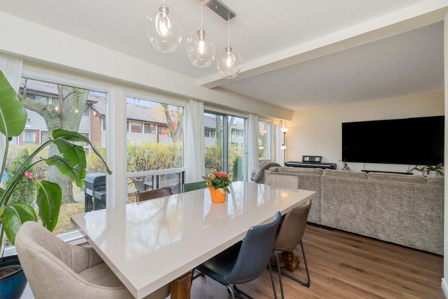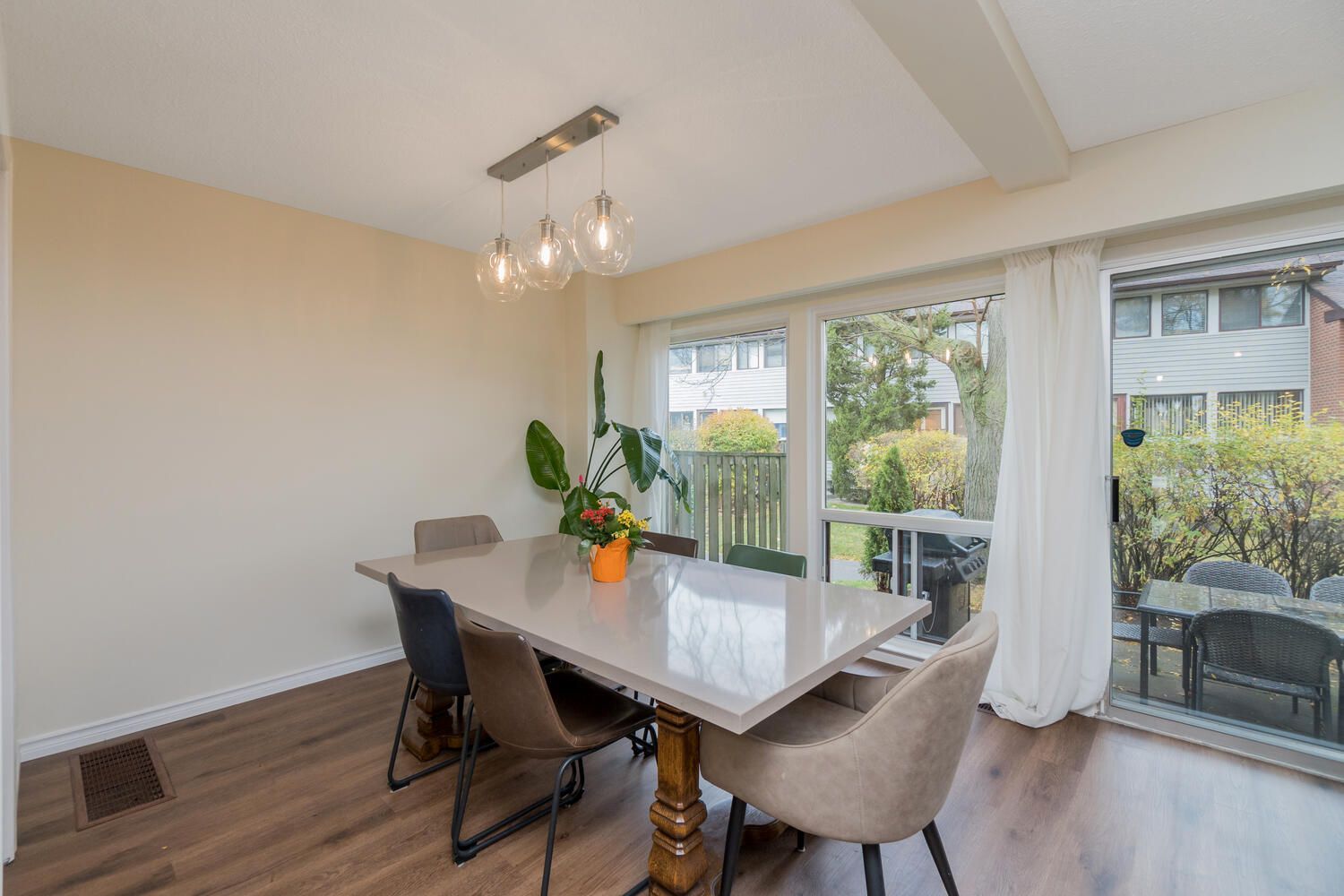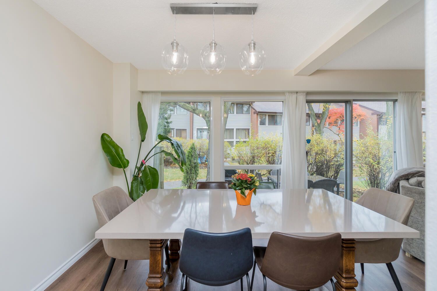 Extraordinary & rarely available 3 bdrm, 2 bath, upgraded end-unit townhome with finished basement and single-car garage. Main & Second floor provides 1,402 above grade sqft of living space. Finished basement with rec room offers additional 645 sqft of premium living space. Natural light illuminates main floor through stunning panoramic floor-to-ceiling/wall-to-wall windows with a walkout to backyard & patio. Family-sized kitchen overlooks eat-in breakfast area & front yard. generously sized living room provides perfect setting for entertaining friends and family, complete with dining room. Retreat to your king-sized primary room featuring double closet, single closet, upgraded 2pc ensuite. Two additional queen-sized bdrms and upgraded 4-pc bath. This home is ideal for a growing family or those looking to downsize. Basement includes finished recreation room, utility room with ample organized storage. Enjoy the benefit of low maintenance fees that cover water and premium cable services.Located In A High Demand Family/Child-Friendly Meadowvale Community with 2 playgrounds, where Parks and walking trails are abundant. Schools and transit hubs to anywhere in the Greater Toronto Area are all within walking distance.