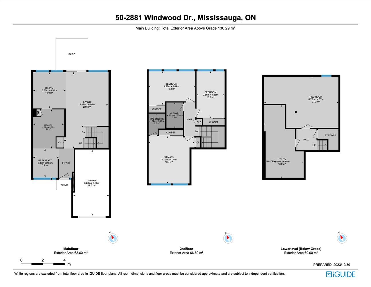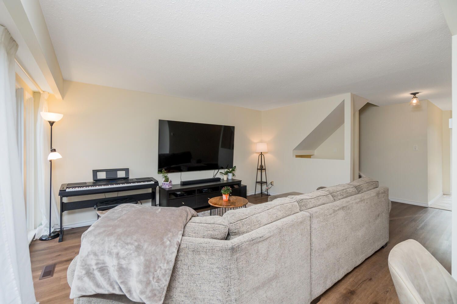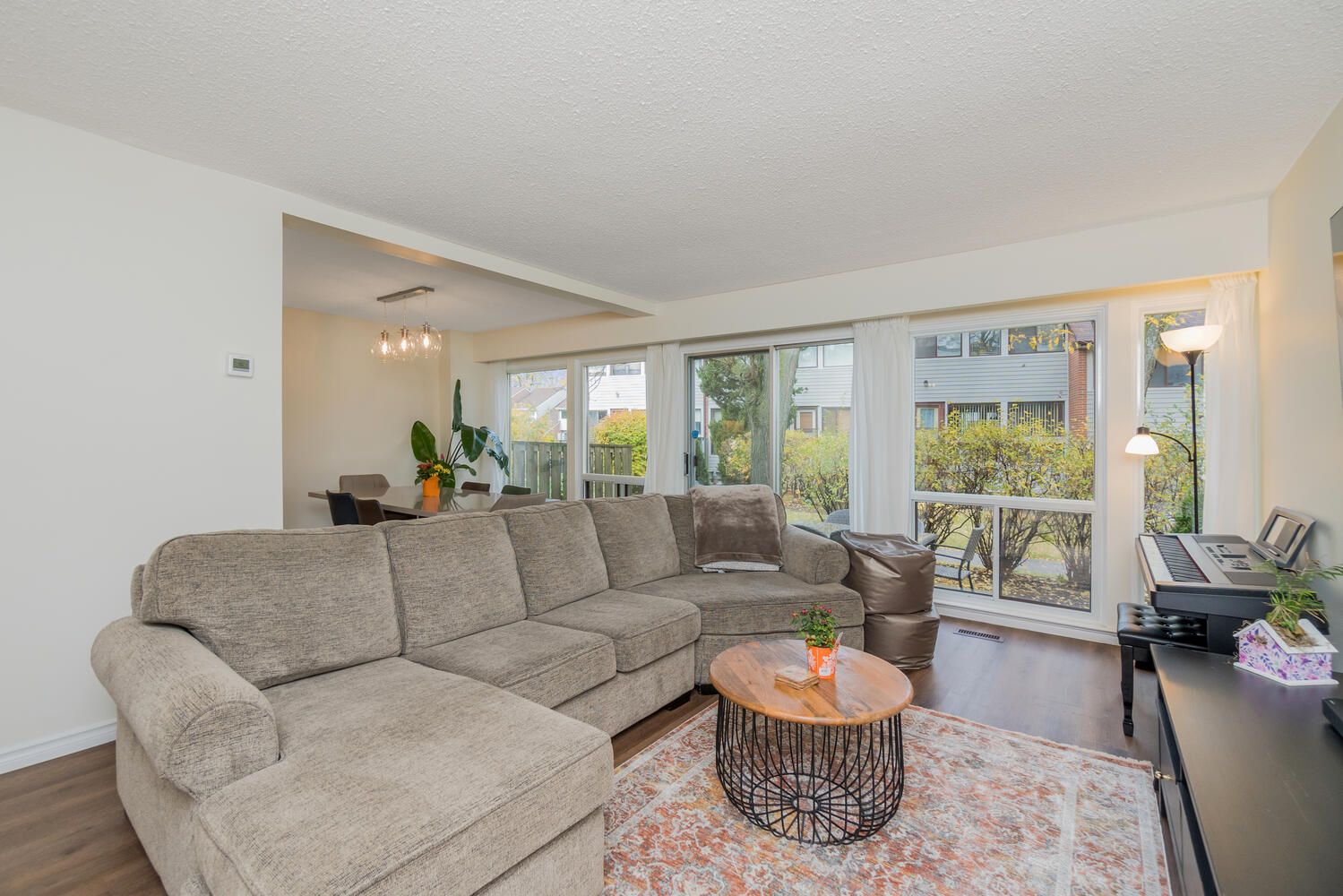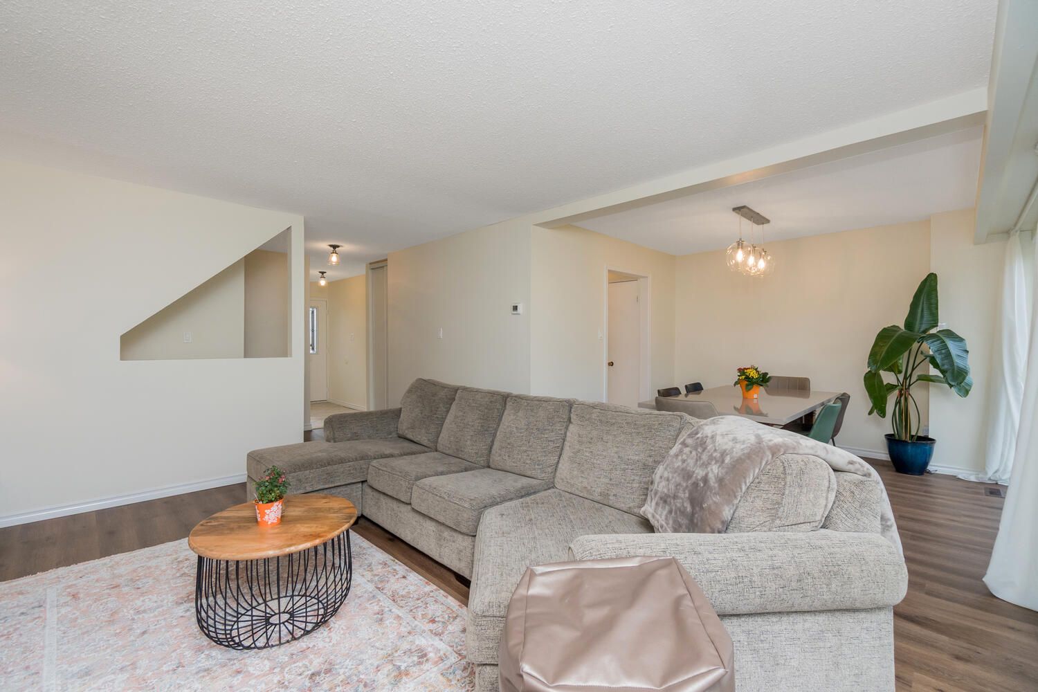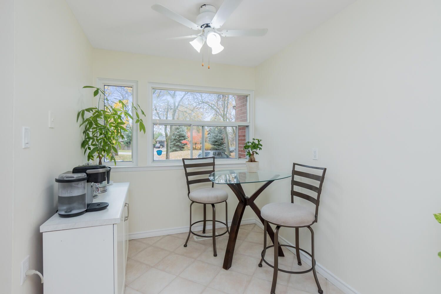 Extraordinary & rarely available 3 bdrm, 2 bath, upgraded end-unit townhome with finished basement and single-car garage. Main & Second floor provides 1,402 above grade sqft of living space. Finished basement with rec room offers additional 645 sqft of premium living space. Natural light illuminates main floor through stunning panoramic floor-to-ceiling/wall-to-wall windows with a walkout to backyard & patio. Family-sized kitchen overlooks eat-in breakfast area & front yard. generously sized living room provides perfect setting for entertaining friends and family, complete with dining room. Retreat to your king-sized primary room featuring double closet, single closet, upgraded 2pc ensuite. Two additional queen-sized bdrms and upgraded 4-pc bath. This home is ideal for a growing family or those looking to downsize. Basement includes finished recreation room, utility room with ample organized storage. Enjoy the benefit of low maintenance fees that cover water and premium cable services.Located In A High Demand Family/Child-Friendly Meadowvale Community with 2 playgrounds, where Parks and walking trails are abundant. Schools and transit hubs to anywhere in the Greater Toronto Area are all within walking distance.