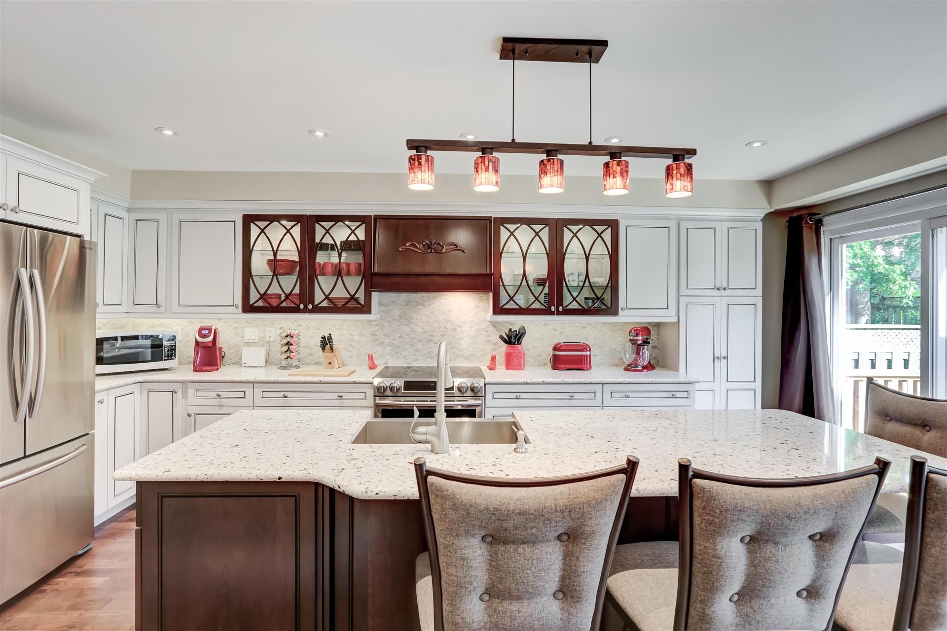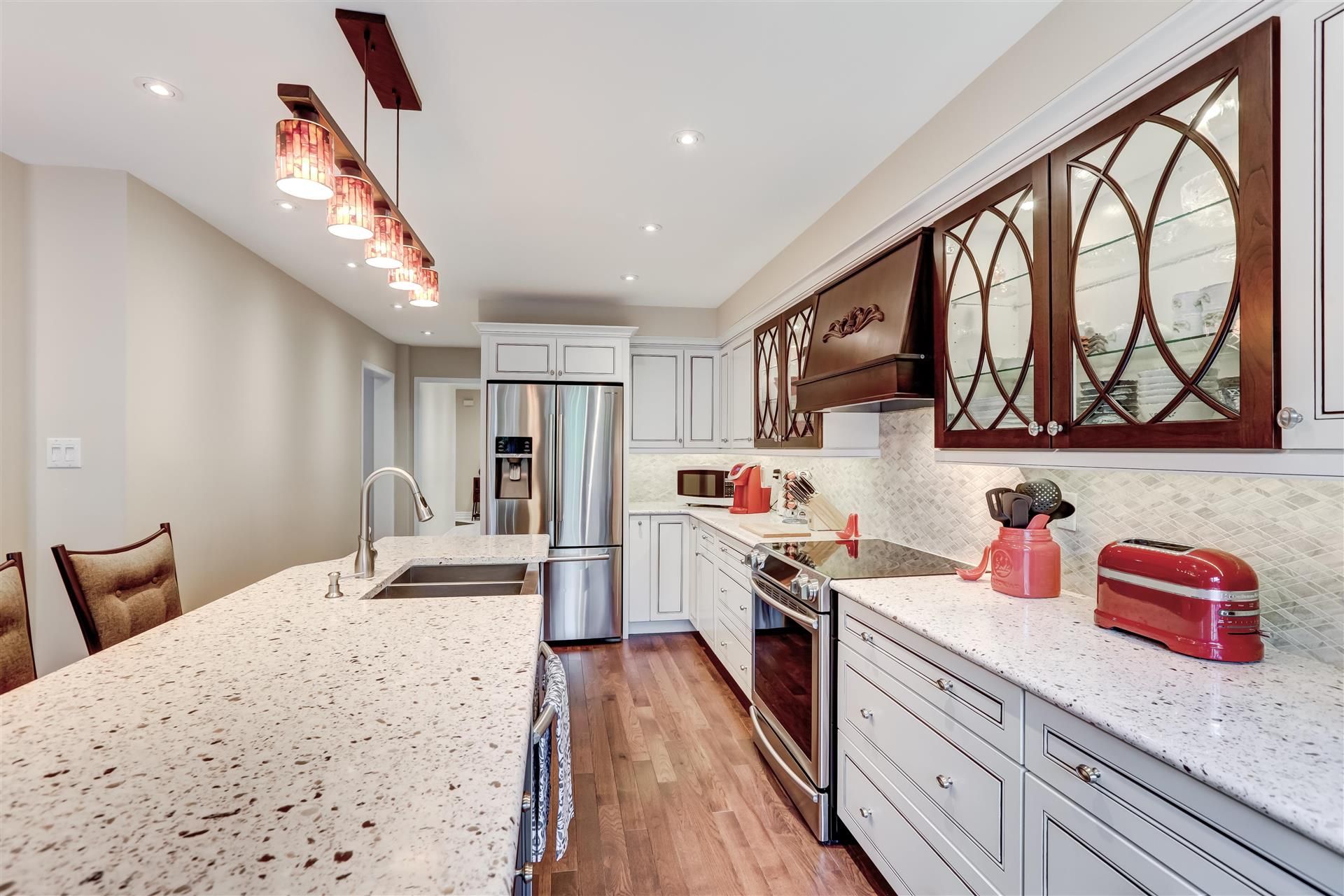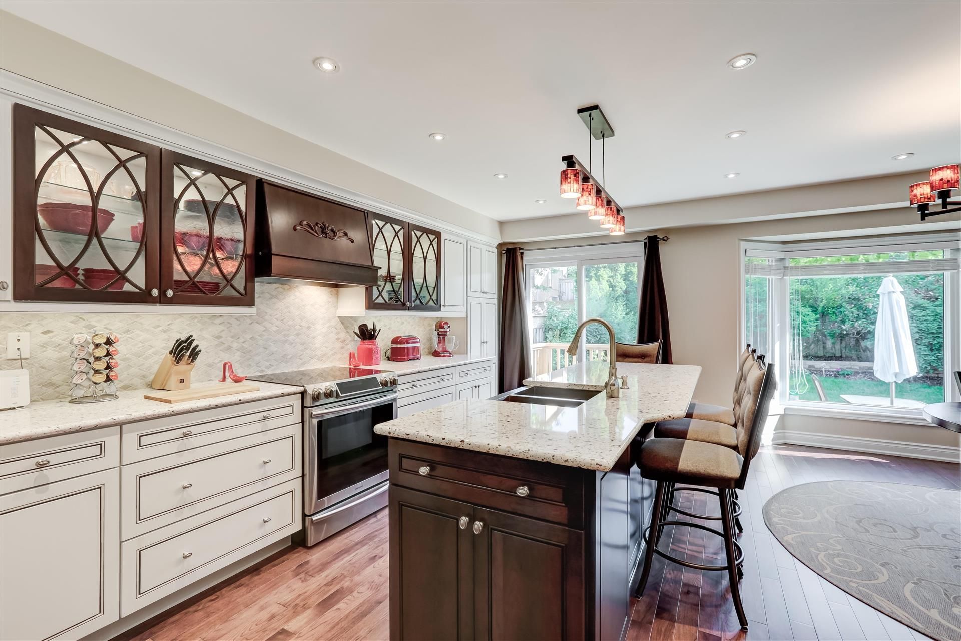 This Lovingly Cared for Home is Nestled in a Quiet, Family-Friendly Neighbourhood In Desirable Erin Mills. Home to Highly Rated John Fraser S.S. & Top-Ranked Elementary & Middle Schools. This Tastefully Updated Home has Quick Access to Parks, Schools, Transit, Shopping & Credit Valley Hospital, with Easy Access to Major Highways. The Formal Living Room & Dining Room Features Canadian Made Walnut Hardwood Floors, French Doors & Pot Lights. The Welcoming Family Room with Napoleon Electric FP, Built-in Bar/Entertainment Area, Wine Fridge & Bay Window, Flows Nicely into the Kraftmade Solid Wood Kitchen with Quartz Countertops & SS Apron Sink. Featuring A Handy Walk-in Pantry, a Chef Ready Island & Included Hightop Chairs, with W/O to Deck & Fully Fenced Landscaped Yard. Boasting a Large Primary Retreat with W/I Closet & 4-Pc Updated Ensuite (2024). The Remodelled (2024) Second Floor Laundry Room has been Designed for Convenience, & the Updated Bathrooms (2024) Feature Solid Wood Vanities & Carrera Marble Countertops. The Bright & Airy Great Room Boasts A Vaulted Ceiling, Ceiling Fan, Gas Fireplace, & Walnut Hardwood Floors. Matching Hardwood Build-ins and Bar Area with mini Fridge Refine this Space. An Immaculate 2350 sq ft Family Home Meticulously Maintained by Original Owner, Major Renovations Done in 2016 & 2024, there are no Popcorn Ceilings Here! This Home is Completely Move in Ready, with Early Move-in Date(s) Available!BBQ, Kitchen Island High Top Chairs, Wall Mounted Kitchen TV, Deck Box, Acorn Chair lift (removal or battery replacement), Wall Mount Napoleon Electric FP.