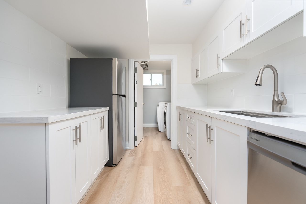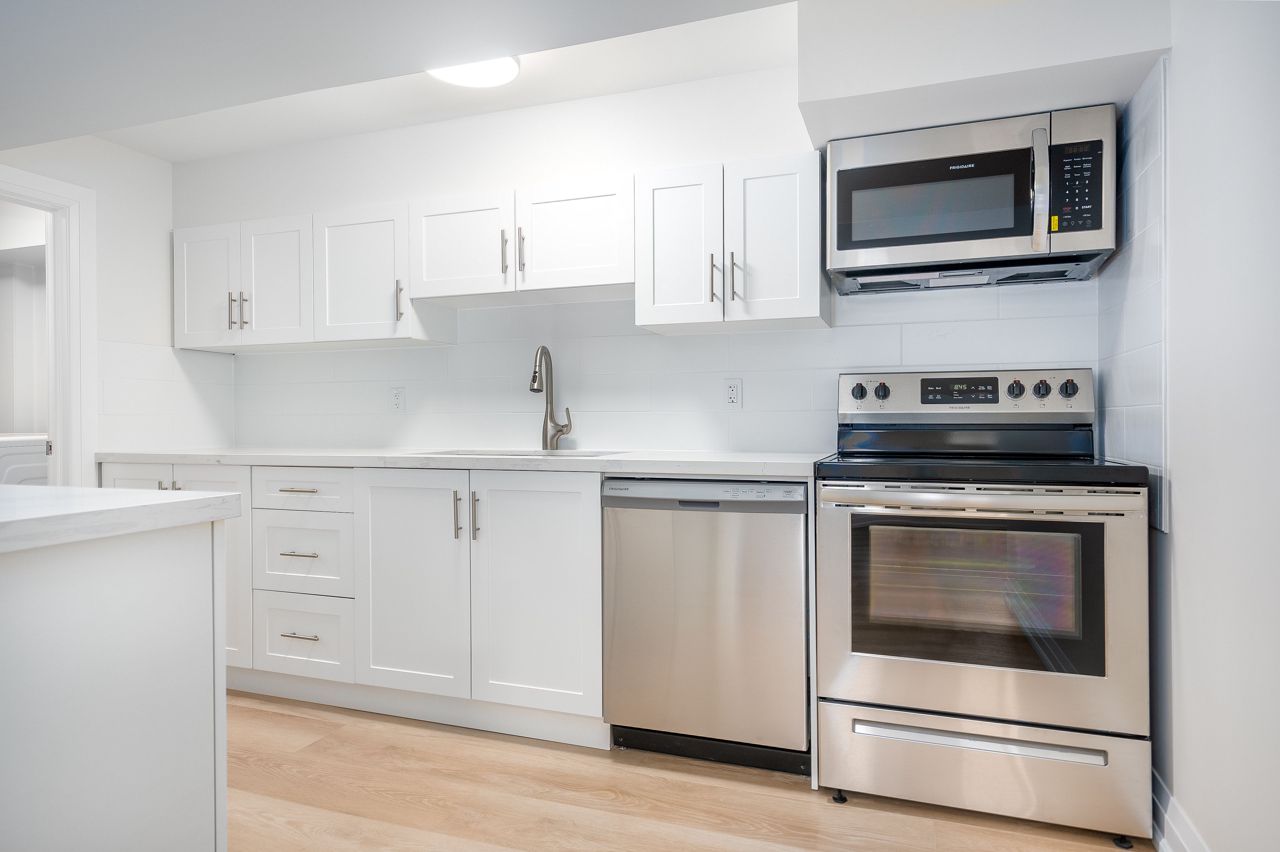 Be the first to live in this gorgeous, freshly renovated home in Applewood Hills. Explore this expansive bottom-floor layout boasting approximately 1000 sq ft of living space in a 1 bedroom + den layout. The suite has been tastefully renovated, and, professionally cleaned, with a private walk-out. Located in a mature family-friendly neighborhood near Tomken & Burnhampthorpe Rd. Close to Dixie GO station, Cedarbrook Park, schools, transit, and shopping. The entire space hosts high-quality finishes including kitchen cabinets, stainless steel appliances, quartz countertops, and a double sink. The ensuite laundry boasts brand-new appliances. New above-ground windows and doors. On-driveway parking is included.
