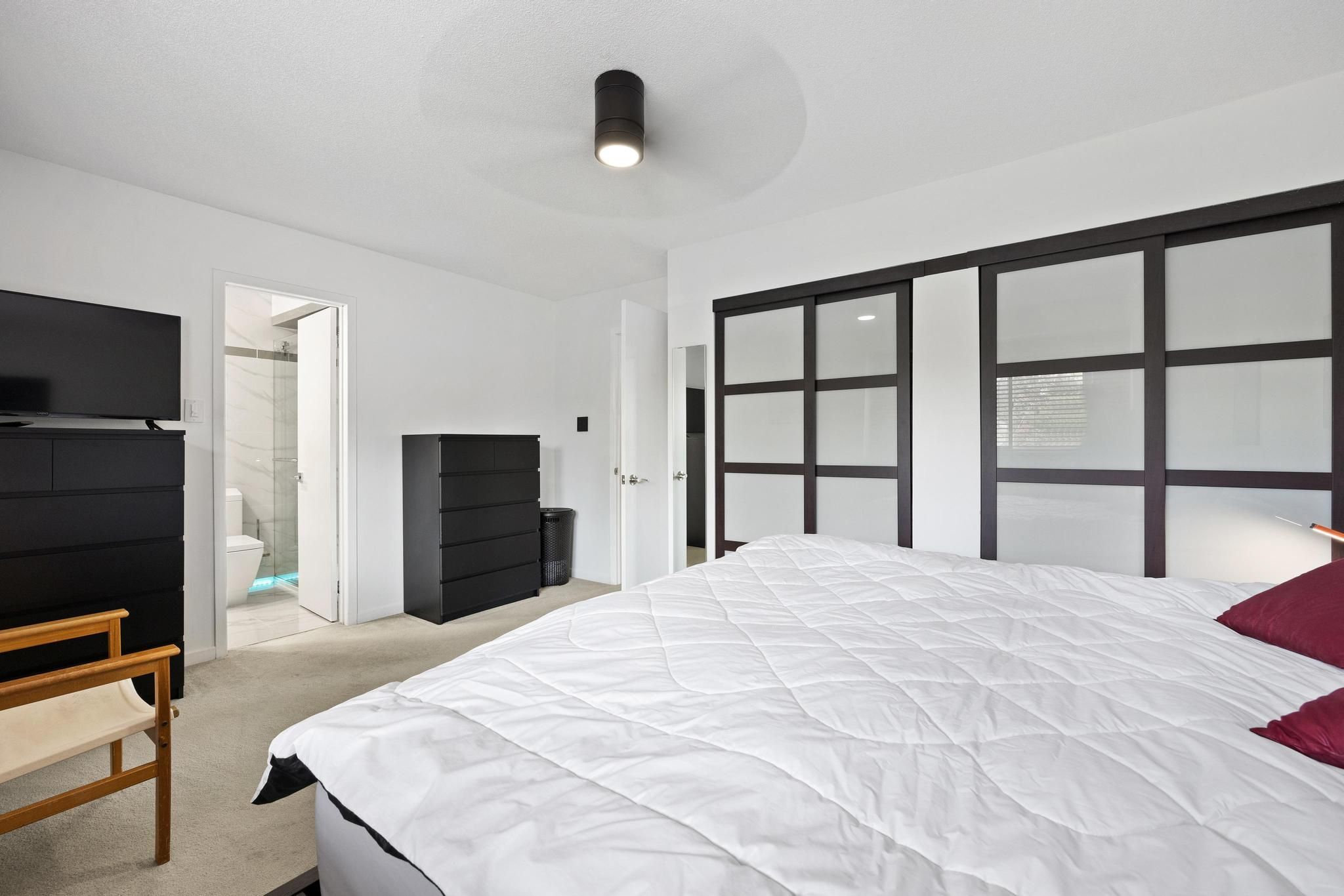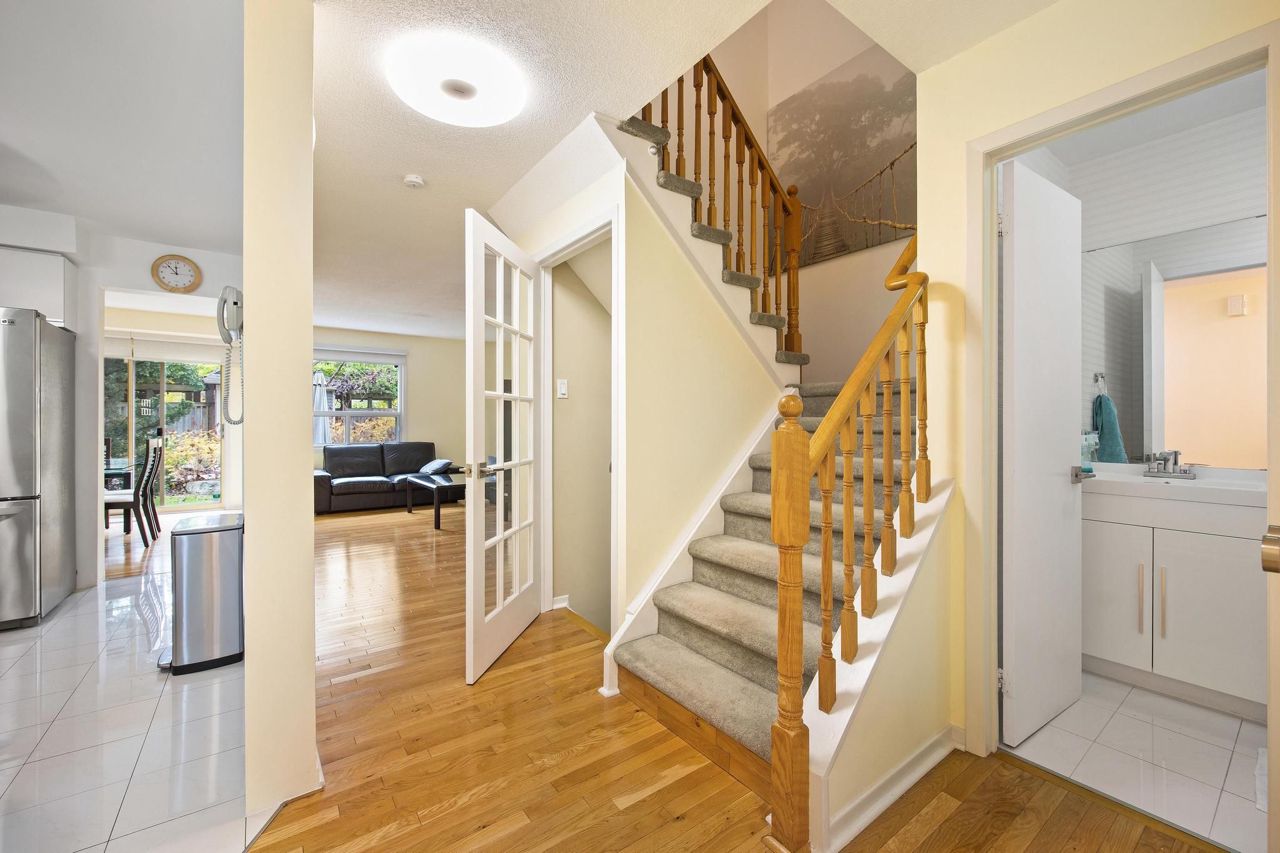 This exceptional townhome, complete with a Two-Car garage, stands as a rare gem within a prime location and features an expansive pool. Inside, you'll be greeted by a spacious 3-bedroom layout, including a primary bedroom with his and hers closets and an exquisitely renovated ensuite equipped with a soothing rain shower. The two additional good sized bedrooms are well-lit and offer ample closet space. The main living area boasts an open-concept design that seamlessly combines the living and dining spaces with a walkout patio and the updated kitchen comes with a cozy breakfast area. Downstairs in the basement, you'll find a generously proportioned open-concept space with abundant storage and a full washroom, complete with a shower, offering versatile possibilities as an in-law suite(4th bedroom)or additional living space.Stainless Steel Fridge, S/S Stove, New Washer & New S/S Dishwasher, S/S Microwave Hood Fan. New Elf's and Switches, Window Coverings. Insulated Attic and Garage. Garage Door Opener. Roof Recently Done In 2022. New Driveway.