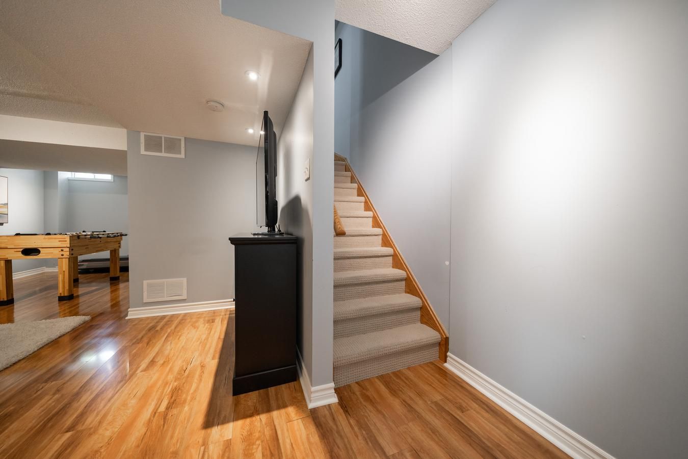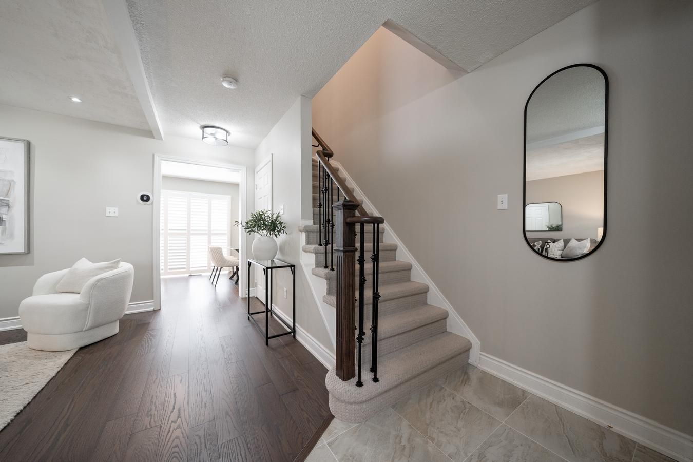 Sun-filled, bright and Stunning upgraded 3 bedroom, 3 bathroom home in most desired south Lisgar Neighbourhood. Move in and enjoy the tasteful upgraded renovations throughout. The enclosed front porch and back patio offer additional living space. The moment you walk-in you are amazed by the calm and serene designer upgrades including gorgeous engineered wood floors, upgraded porcelain tiles and upgraded staircase with rod iron pickets. Huge Living room with wall to wall front windows feature California shutters. Newer kitchen with quartz counters, under-mount sink, tons of counter and counter space were added to the original design. upgraded Backsplash. Upstairs you're treated to 3 large bedrooms featuring brand new upgraded high quality broadloom. New upgraded bathroom. The basement is completely finished with large family room, games area and a 4 peice bathroom. Enjoy walks on the Osprey Marsh and Trails just steps from this beautiful home.California shutters. Brand New Broadloom on Upper Level. All appliances. All light fixtures.