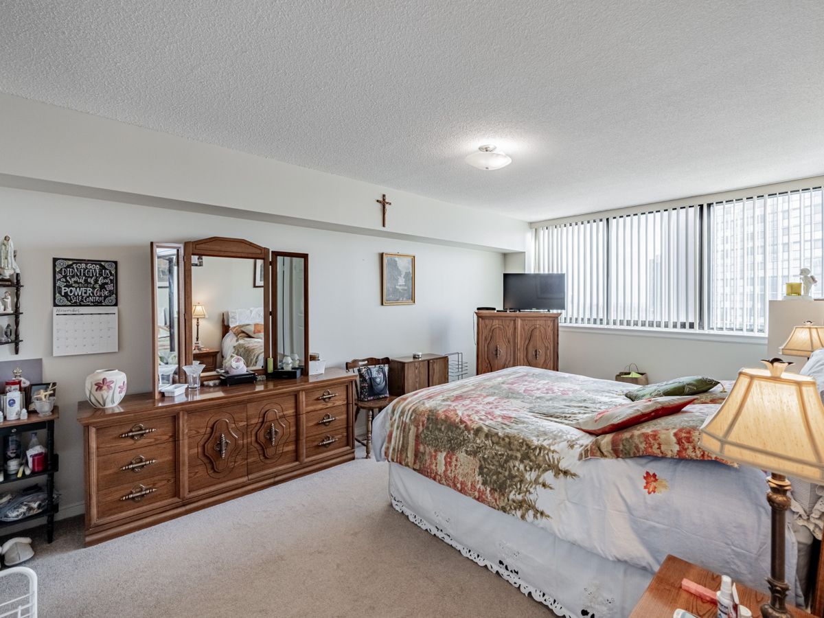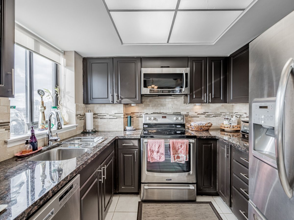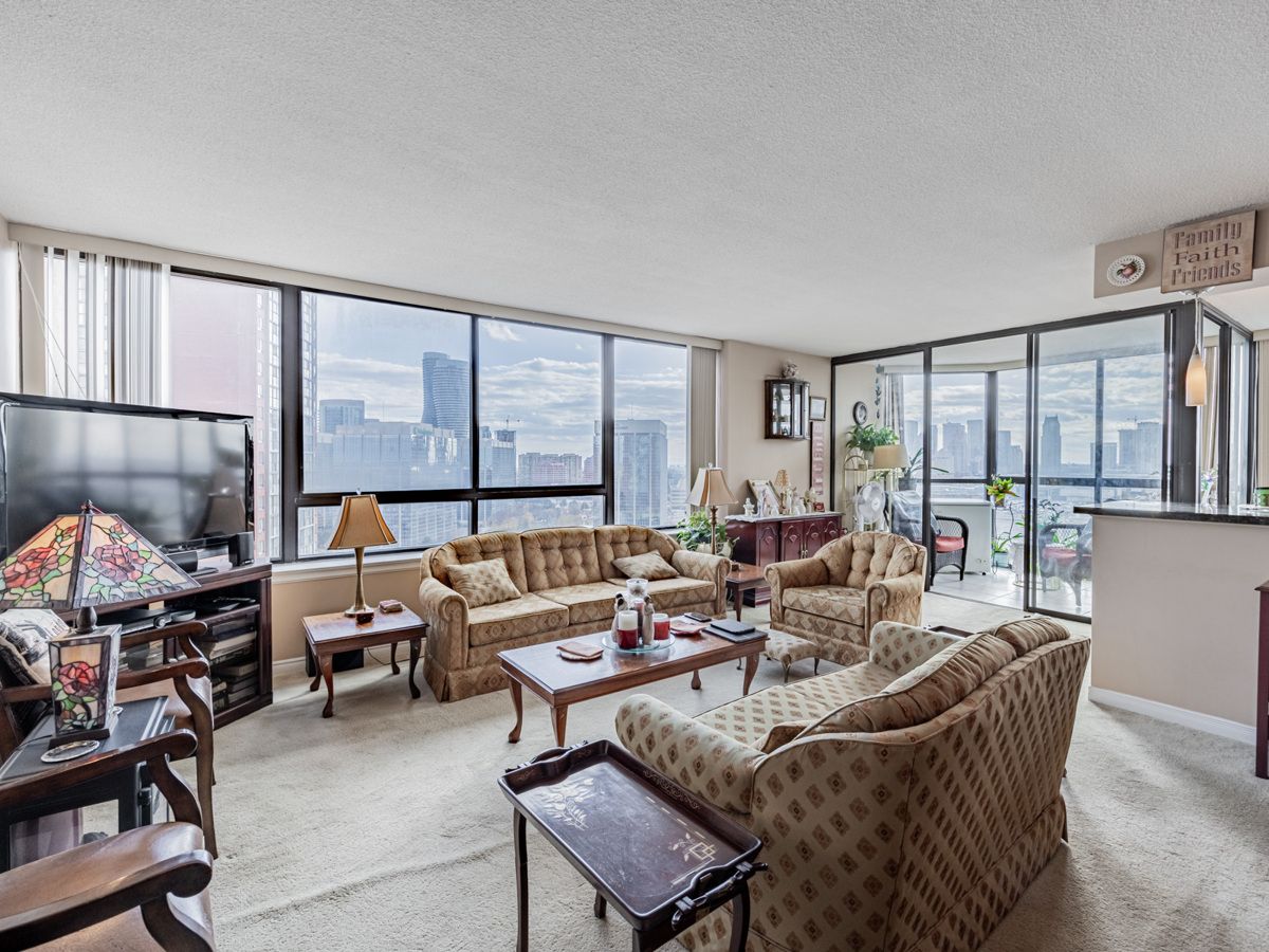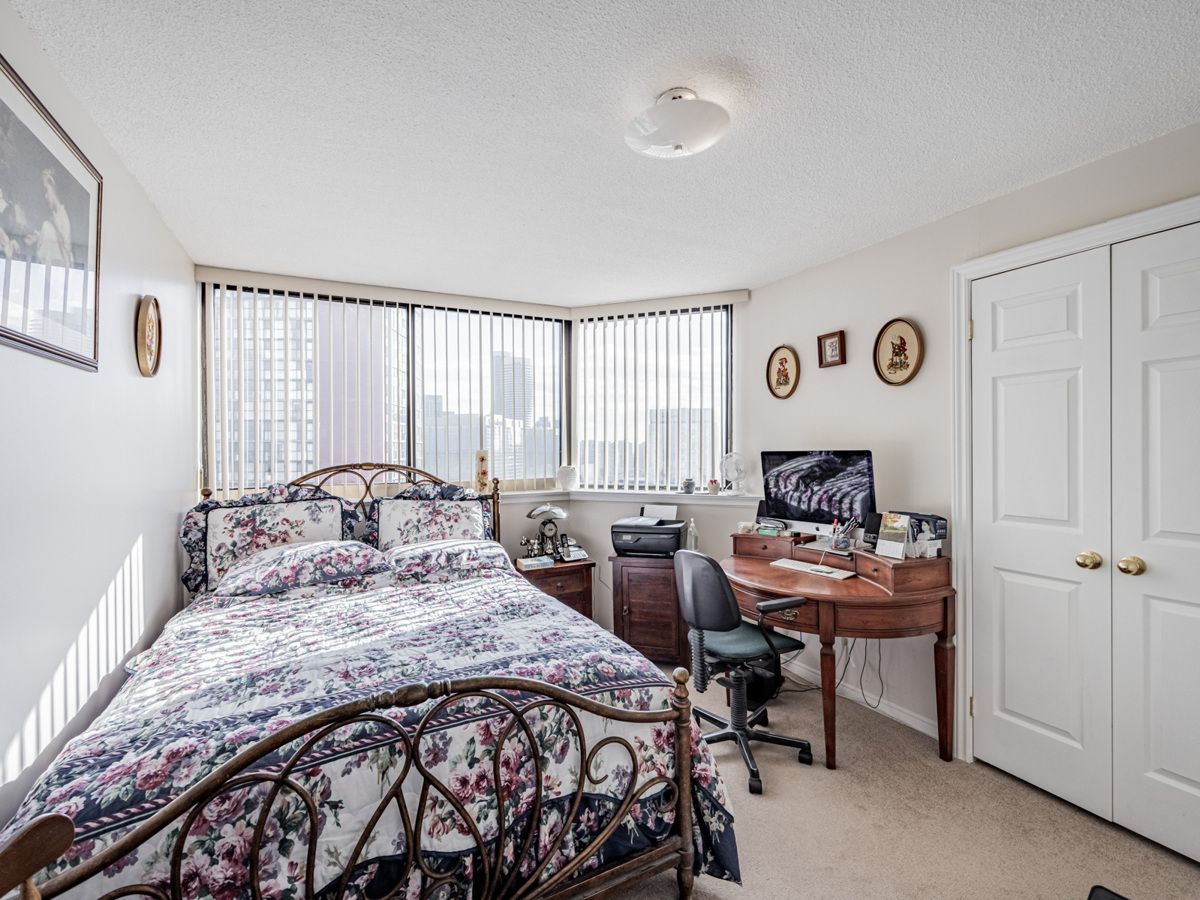Beautifully maintained Corner Unit with breathtaking SW, West and NW views. Over 1300 sq.ft with updated kitchen, granite counters, floor to ceiling windows in solarium! Large primary bedroom features a fully renovated 4 piece ensuite bathroom, walk in closet, bright unobstructed views! The second bedroom features a wall to wall closet and a 2nd storage closet! The living/dining area is open concept and has amazing, bright west views of the city! The amenities have been meticulously maintained including a $500k renovation to the party room! Billiards, indoor swimming, sauna, guest suite etc. Walk to Square One Shopping Centre, Go Bus Station, & future LRT! Amazing location for both commuters and students! The Sherwoodtowne Condominium is a single tower building with beautifully kept fenced grounds, ample visitor parking & fabulous amenities! Maintenance fees are approximately 65 cents/sq.ft and include, parking, water, cable tv, & internet! Better than most condos in the city!Newer S/S appliances, newer washer/dryer, window blinds, same owner 12 years!