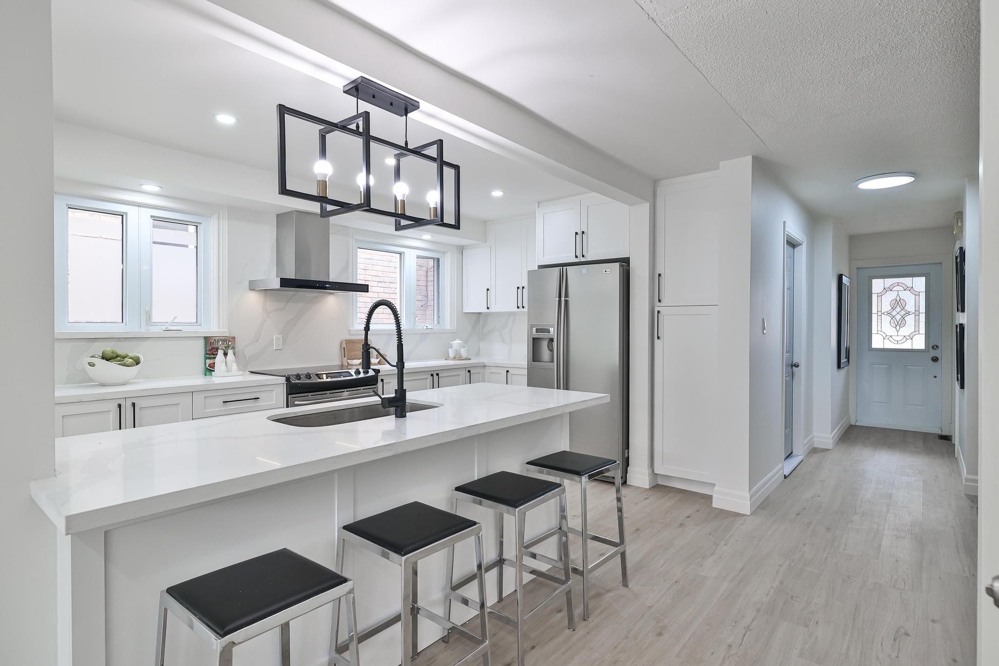 Fully renovated truly open concept 3+2 bedroom detached house in a sought after family friendly area. Brand new kitchen, bathroom, flooring, pot lights and many more. Separate entrance to finished basement with 2 bedrooms, bathroom, kitchen and laundry, which can be used to generate extra income or can be used as an in-law suite. Extra large master bedroom, walkout to backyard, direct access to the garage and two separate laundry facilities. Steps away from best schools, public transit, grocery stores, banks, restaurants, Square One, UofT, GO Transit and easy access to highway.All Existing Fridges, Stoves, B/I Dishwasher, ELFs, window Coverings.