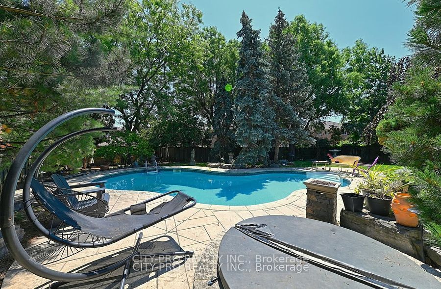 A beautiful Executive 4+1 Bedrooms Home. "The Colonial Model' 4570 Sq.Ft. Living Space, built by Heatwood Homes, 3159 SF A/Grade plus 1411 SF Finished Basement on a Huge 0.272 Acre Lot. A large swimming Pool, Hot Tub, Change? Room, Patterned Concrete Floor, Matured trees, professionally landscaped. Hardwood in 2nd Floor BRs, LIV, DIN, Family, Great Rooms, Stairway, and Landing Area. Three Gas Fireplaces, Double Door Entry, High Foyer, and Pool with all accessories. Finished Bsmt with 1 BR, Wet Bar, Sauna, 3 PC Baith w/Shower, and Large REC Room w/Gas Fireplace, Interlock Driveway and Walkway to home and more.Price includes all existing Kitchen appliances on the main floor, washer & dryer and basement fridge, window coverings, and all pool accessories.