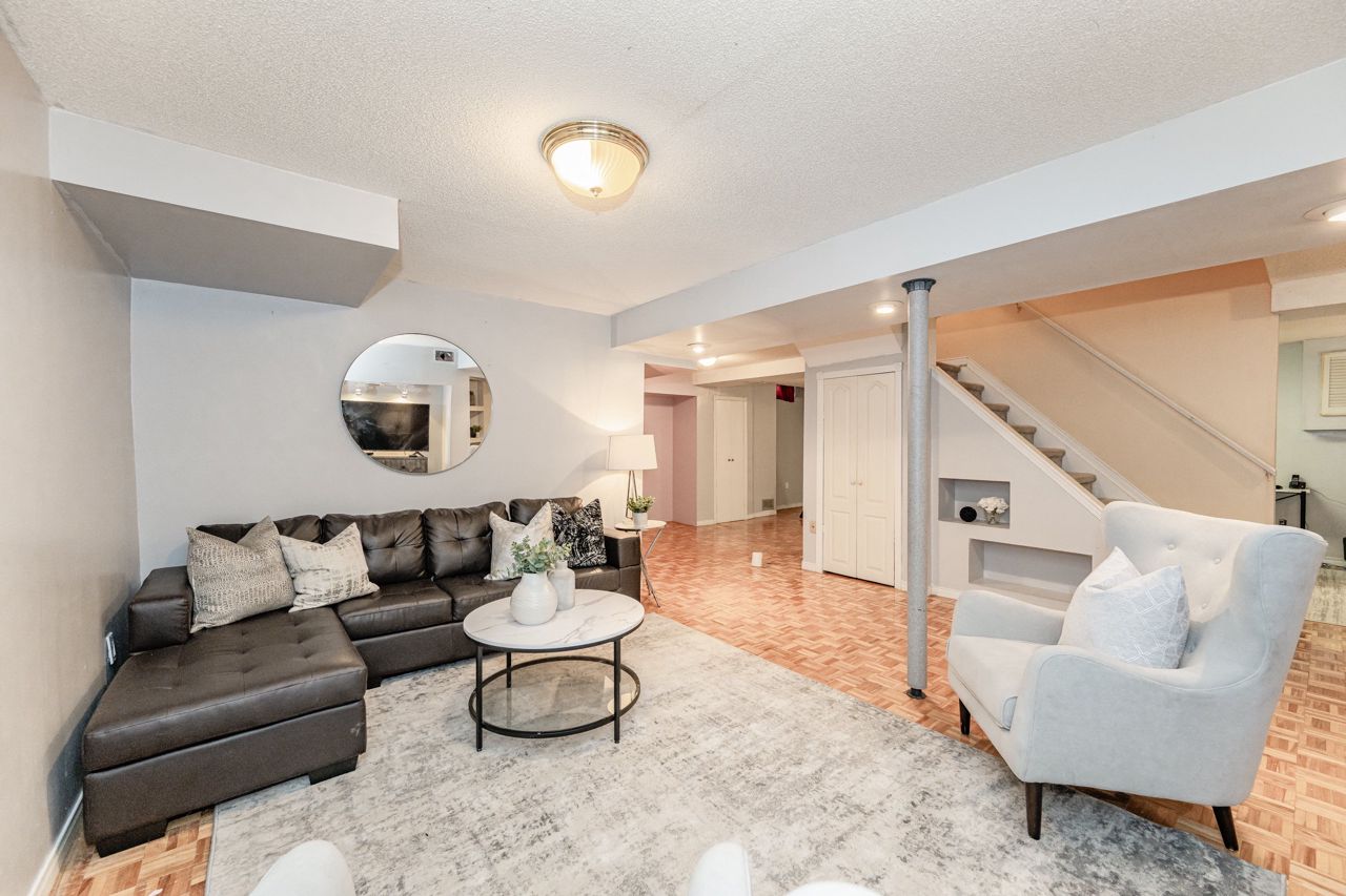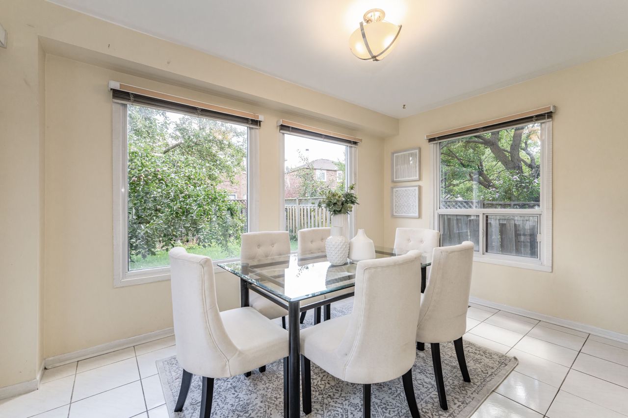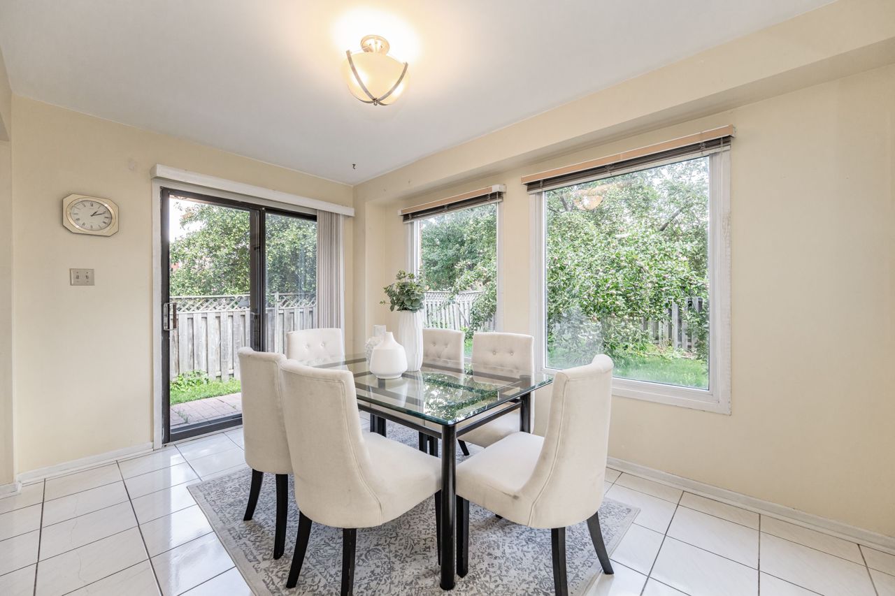 This spacious over 2000 sq ft above-grade home is sitting on a massive unique lot with rare 6 parking spaces located within a private residential community in the very desirable central Mississauga area. This beautifully maintained 4-bedroom, 3-bathroom home has a fantastic layout with a main floor family room, an eat-in kitchen with a walk-out to the patio and a peaceful backyard oasis, perfect for entertaining and relaxing. This house also boasts a formal dining room and living room which can be used for a home office or den. Stroll upstairs and be greeted by 4 sizable bedrooms and two functional full bathrooms and natural cascading light throughout. The superb primary bedroom features a spacious 4-piece bathroom ensuite with a generous walk-in closet. The finished basement offers an open-concept floor plan with a roughed-in bathroom and an additional room, perfect for an office or bedroom. A total of approx. 3000 sq ft living area space!This home is beautifully landscaped surrounded by greenery and mature trees. This property is in the sought-after elementary school and Secondary School Catchments.
