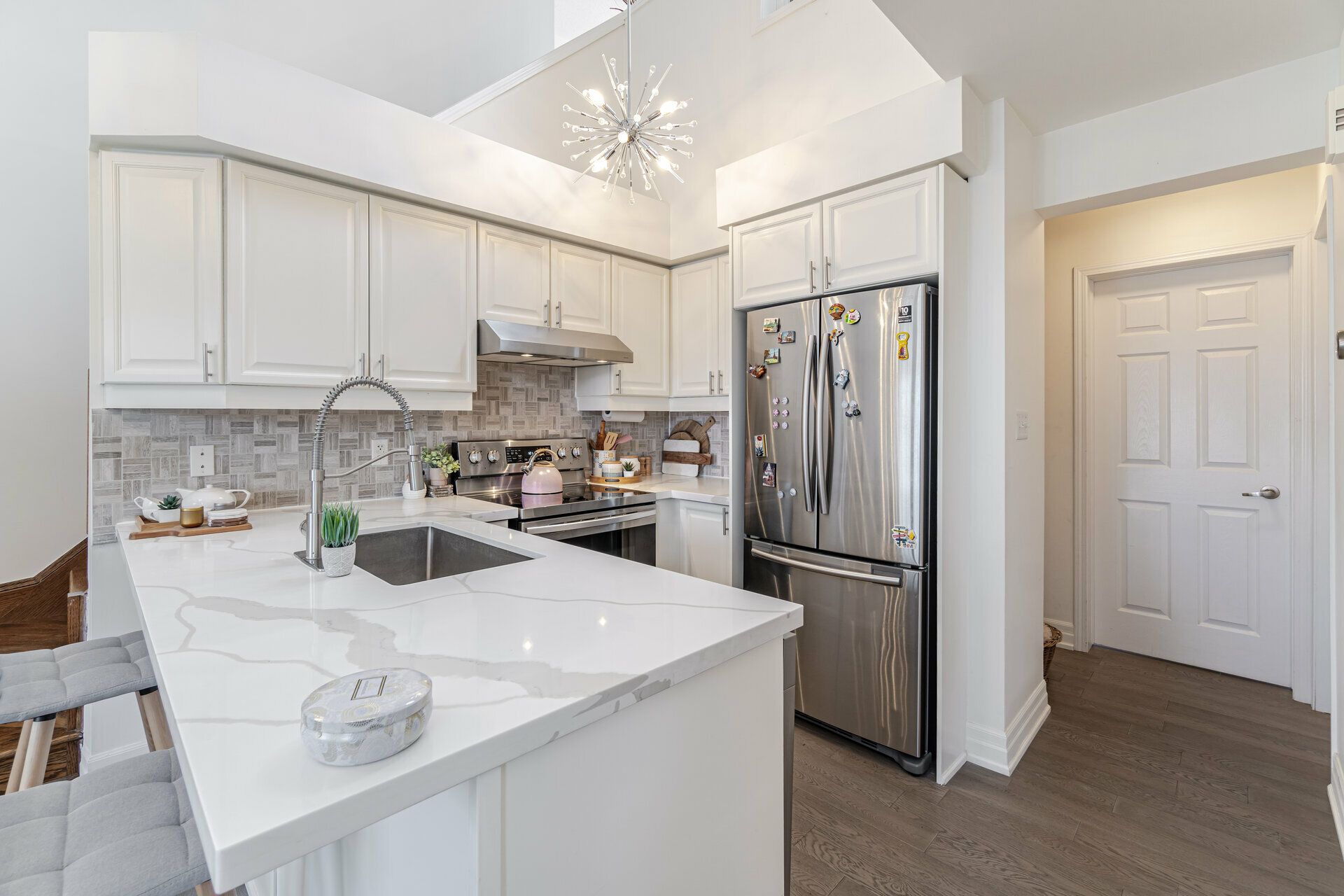 Completely Renovated And Modern Corner Townhome With 2+1 Bedrooms And 2 Full Baths, Located In Mississauga's Sought-After Community Of High Park! Features A Super Spacious Layout With 2 Levels And Plenty Of Natural Light And An Incredible Rooftop Terrace Perfect For Summer Entertaining! Beautiful Cathedral Ceilings And Open Concept Living/Dining/Kitchen With Engineered Hardwood Floors And Quartz Countertop Alongside Upgraded Bathroom Vanities. Large Master Bedroom With W/I Closet And Ensuite Bathroom!Very Convenient, Family Friendly Location With Walking Distance To Schools, Parks, Shopping, Gyms And More. Mins To Square One, Cooksville Go, University Of Toronto (Mississauga Campus), Hwys 403/Qew, 1Bus Ride To Kipling Station!