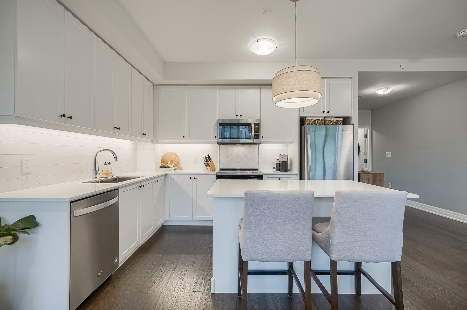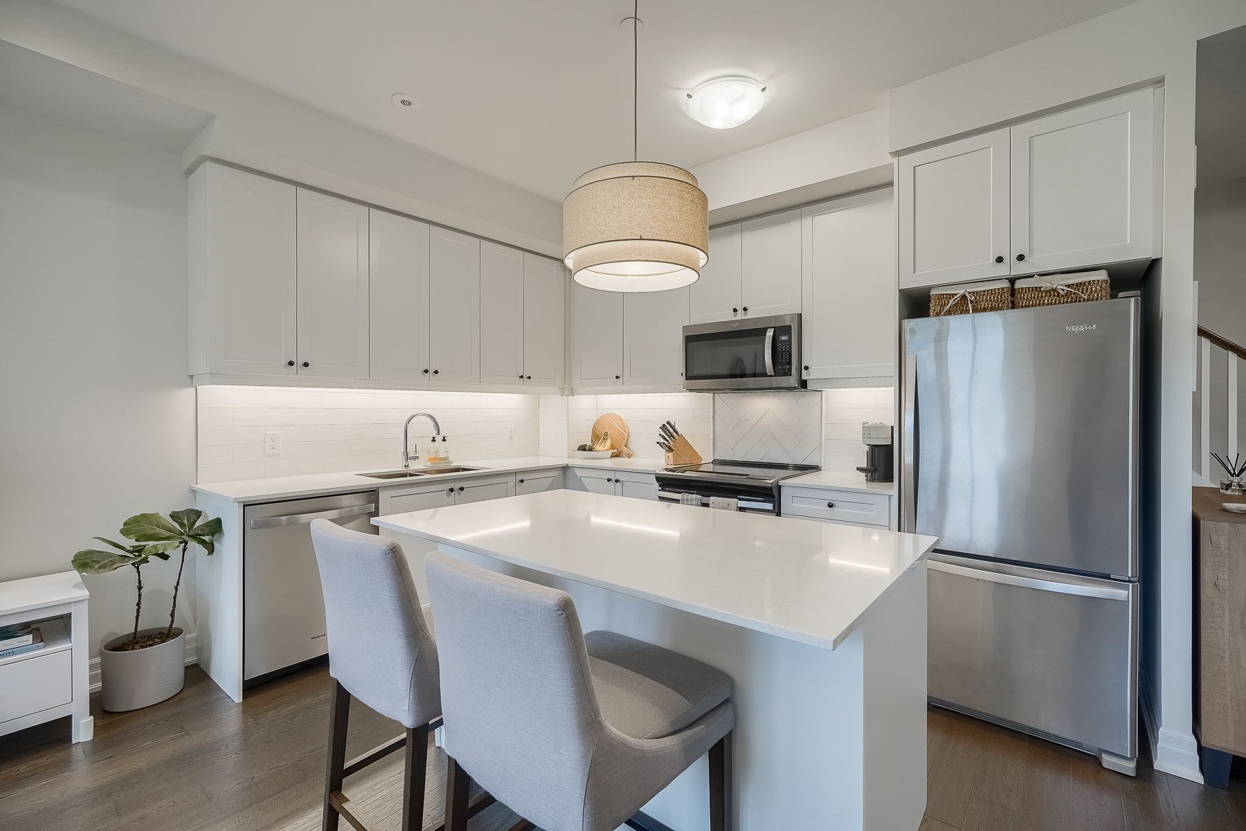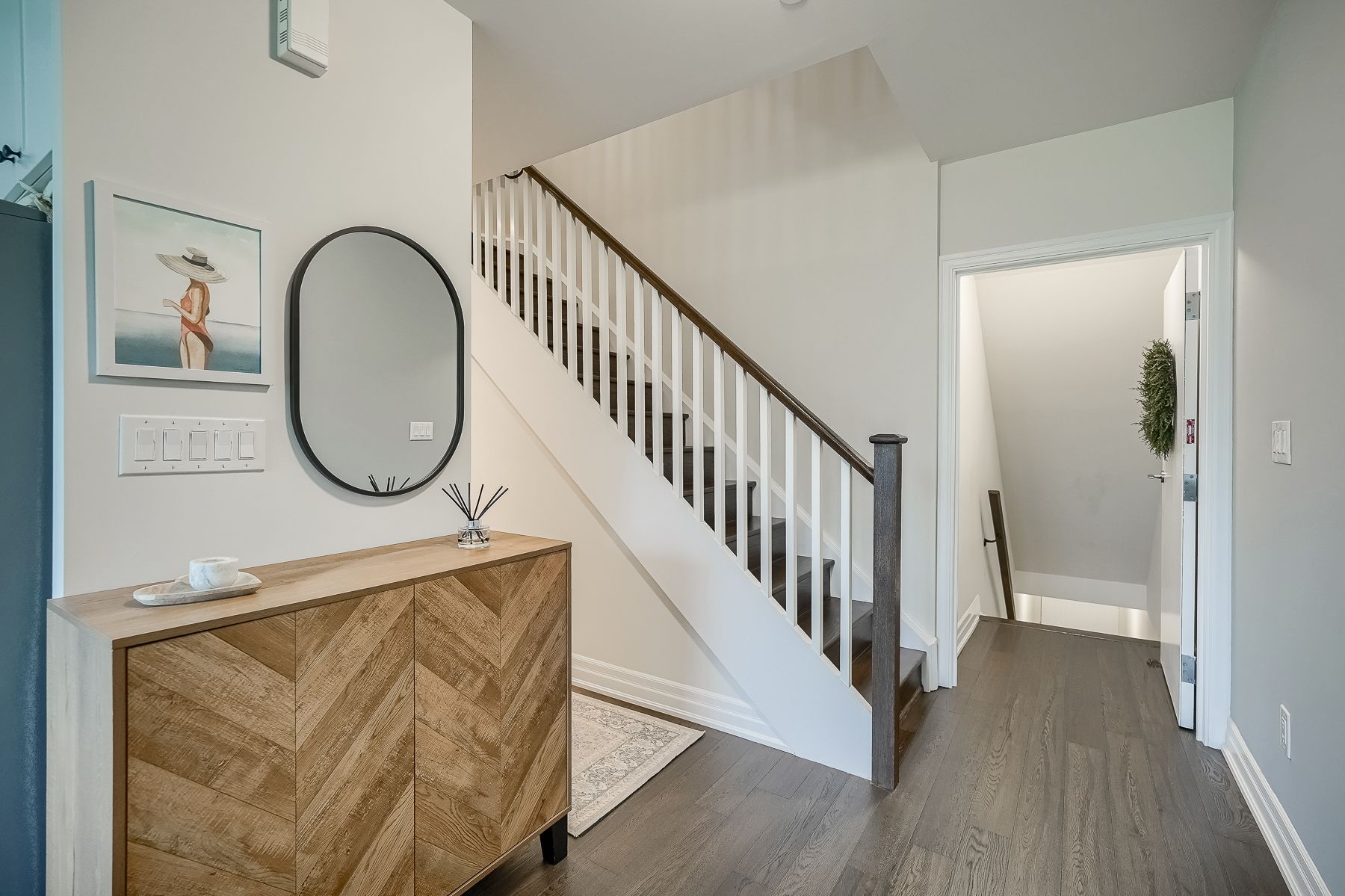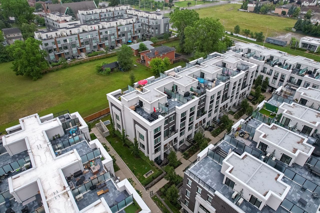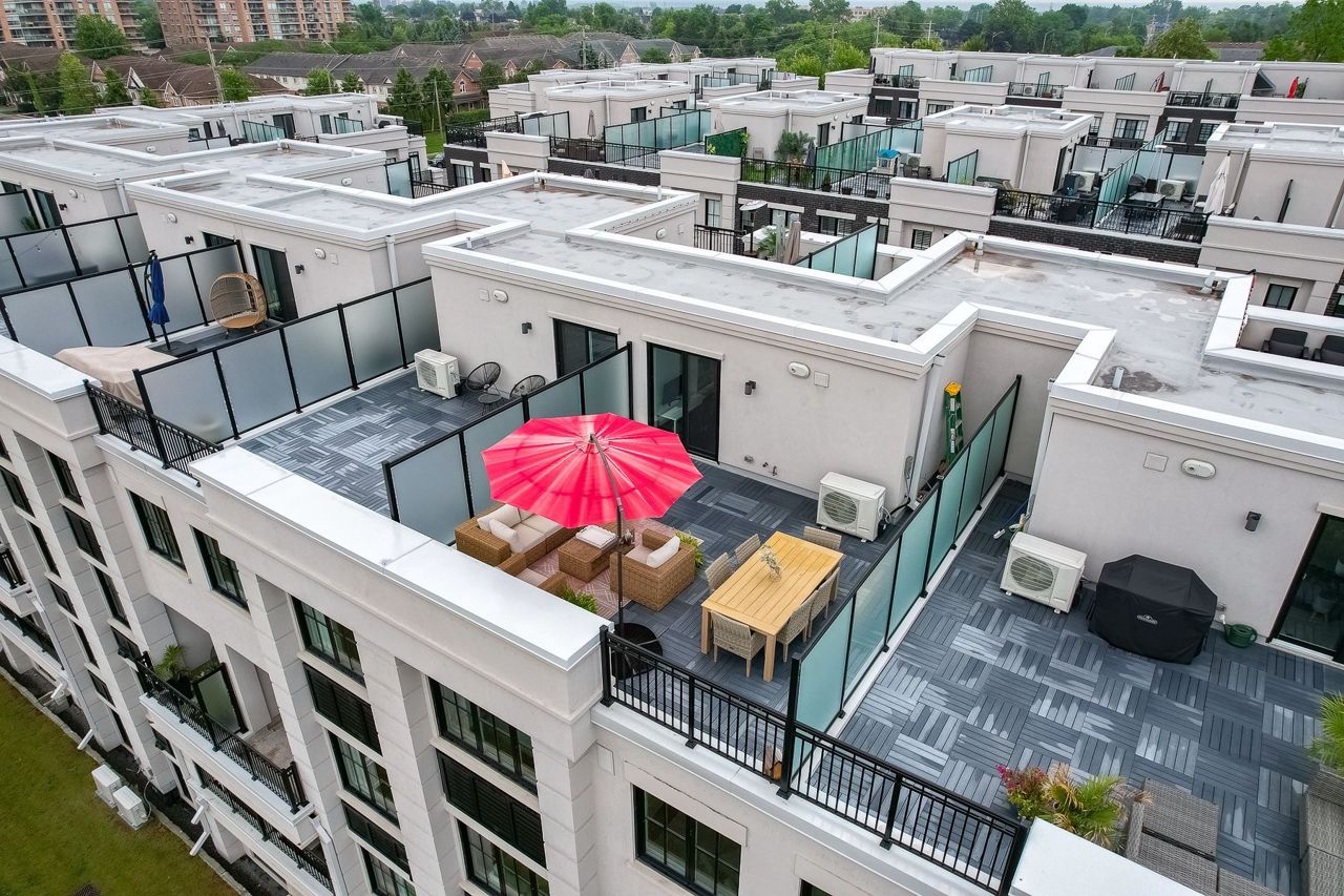 The Reserve... an award winning Mineola East community! This upscale urban townhouse is designed to live in style with natural light infused spaces. The architecture is a blend of classic & contemporary, stone facades & traditional brick exteriors in harmony. A bright & inviting open concept living space is perfect for family & entertaining. With stylish finishes throughout, the kitchen features large island, quartz counters & upgraded stainless steel appliances. Walkout from dining area to spacious balcony plus 2 piece powder room on main level for guests. Enjoy the primary bedroom with a generous sized ensuite bath plus ample space to accommodate a king size bed. The over 400 sq ft private rooftop terrace is the perfect outdoor space, designed for entertaining, urban gardening or just relaxing. Take in the unobstructed North-West sunset views with the convenience of gas hook-up for BBQs & hose bib. Great proximity to lake, waterfront parks & trails, GO Transit, QEW & downtown core!Over $40,000 spent on upgrades, please see attached Feature Sheet for all details. Spacious functional layout, Builder floor plan attached. Premier location within community offering easy living. Ample underground visitor parking.