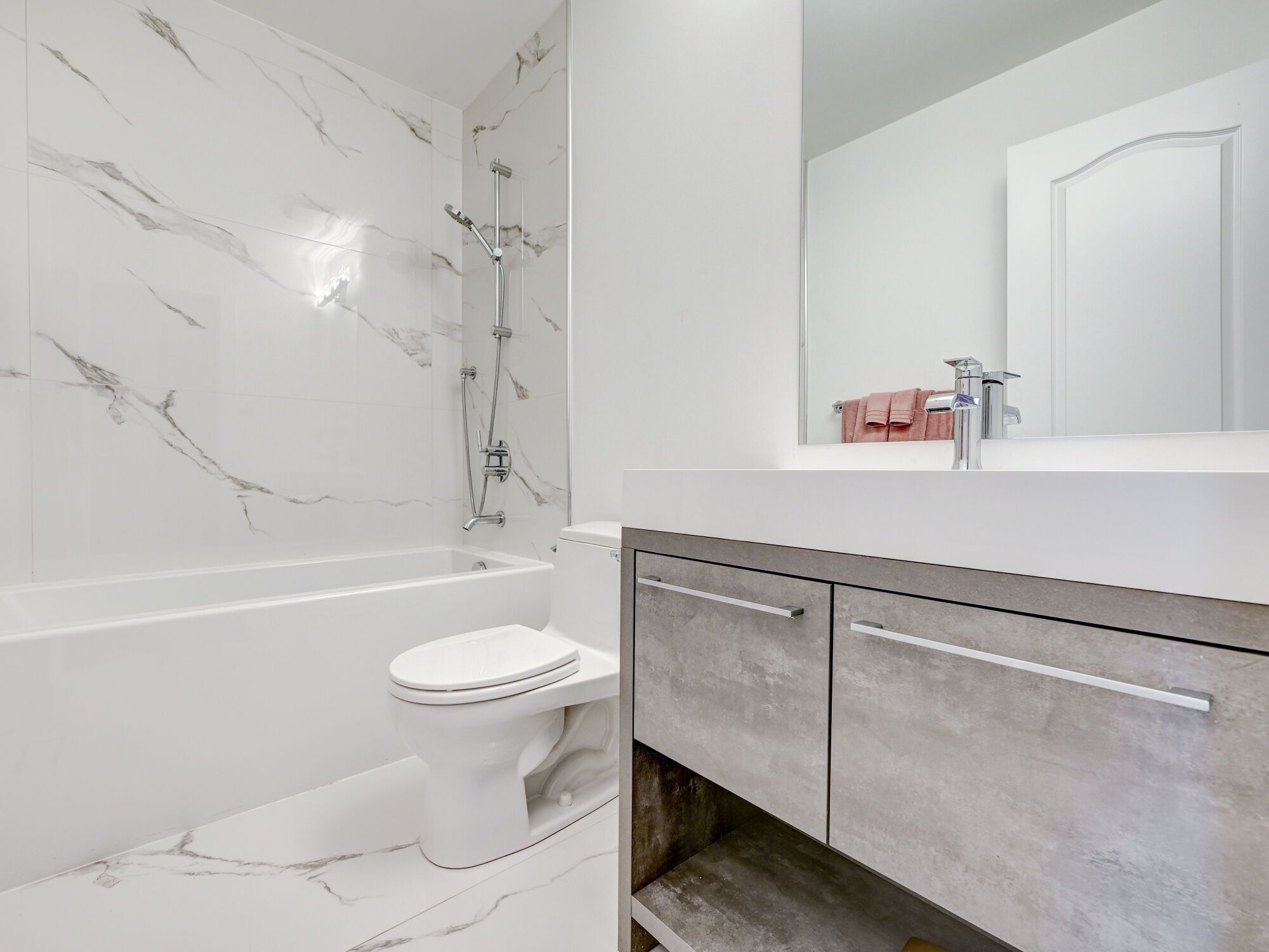Breathtaking Professionally Updated 3 Bedroom Town Loaded With Upgrades & Features. Entire Home Completely Painted With Benjamin Moore High Quality Paint(23), New Baseboards Throughout(23), Upstairs Shared Bath Completely Reno`d In 2021, Gym Area(21), Full Kitchen Remodel, Toto Toilets, Hardwood Throughout, Pot Lights, Deck Replaced In 2022, Whole Home Water Filtration System(optional). Conveniently Located Near To Several Major Highways, Amenities, Shopping, Parks, Transit & Schools.