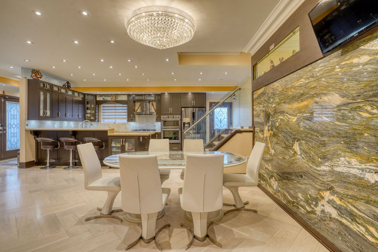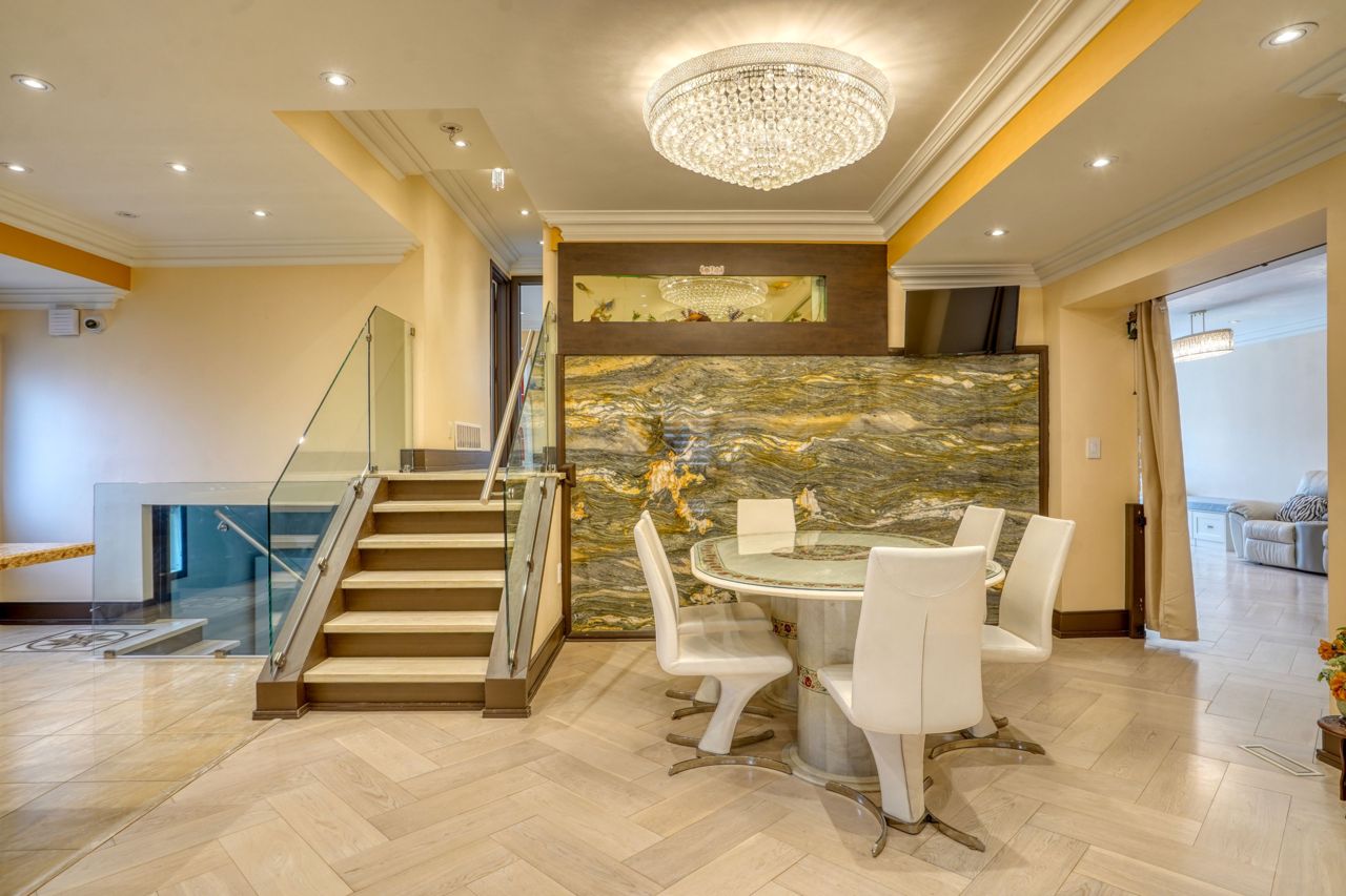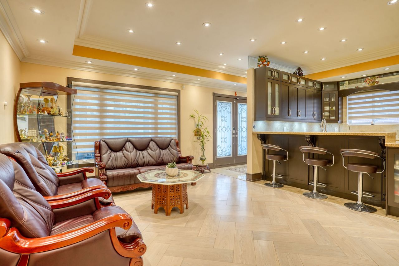 Style Meets Function... One of a Kind luxurious back split bungalow fulfills Every Family's need. Unique and Modern layout, 4+1 Bedroom, 3 1/2 Bath Home offers Over 3500 sq/Ft. Beyond a functional entryway the home flows into a luminous, open- concept living, dining. Main floor features Immaculate Kitchen With B/F Bar and High-end SS Appliances, Dining area with Custom Aquarium and Accent Wall walks out to Family room with Gas furnace, Wet bar, Powder room, Pantry, Walk-out To Sun Drenched Fully Fenced Backyard with Gazebo and Gas BBQ Concrete Patio. Mid-level with 2 huge bedrooms one with W/I closet and other with custom closets and an ensuite. The extended first floor comes with two B/R and ensuite incl. high-end washer dryer. Basement with a bedroom with walk in closet and ensuite perfect for guests and an open den for office. Contemporary amenities include custom made Double Garage and back yard doors, and EV charging station. Custom cabinetry in Crawl space of Basement.Side entrance, Sprinkler System, metal roofing, newer windows, H/w floor in garage, Exterior got new look all in 2020. Motorized Blinds, Water softener system, own furnace, tankless water heater, CAC. So many hidden gems to be discovered.