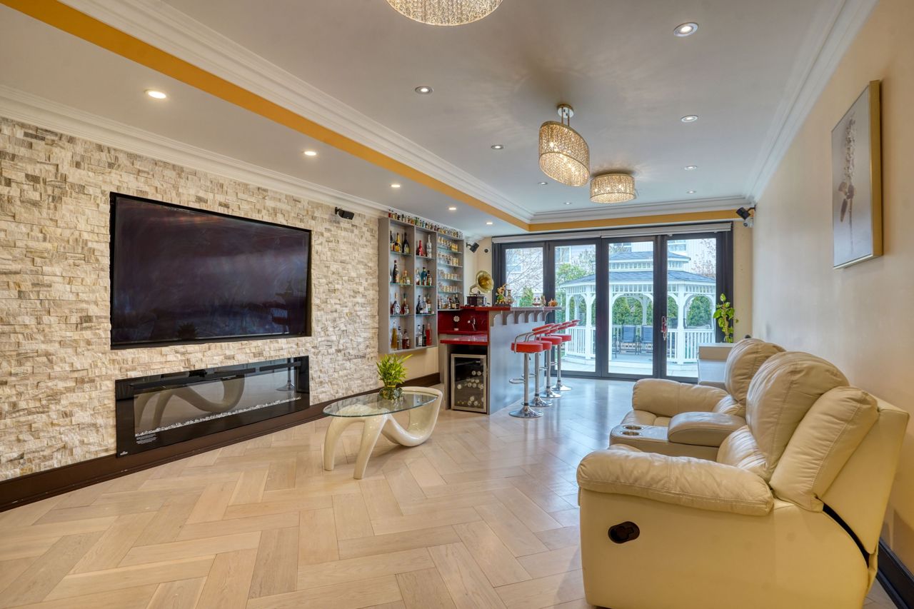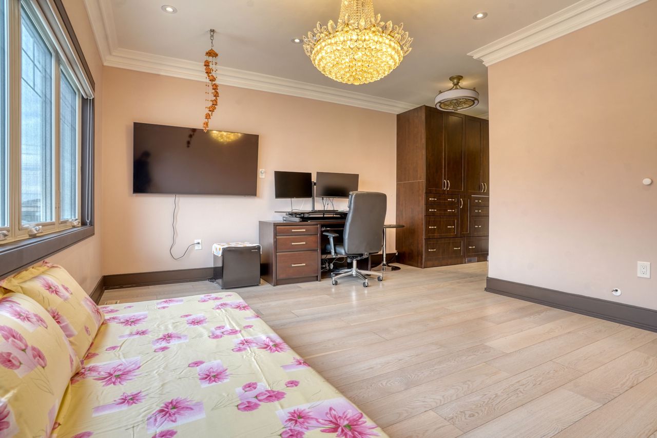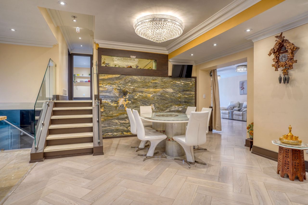 Style Meets Function... One of a Kind luxurious back split bungalow fulfills Every Family's need. Unique and Modern layout, 4+1 Bedroom, 3 1/2 Bath Home offers Over 3500 sq/Ft. Beyond a functional entryway the home flows into a luminous, open- concept living, dining. Main floor features Immaculate Kitchen With B/F Bar and High-end SS Appliances, Dining area with Custom Aquarium and Accent Wall walks out to Family room with Gas furnace, Wet bar, Powder room, Pantry, Walk-out To Sun Drenched Fully Fenced Backyard with Gazebo and Gas BBQ Concrete Patio. Mid-level with 2 huge bedrooms one with W/I closet and other with custom closets and an ensuite. The extended first floor comes with two B/R and ensuite incl. high-end washer dryer. Basement with a bedroom with walk in closet and ensuite perfect for guests and an open den for office. Contemporary amenities include custom made Double Garage and back yard doors, and EV charging station. Custom cabinetry in Crawl space of Basement.Side entrance, Sprinkler System, metal roofing, newer windows, H/w floor in garage, Exterior got new look all in 2020. Motorized Blinds, Water softener system, own furnace, tankless water heater, CAC. So many hidden gems to be discovered.