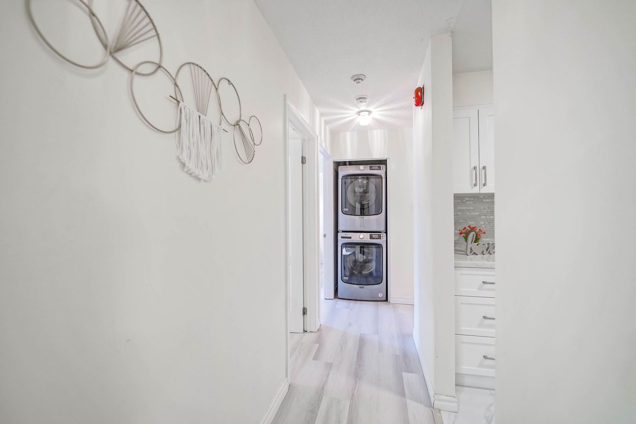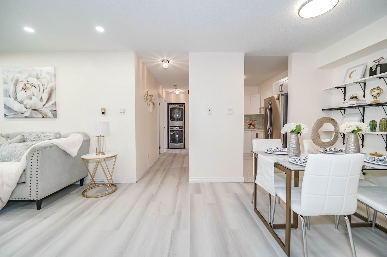 Gorgeous 2 Bdm, 2 Bath Condo Townhouse, Located In The Heart Of Mississauga. Beautifully Renovated with newer Stainless Steel appliances. Ground Floor With Sliding Door Walkout To Sunlit Patio, Where Bbqs Are Allowed. Say Goodbye To Stairs & Elevators! Maintenance Fee Includes Internet And Tv Cable. Close To Shops, Entertainment, Schools, Transit, Hwy & All Amenities.SS Range, Range Hood, Microwave, Fridge, washer, Dryer.