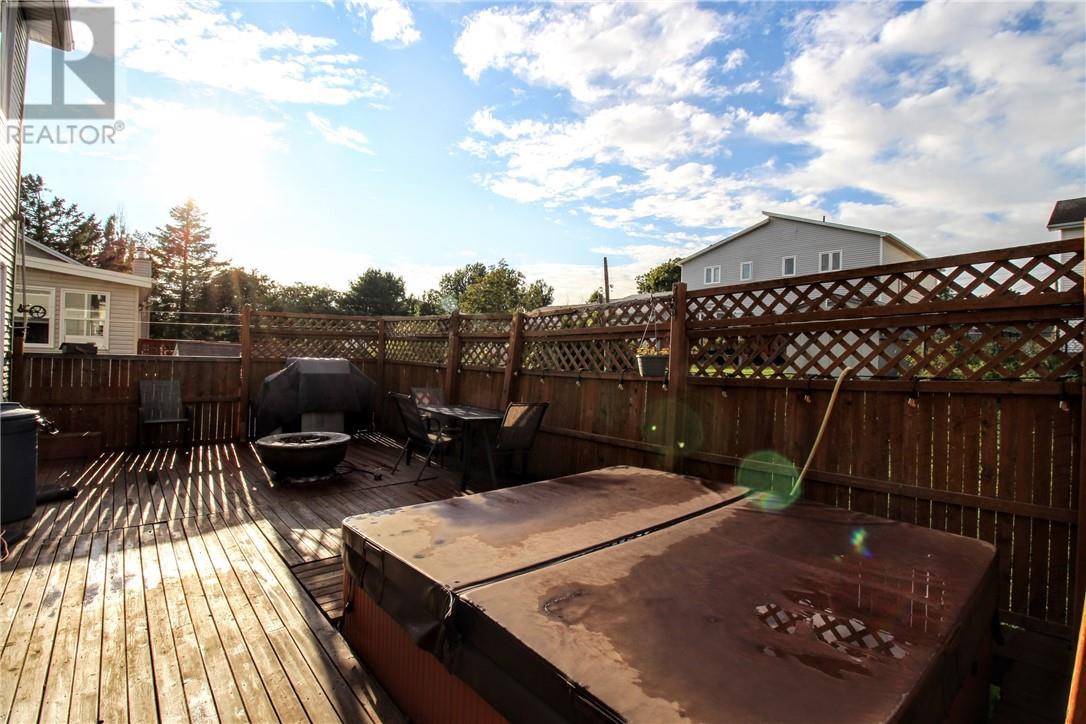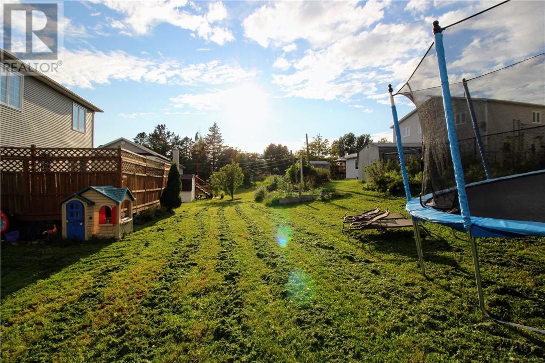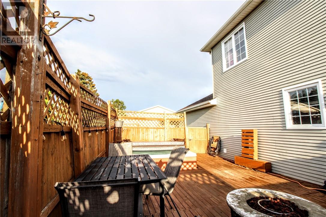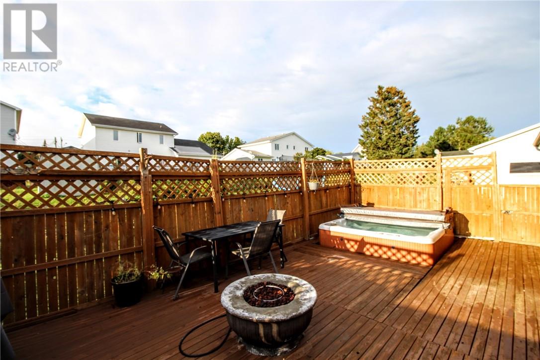 Bienvenue / Welcome to 104 Elsie Crescent located in the popular friendly & family oriented neighbourhood of Fairview Knoll! Upon entering, you will noticed all the incredible living space area. This house is perfect for gathering with the generously sized living room and open concept dinning room & kitchen. The living room as a natural gaz fireplace. The Dinning Room lead you to the patio door where we can find a large private patio and a hot tub. Making your way back inside, the kitchen offers mid-brown kitchen cabinets with glass backsplash, stainless steel appliances and a large kitchen island. The main floor is complete with a half bath with laundry area and a side entrance for the garage. Make your way upstairs we have a large primary bedroom with walk in closet, and this bedroom connect to the 5pc full bathroom. The full bathroom offers a large vanity with double sink, a corner tub and a stand up shower. 2 other good size bedrooms with good size closet and a linen closet completes that level. Basement offers a large family room, pass the red doors we have an unfinished room that can be converted to a craft room, an office room, etc. A furnace room with storage area completes that level. Outside, we have a 1.5 garage, double paved driveway, a very good size backyard with garden boxes , etc. Also, a storage shed behind the garage. The house is controlled by a central gaz system with a heat pump. Dont wait, book your private viewing now! (id:22211)