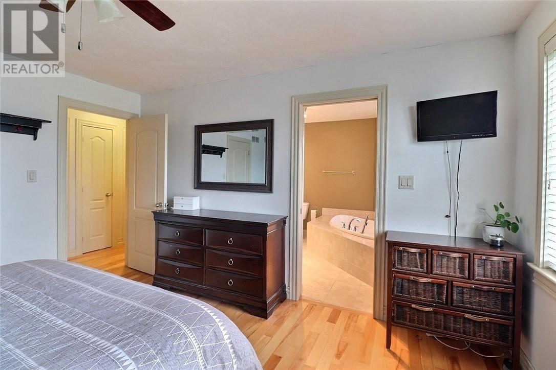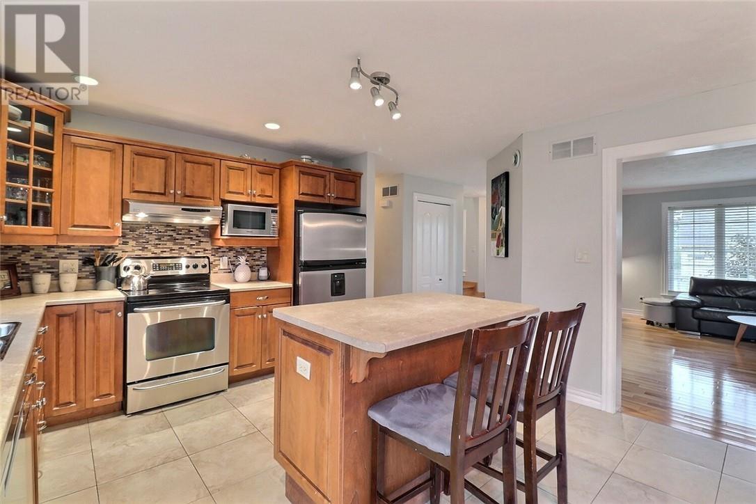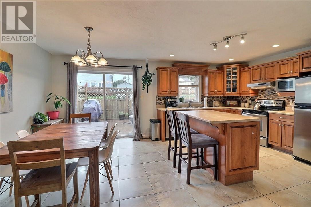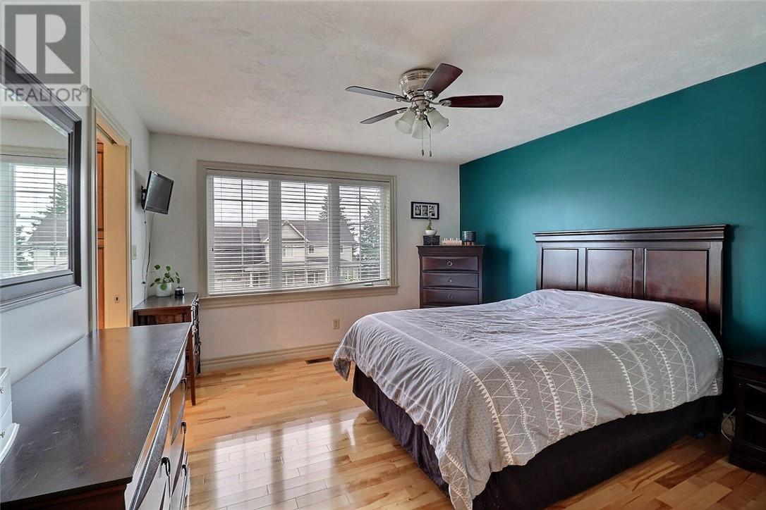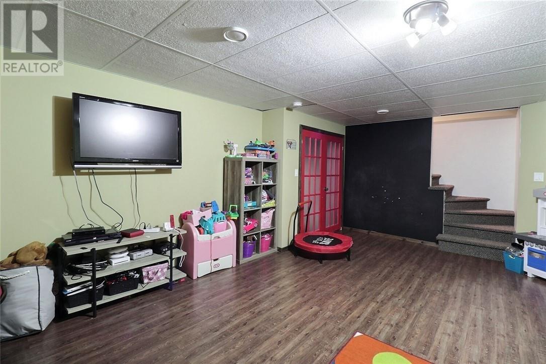 Bienvenue / Welcome to 104 Elsie Crescent located in the popular friendly & family oriented neighbourhood of Fairview Knoll! Upon entering, you will noticed all the incredible living space area. This house is perfect for gathering with the generously sized living room and open concept dinning room & kitchen. The living room as a natural gaz fireplace. The Dinning Room lead you to the patio door where we can find a large private patio and a hot tub. Making your way back inside, the kitchen offers mid-brown kitchen cabinets with glass backsplash, stainless steel appliances and a large kitchen island. The main floor is complete with a half bath with laundry area and a side entrance for the garage. Make your way upstairs we have a large primary bedroom with walk in closet, and this bedroom connect to the 5pc full bathroom. The full bathroom offers a large vanity with double sink, a corner tub and a stand up shower. 2 other good size bedrooms with good size closet and a linen closet completes that level. Basement offers a large family room, pass the red doors we have an unfinished room that can be converted to a craft room, an office room, etc. A furnace room with storage area completes that level. Outside, we have a 1.5 garage, double paved driveway, a very good size backyard with garden boxes , etc. Also, a storage shed behind the garage. The house is controlled by a central gaz system with a heat pump. Dont wait, book your private viewing now! (id:22211)