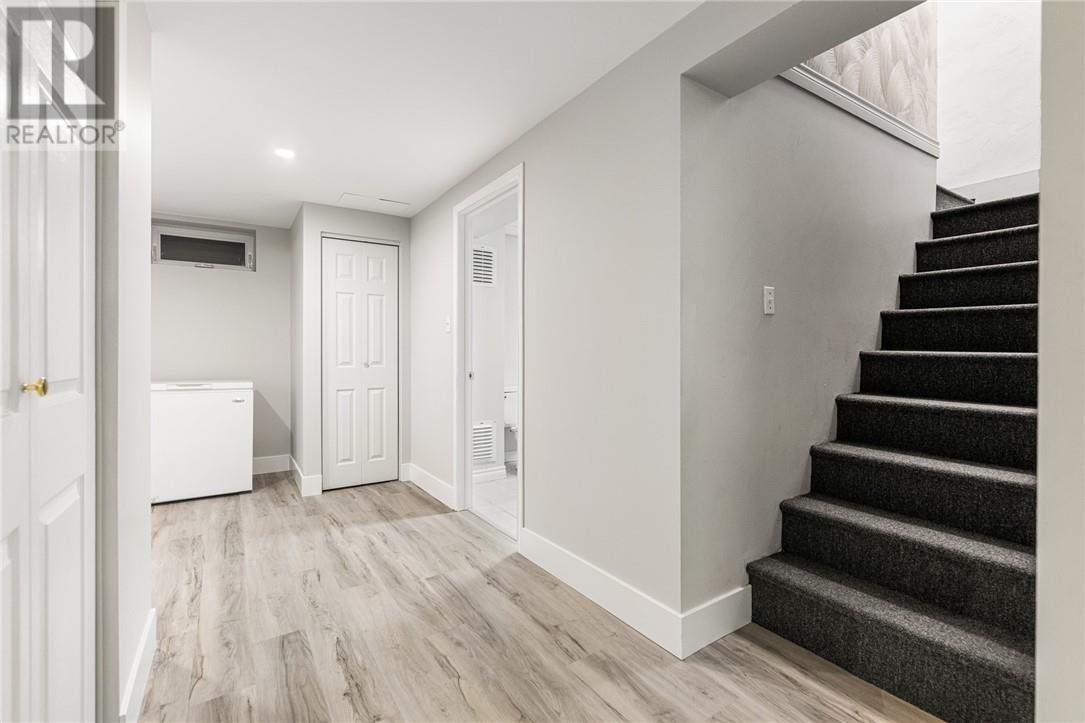 NEW WEST END/JONES LAKE AREA OF MONCTON...THIS HIGHLY SOUGHT AFTER FAMILY FRIENDLY NEIGHBOURHOOD is close to both English (Bessborough and MacNaughton) and French (Sainte-Bernadette) Schools as well as a new k-8 school currently under construction. Centennial Park is a short walk away which boasts walking trails, a new outdoor pool, a dog park, tennis courts, playgrounds, and much more. This bright, spacious, climate-controlled 2 storey home has 3 generous bedrooms up, a 2pc ensuite, 4 pc family bath with heated floors. The main level has a large family room with brick facade highlighting the energy-efficient wood insert stove for those cold winter days. The living room has an elegant fireplace mantle with electric insert. French Doors separate the living room/dining room, which is currently used as a main floor bedroom. Entering through the side entrance is a breezeway connecting the double garage. This side entrance off the driveway is so convenient with access to the bright spacious kitchen, all new stainless appliances only a year old in April(extended warranty purchased). Food preparation is a pleasure when you can enjoy the outdoors through the large patio doors to your rear deck and yard. Off the side entrance is also a half bath, closet, and stairs to the freshly fully finished basement. On the Lower Level is a 3pc bath/laundry room, large family room, and two other rooms that were used as bedrooms but the windows are non-conforming. Many updates! (id:22211)