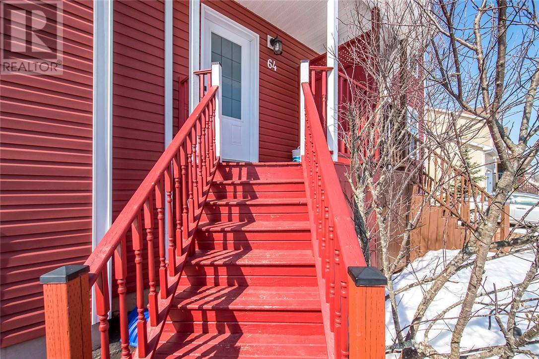 Welcome/Bienvenue to 64 Hunterwood Street, located in the popular Moncton North End. This beautiful semi-detached home features a 3 bedroom, 2.5 bathroom. A double paved driveway that conveinently park four (4) cars welcomes you to this home. As you walk in through the front door, you are greeted by a spacious living room with lots of natural lights, a half bathroom, a large eat-in kitchen with hardwood cabinets and stainless steel appliances and a pantry. The back has a large deck, spacious for all kinds of activities. The second floor features the primary bedroom with a walk-in closet, 2 additional spacious bedrooms and a large 3 piece bathroom. On the lower level comes a family living room that can be used as an office space, game room/gym. It also has a storage, a mechanical room, a 3 piece bathroom with standup shower and laundry. This property comes with central air conditioning for cooling and natural gas furnace for heating in the hot and cold weather. This property is located near Evergreen school, Moncton North YMCA, and a short drive to many amenities. Call your REALTOR® today for viewing. (id:22211)