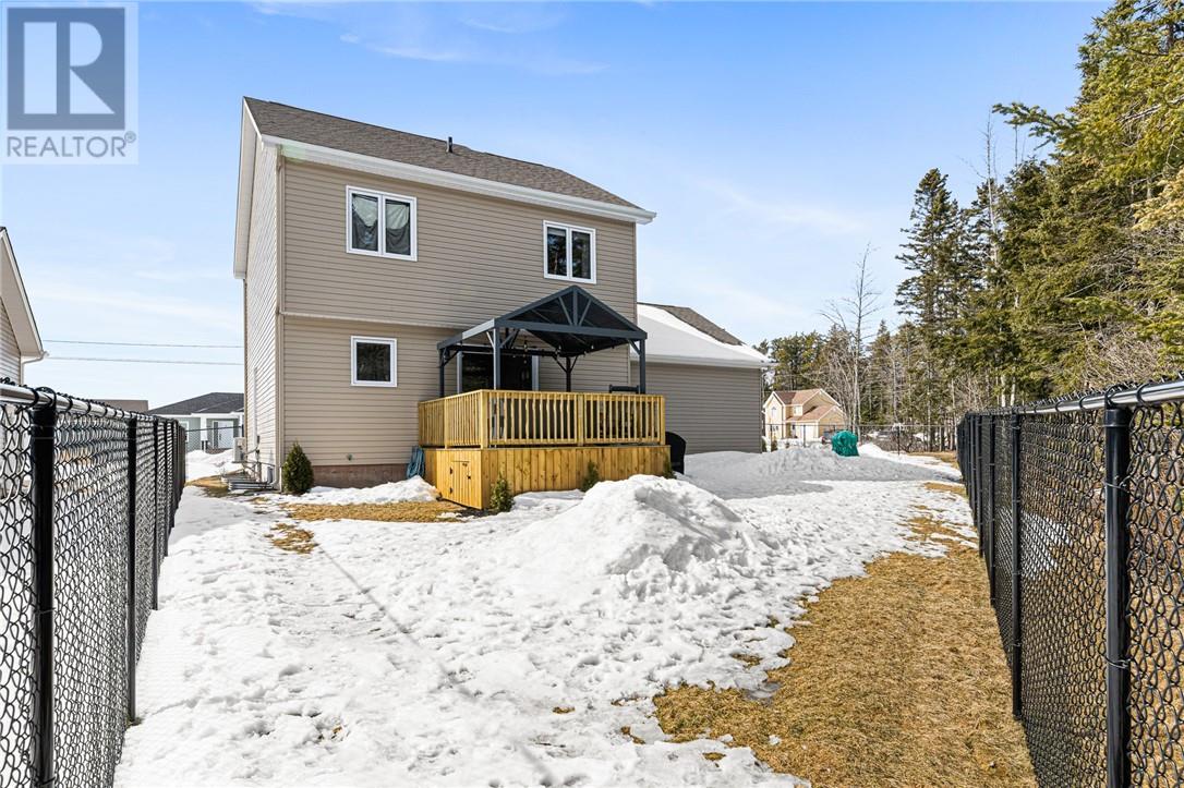 Bienvenue/ Welcome to 67 Amity St in Popular Mapleton Heights Subdivision! This beautiful home has been exceptionally well maintained! Featuring a beautiful fenced private backyard & backing on city protected land that will surely please it's new family. As you enter the home you will find a beautiful open concept main flr with a large living rm with hardwood floors, a beautiful white modern kitchen with a large island, loads of cupboard space, pantry and stainless steel appliances. The dining area is perfect to entertain all your friends and family. Off the dining rm you will find patio doors leading you to the private back deck with a beautiful covered gazebo that will remain with the property where you can enjoy your morning coffee or a glass a wine after a long day! Completing this level is a half bath with laundry rm. As you make your way upstairs you'll find the large primary bedrm with a beautiful ensuite and walk-in closet. This floor also offers two additional good size bedrms and the family full bathrm. The basement is ready to be finish with the potential for a family rm and a 4th bedrm and a 4th bathrm with lots of storage area.The large attached garage with ample build in shelving, 2 mini-split heat pump, double paved driveway & beautiful landscaped yard add even more wow to this amazing home! This home is located close to all amenities including shopping, schools, restaurants, Casino NB and highway. Call for your private viewing today! (id:22211)