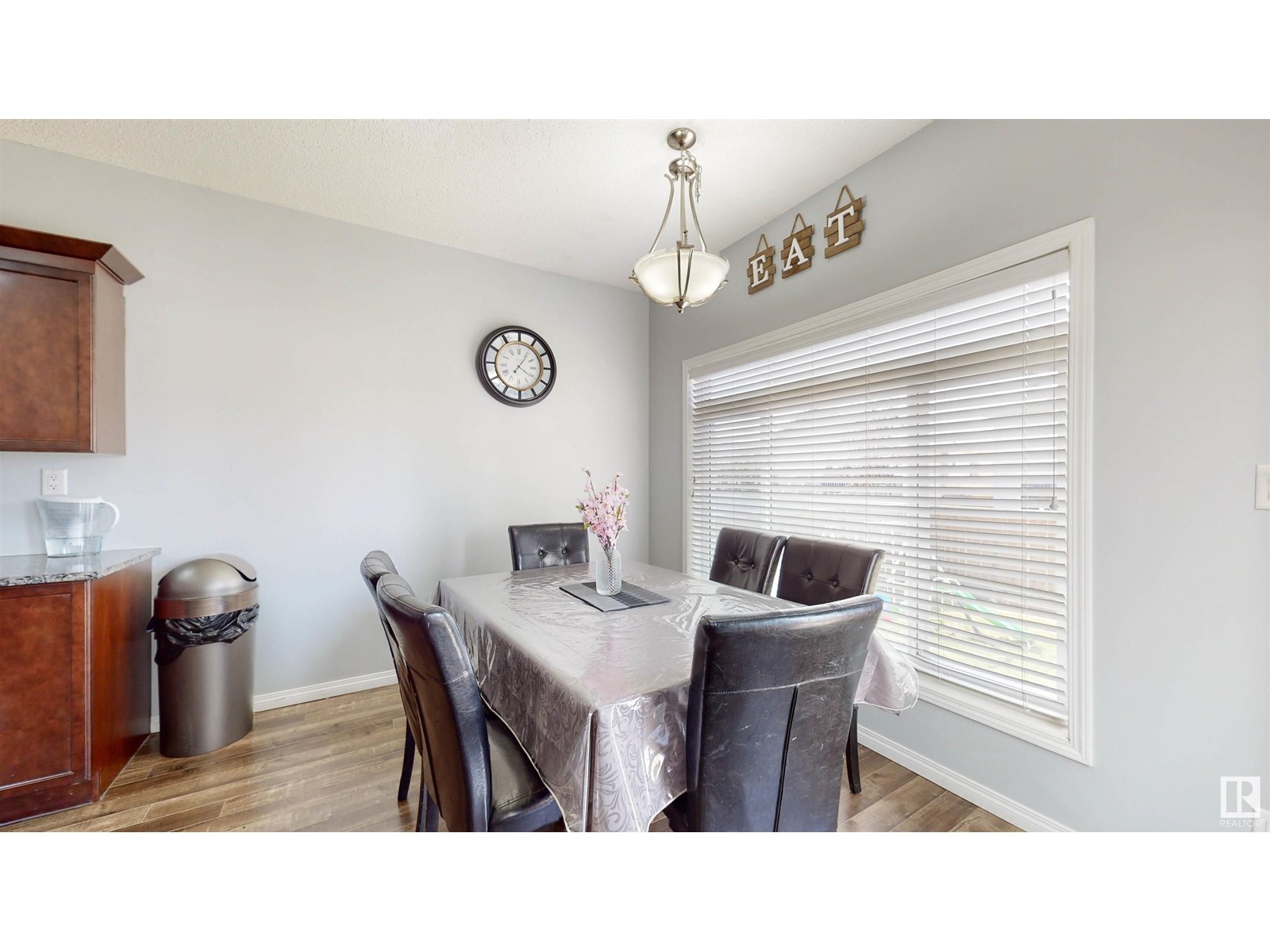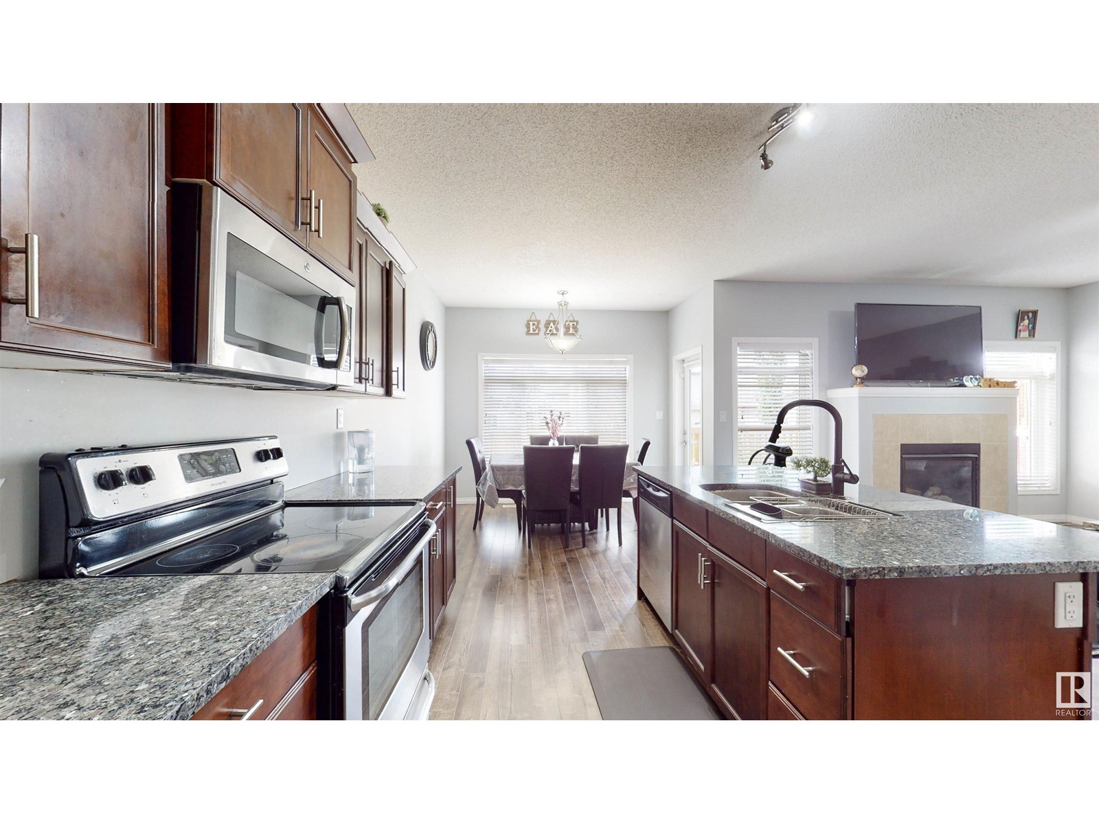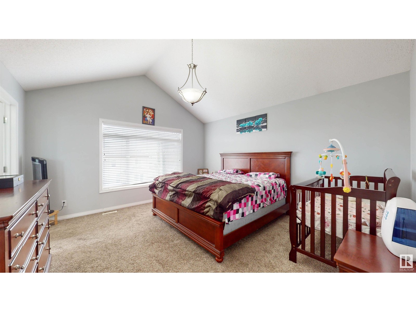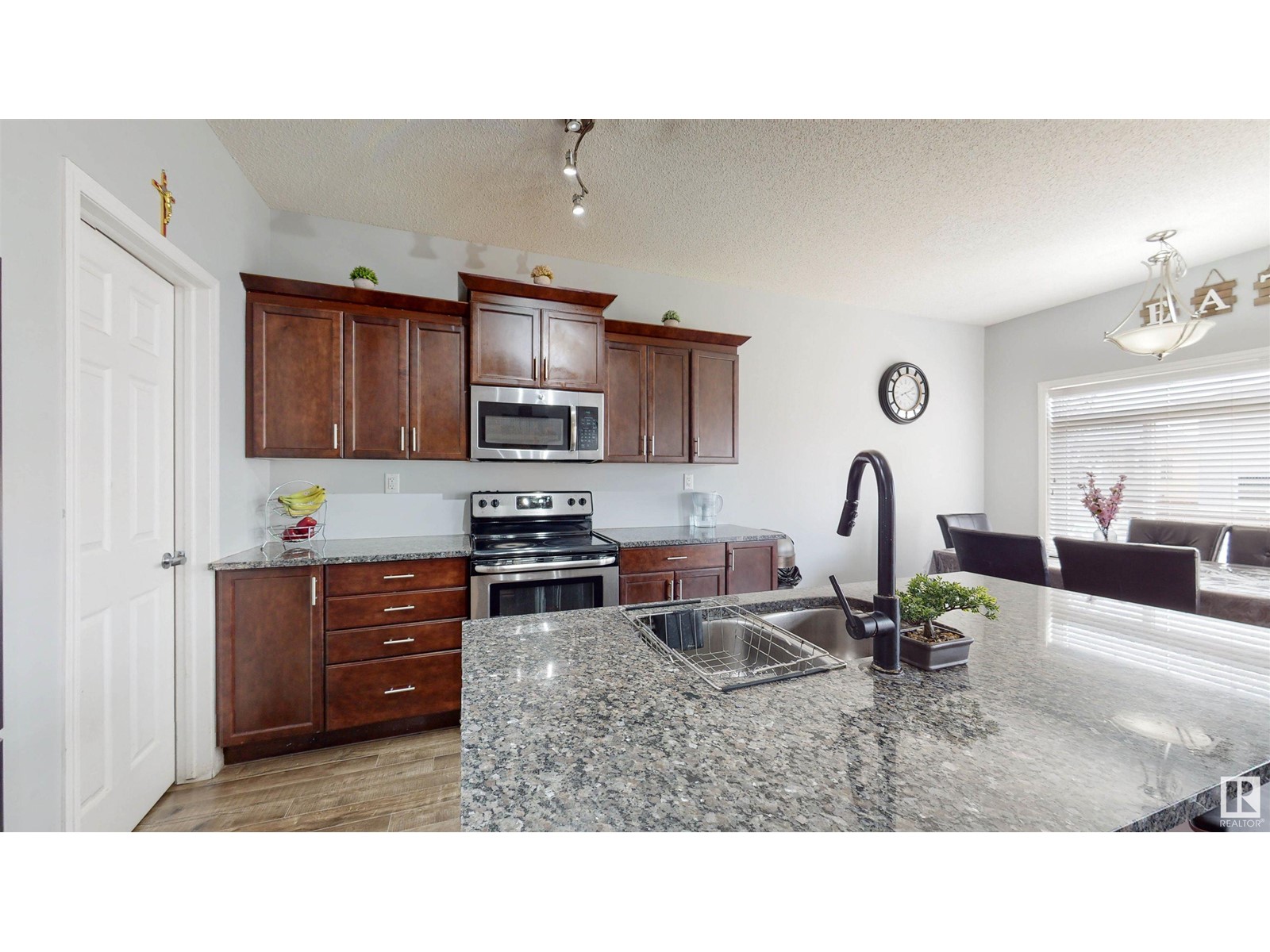 Motivated Seller !!! A Stunning open concept home in the quiet community of Notre Dame Estates in Morinville. Close to schools and all facilities. The main floor features an amazing kitchen with stainless steel appliances, a huge island with granite countertops, dark espresso cabinets, a large open dining area and a huge walk-though pantry. The large, bright windows overlooking the backyard from the living/dining area makes it appealing & lively. Upstairs you will find a huge master suite with large windows, a bonus room for family retreat and 2 additional bedrooms. Attached to master suite is a huge master bath with vaulted ceilings, large walk-in closet, double sinks, vanity, granite countertops, corner bath and separate shower. This home has many great features including large windows throughout, 9ft ceilings, granite countertops throughout, stunning floors, gas fireplace, 3 windows in the basement, double garage and more. The front and back yards are also fully landscaped and fenced. (id:22211)