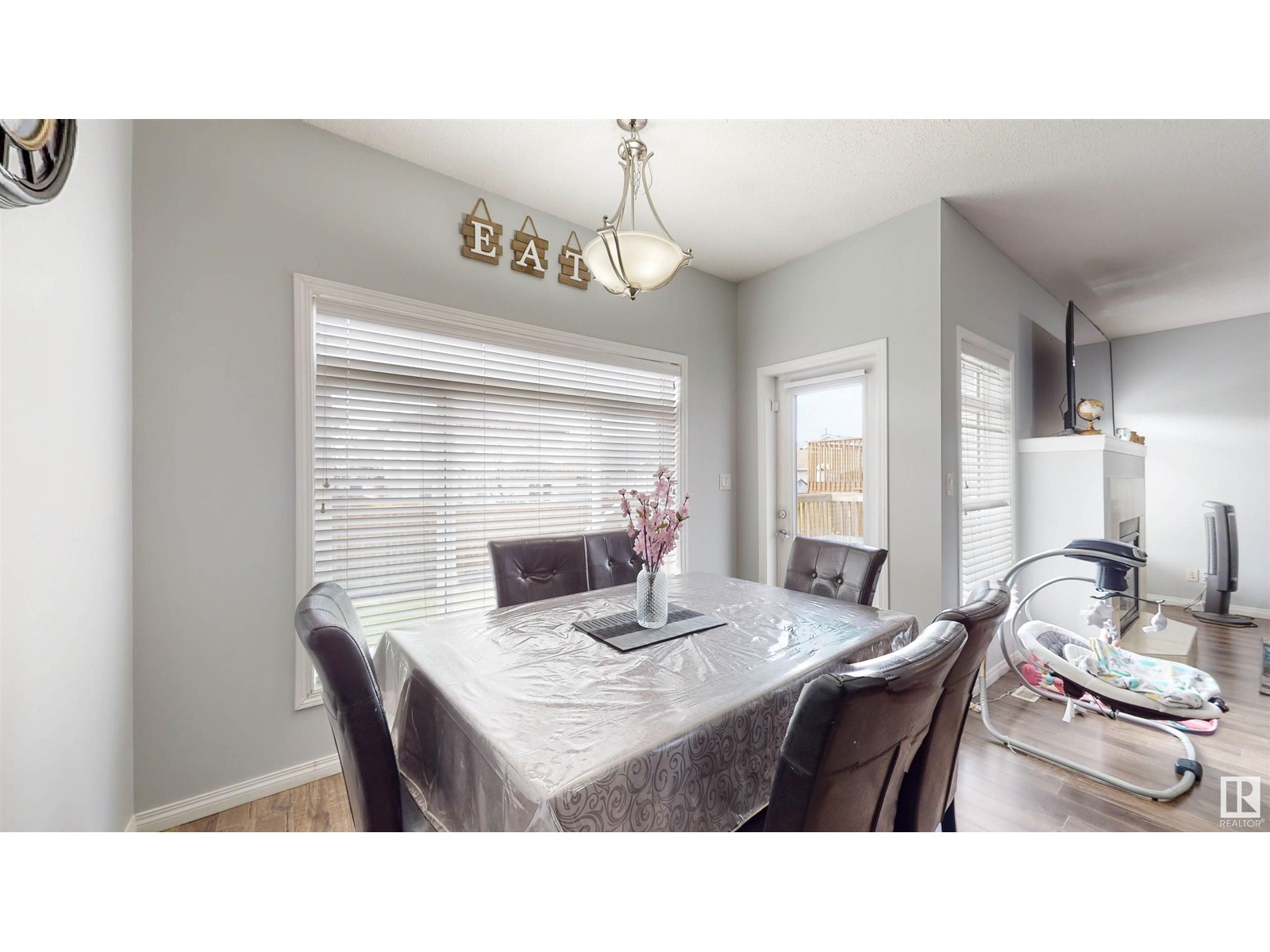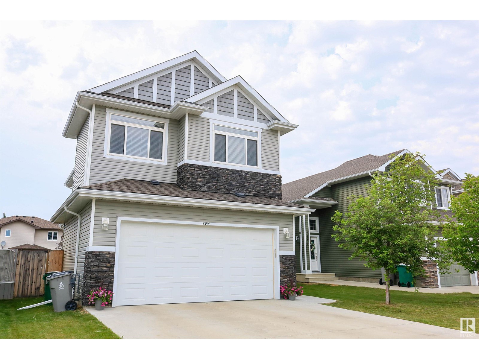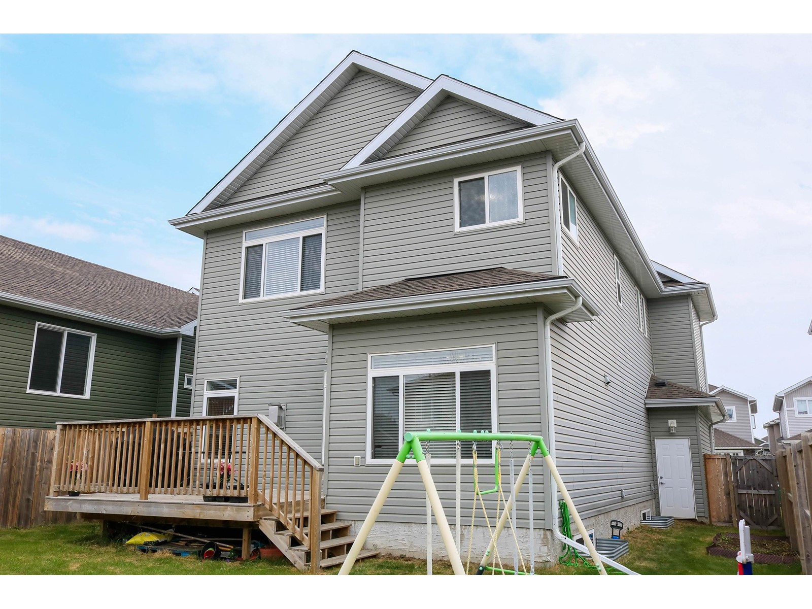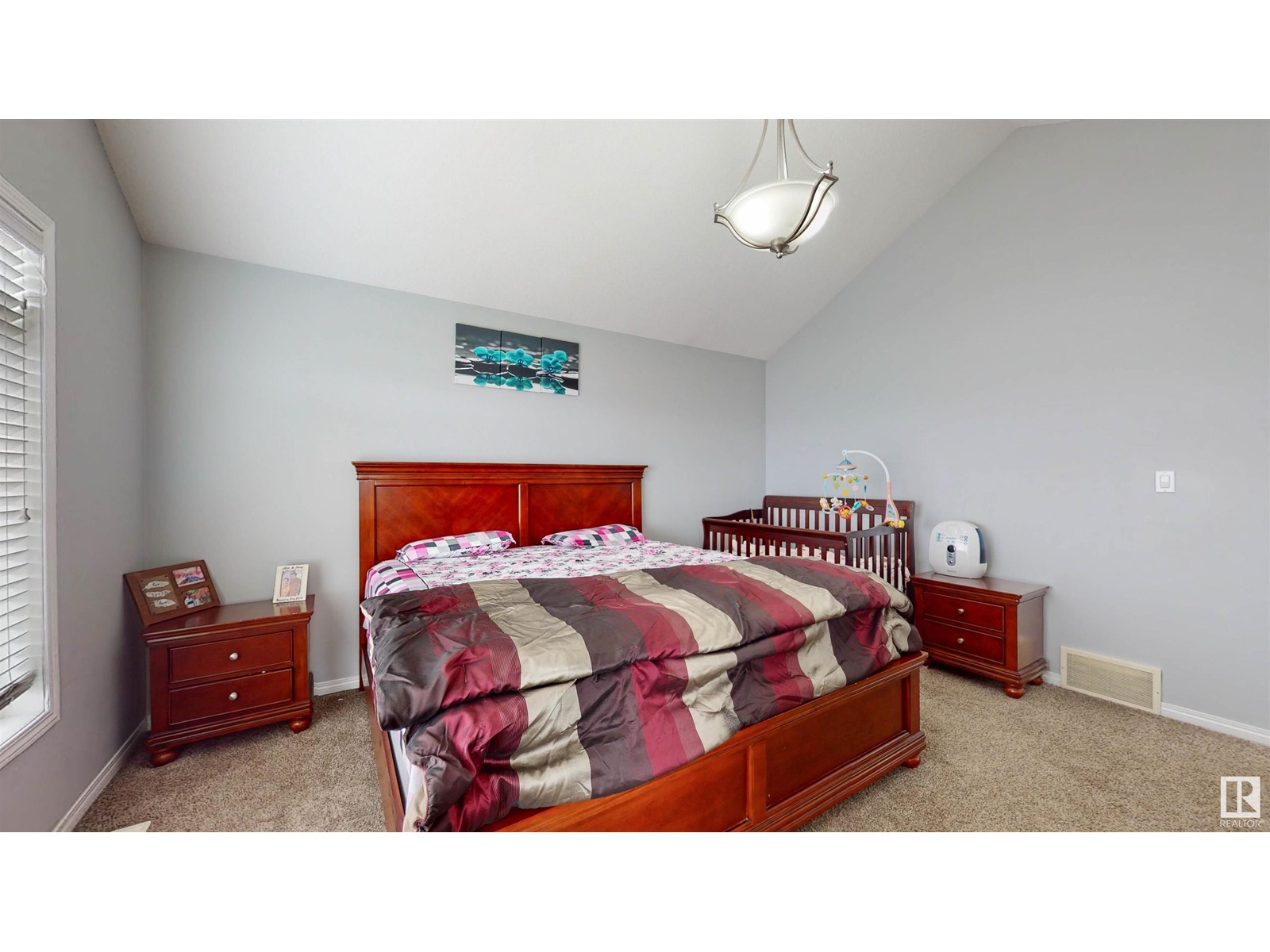 Motivated Seller !!! A Stunning open concept home in the quiet community of Notre Dame Estates in Morinville. Close to schools and all facilities. The main floor features an amazing kitchen with stainless steel appliances, a huge island with granite countertops, dark espresso cabinets, a large open dining area and a huge walk-though pantry. The large, bright windows overlooking the backyard from the living/dining area makes it appealing & lively. Upstairs you will find a huge master suite with large windows, a bonus room for family retreat and 2 additional bedrooms. Attached to master suite is a huge master bath with vaulted ceilings, large walk-in closet, double sinks, vanity, granite countertops, corner bath and separate shower. This home has many great features including large windows throughout, 9ft ceilings, granite countertops throughout, stunning floors, gas fireplace, 3 windows in the basement, double garage and more. The front and back yards are also fully landscaped and fenced. (id:22211)