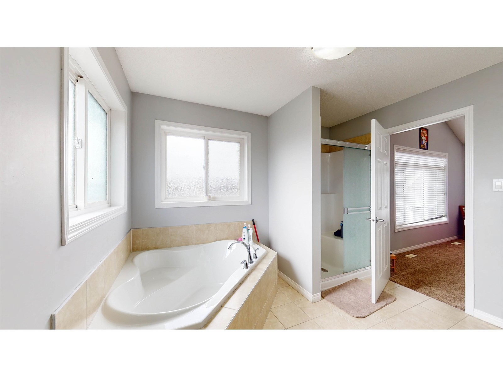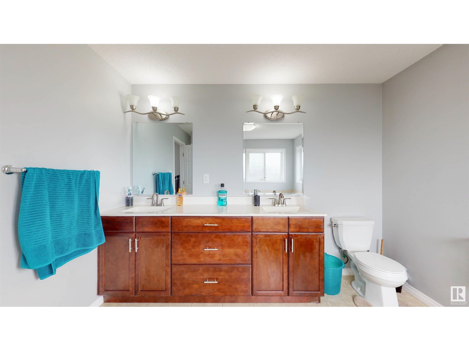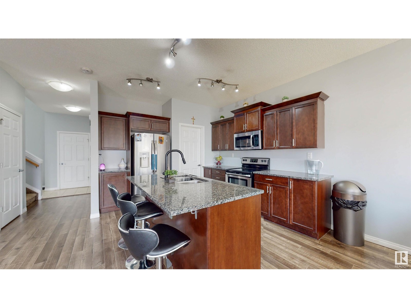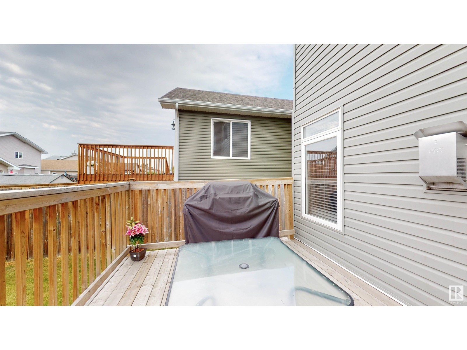 Motivated Seller !!! A Stunning open concept home in the quiet community of Notre Dame Estates in Morinville. Close to schools and all facilities. The main floor features an amazing kitchen with stainless steel appliances, a huge island with granite countertops, dark espresso cabinets, a large open dining area and a huge walk-though pantry. The large, bright windows overlooking the backyard from the living/dining area makes it appealing & lively. Upstairs you will find a huge master suite with large windows, a bonus room for family retreat and 2 additional bedrooms. Attached to master suite is a huge master bath with vaulted ceilings, large walk-in closet, double sinks, vanity, granite countertops, corner bath and separate shower. This home has many great features including large windows throughout, 9ft ceilings, granite countertops throughout, stunning floors, gas fireplace, 3 windows in the basement, double garage and more. The front and back yards are also fully landscaped and fenced. (id:22211)