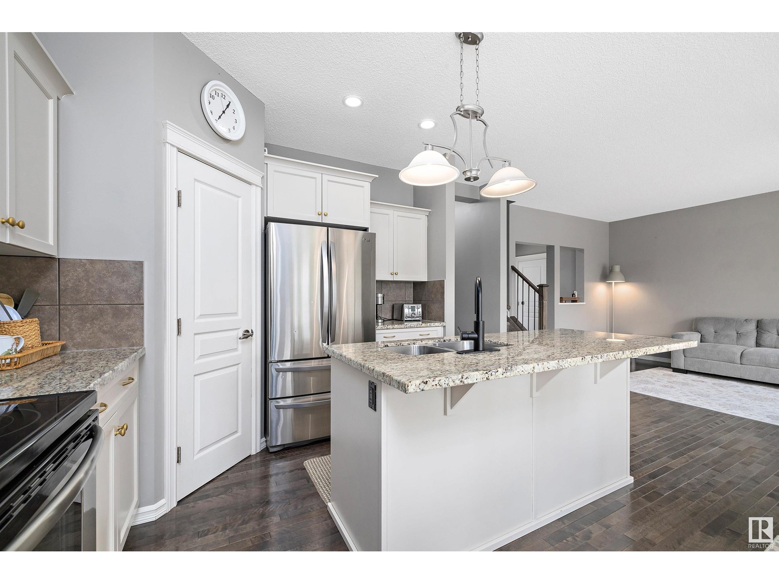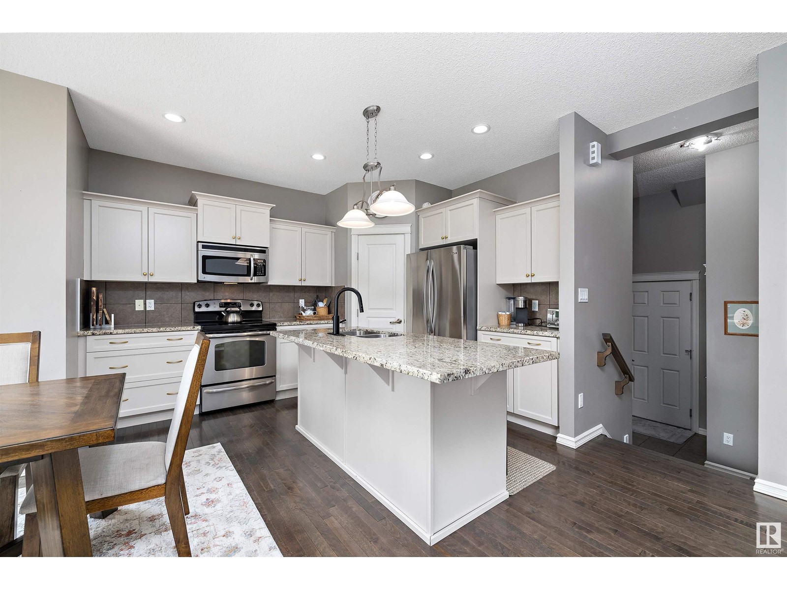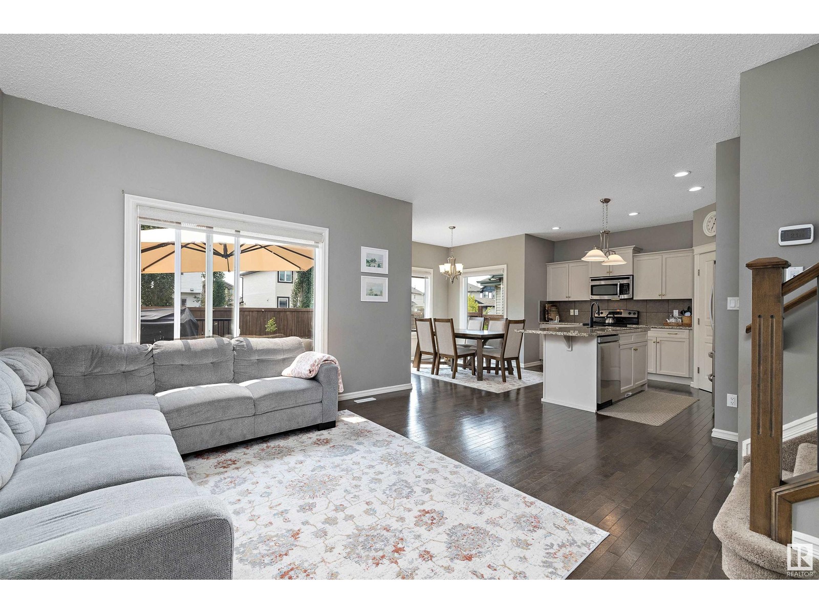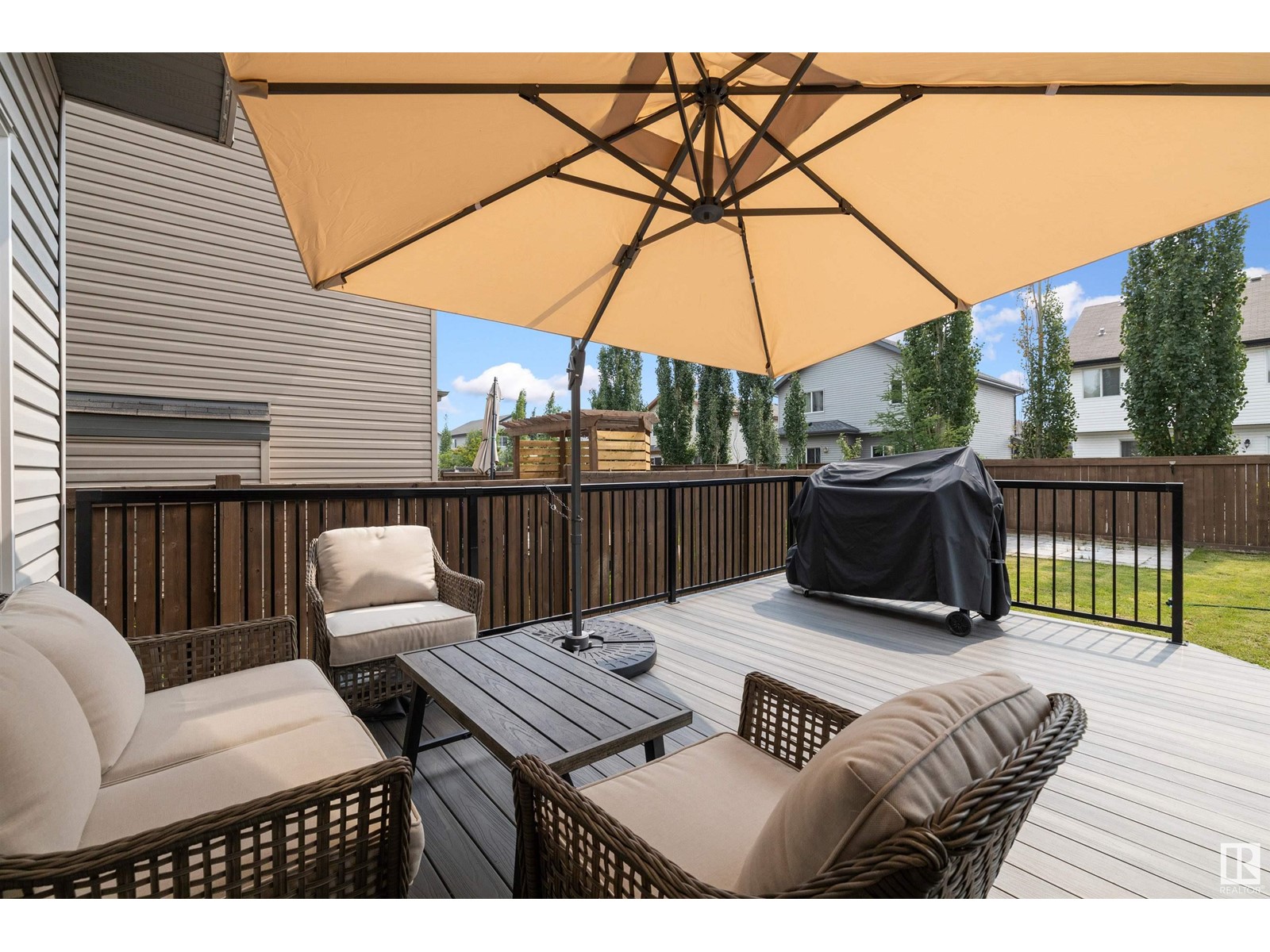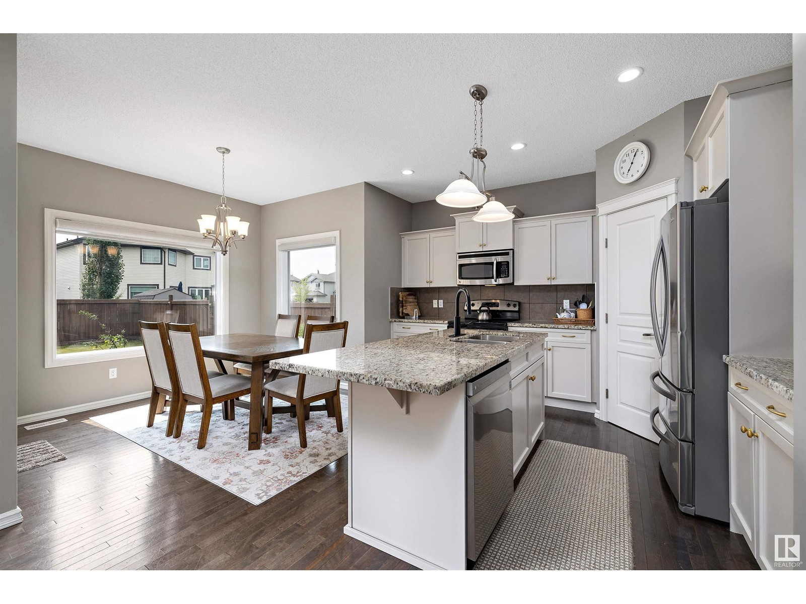 Welcome to this 2000+ total sq ft Landmark home located in The Lakes in Morinville, ten minutes north of St Albert. Open concept kitchen to family room, hardwood and ceramic flooring comes with six appliances, three bedroom, three bathrooms plus large bonus room. Main floor leads to a spacious composite deck and large backyard. Basement is fully finished with a great sized family room and den/office. Other upgrades include tankless instant Hot Water, Central Air Conditioning, Garage Heater, BBQ gas hook up on deck, Turf and Rock front landscaping and much more! (id:22211)