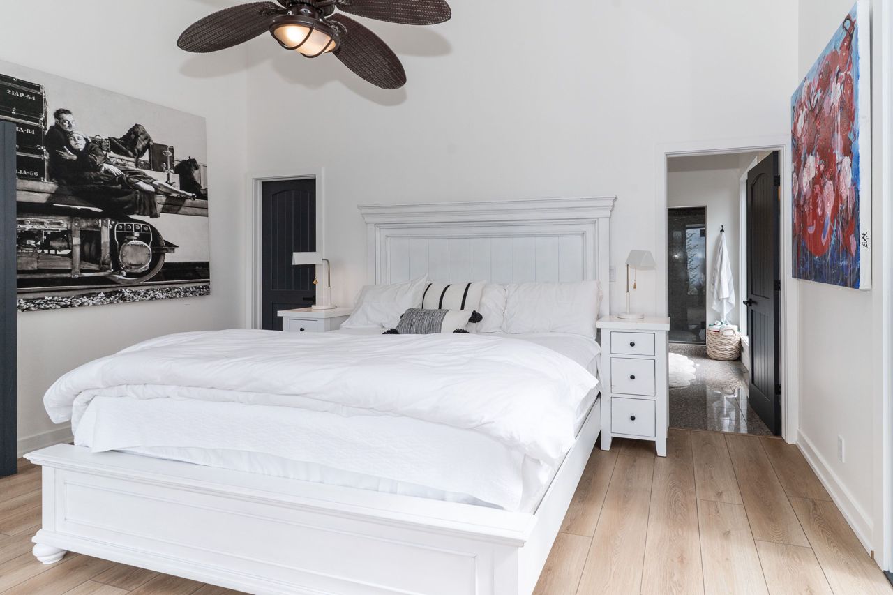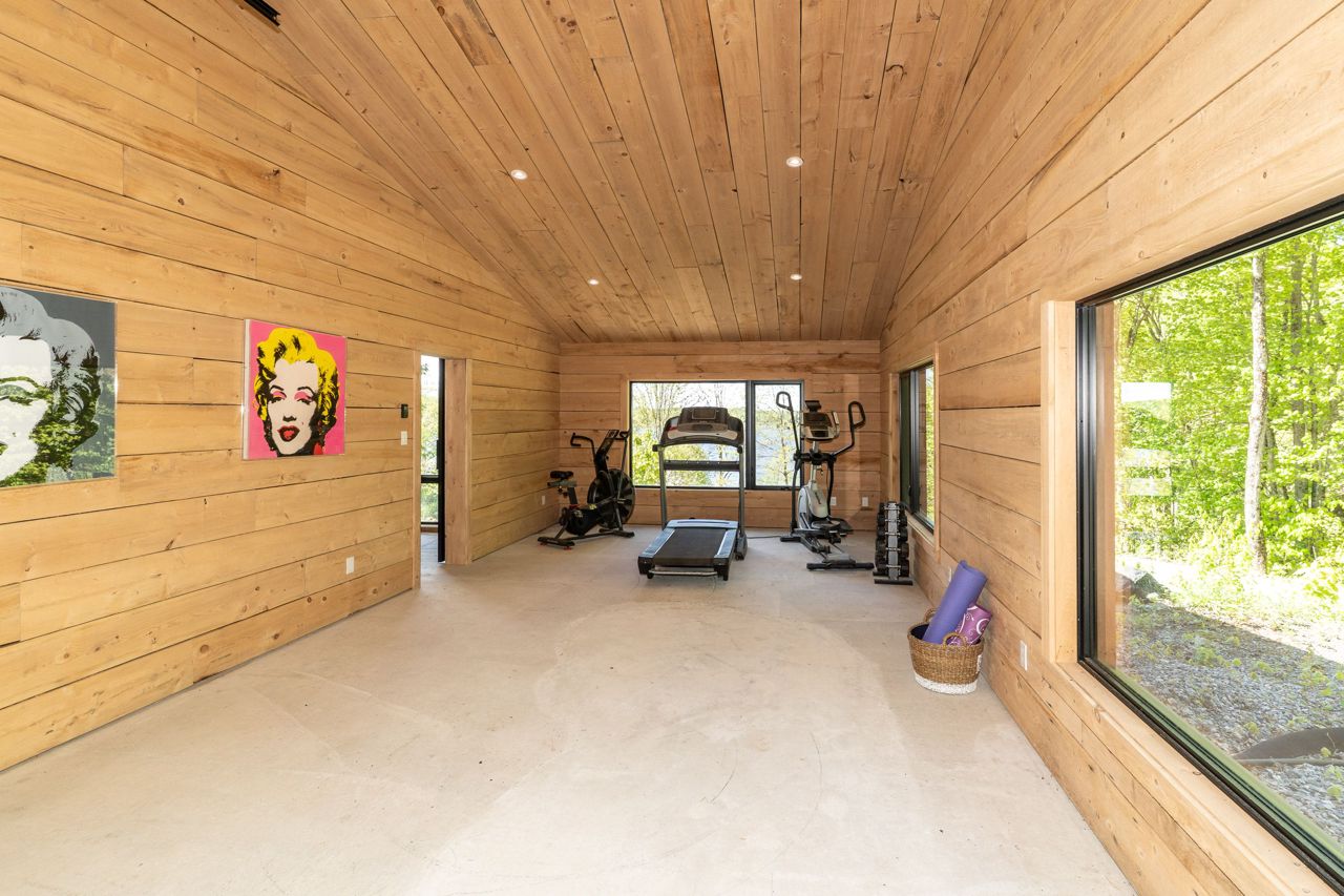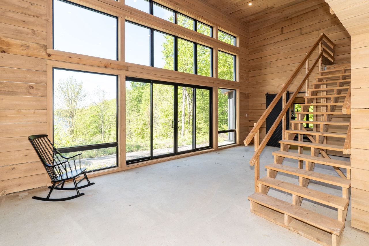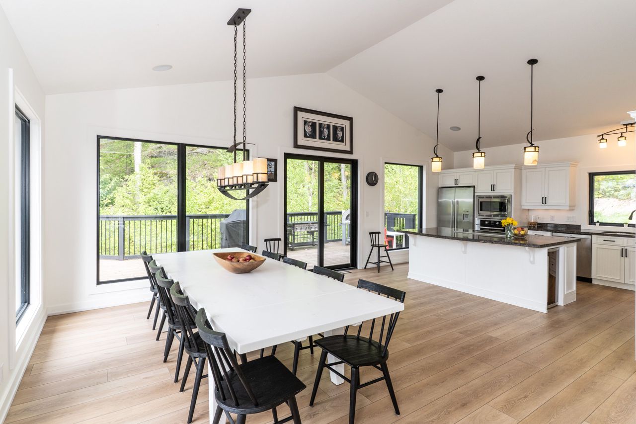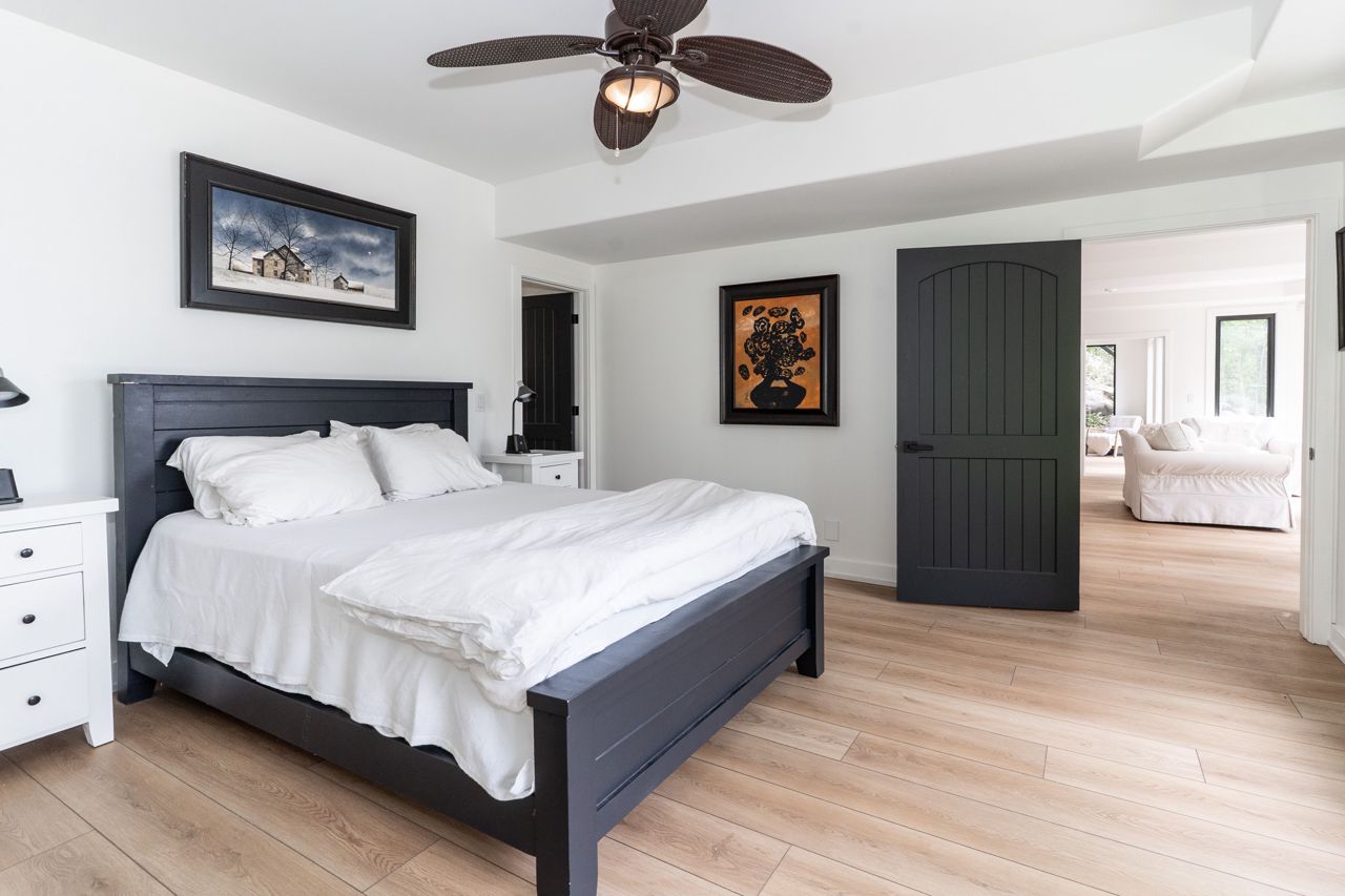 Exceptional year-round lakeside retreat offering 468 feet of frontage on beautiful Bruce Lake with southern exposure for all-day sunlight. The main floor showcases a bright, functional, open-concept layout with soaring ceilings, a gorgeous wood-burning fireplace, and lake views. The kitchen is well-equipped, and the spacious dining area allows you to host large gatherings with ease. The primary suite is conveniently located on the main floor and features an ensuite bathroom, walk-in closet, and scenic lake vistas; an additional bedroom completes this level. The lower level has been thoughtfully designed with a family room, wet bar, and two further bedroom suites, each equipped with full en-suite, walk-in closets, and lake views providing privacy for guests or family. The waterfront is the perfect setting for lakeside enjoyment, featuring a swim spa, children's playground, multiple gathering spaces, generous deck areas, and a large dock so your outdoor space caters to all ages. The cottage benefits from a durable Enviroshake roof, a generator wired to power the entire home, Inexpensive Geothermal Heat, a newly constructed 2-car garage with a studio space, a loft, ample natural light from floor-to-ceiling windows, plus separate septic systems. A paved driveway adds to the convenience, plus there is more than 7 acres of land to explore and enjoy. Additionally, the property is sold turn-key with most furnishings, allowing for immediate enjoyment.