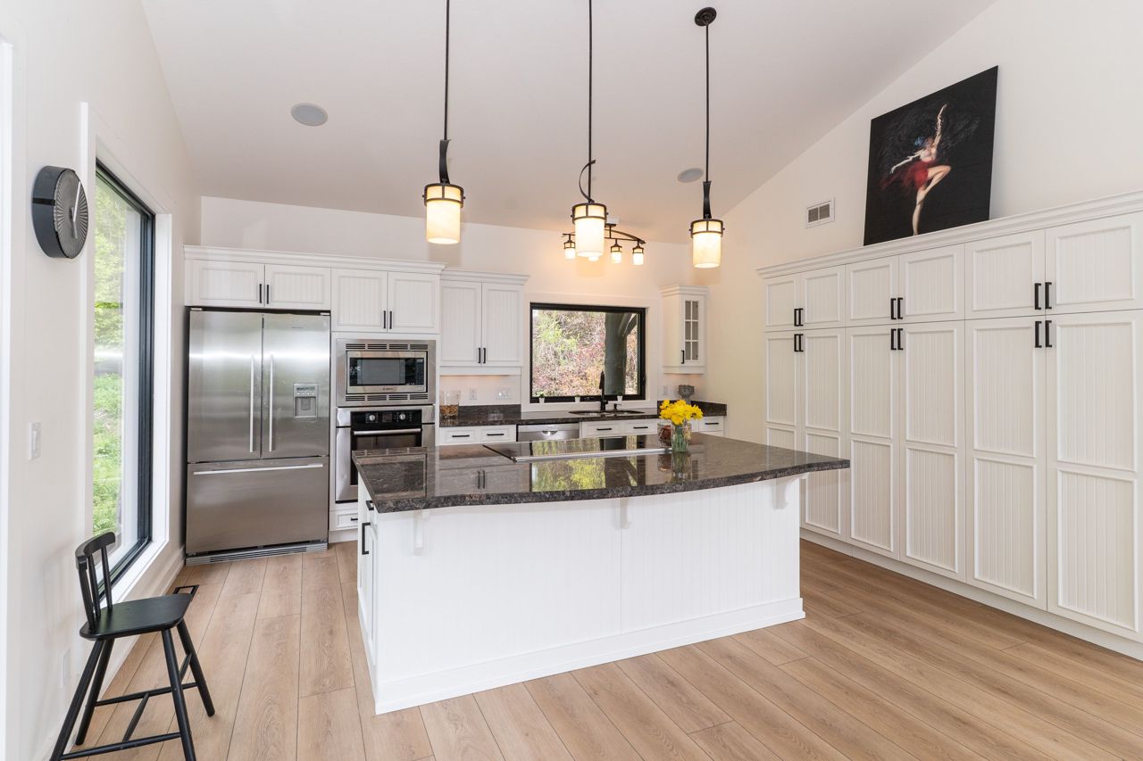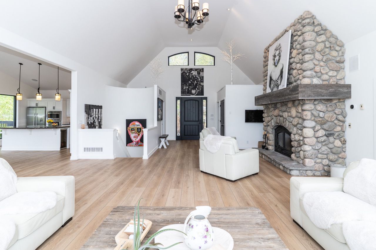 占地7英亩以上的绝佳全年湖畔度假屋,坐拥Bruce Lake湖468英尺的湖岸线,朝南尽享全天阳光。主层设计明亮实用,开放式布局,天花板挑高,拥有华丽的燃木壁炉,可欣赏湖景。厨房设备齐全,宽敞的用餐区可轻松款待大型聚会。主卧套房位于主层,带独立卫浴、步入式衣橱和迷人的湖景;另有一间卧室也位于此层。下层设计周全,设有家庭活动室、湿吧和两个额外的卧室套房,每间都配有独立的卫浴、步入式衣橱和湖景,为客人或家人提供私密空间。湖畔区域是享受湖滨乐趣的理想场所,设有戏水浴池、儿童游乐区、多个聚会空间、宽敞的甲板区域和一个大型码头,户外空间适合各个年龄段的人群。小屋配备耐用的Enviroshake屋顶、为整个房屋供电的发电机、经济实惠的地热供暖、新建的2车位车库,内设工作室、阁楼、落地窗提供充足的自然光,并拥有独立的化粪池系统。铺设好的车道增加了便利性,还有7英亩以上的土地可供探索和享用。此外,该房产按拎包入住方式出售,包含大部分家具,可即时入住。