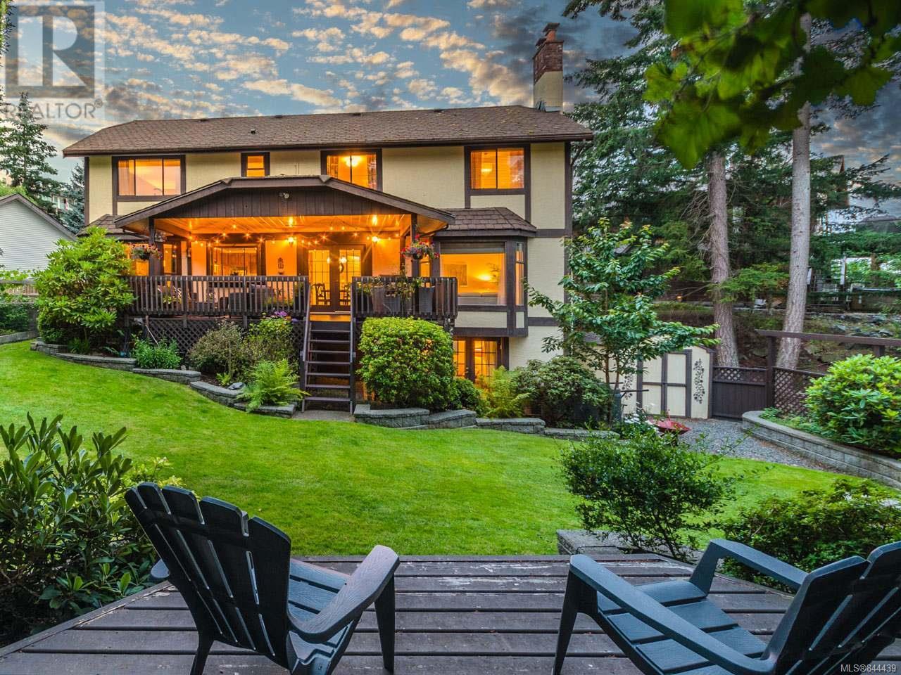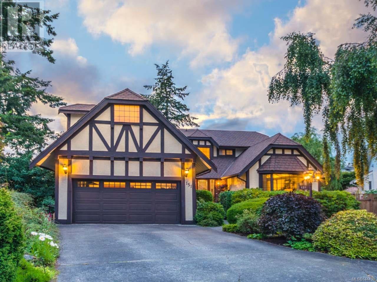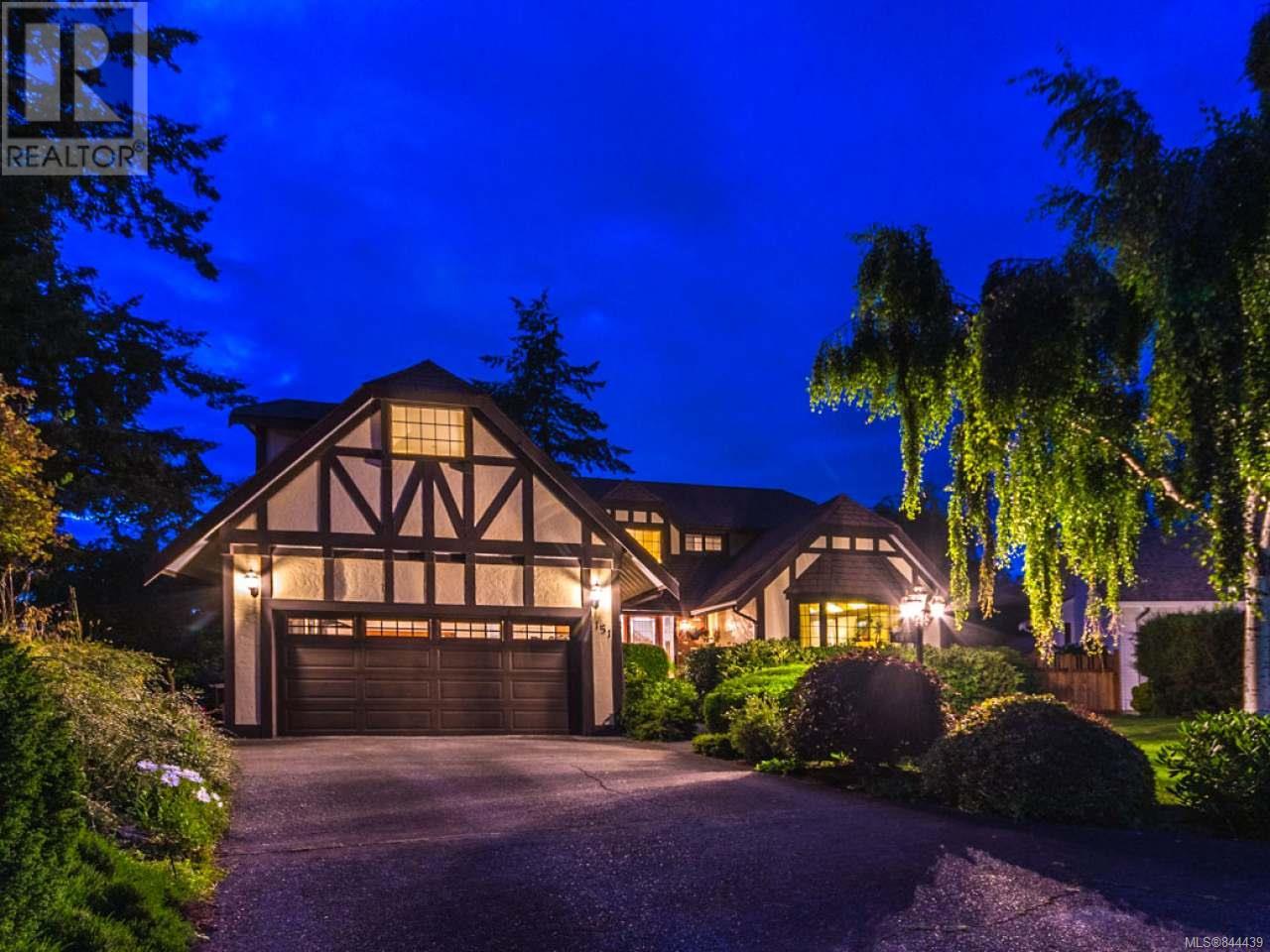 Meticulously maintained & guaranteed to amaze, this stunning Tudor-style home within Nanaimo's Huntington Estates is a true show-stopper. Those seeking a property with character & charm throughout can't go past this remarkable residence. Perfectly designed for any family, the expansive 3,629 sqft layout boasts a host of living spaces along with 4 bedrooms & 4 bathrooms. Natural light floods the spacious interior while the incredible attention to detail is immediately clear from the oak hardwood floors & wainscoting, vaulted ceilings, wood beams & gorgeous bay windows. An ample dining room is ready for your next gathering with friends and family. There's an adjoining living room & a nearby family room too. The family room provides a feature fireplace boasting a beautiful classic brick surround & the living room is simply stunning. The roomy kitchen offers sweeping countertops plus plenty of cabinets, a tiled backsplash, quality stainless steel appliances & a pantry. Next to the kitchen is an eating nook with French doors leading onto a large covered deck. A den with gorgeous built-in shelving, a laundry room & a half bath finish this level while a staircase connects to the second floor. Here, an enormous master bedroom awaits with an ensuite & a walk-in closet. There are also 2 guest bedrooms, a bathroom & an oversized bonus room. The living space continues on the lower level with a 4th bedroom, a full bathroom, a storage room & a recreation room. The 4th bedroom opens to the outdoors & could be used as a home office with a separate entry. The recreation room has a 2nd fireplace & spoils the owner with walk-out access to the back yard & a private rear patio complete with a hot tub. The long list of additional features includes a two-car garage, a new hot water tank, a heat pump, a built-in vacuum, an irrigation system & multiple outdoor entertaining areas. Just minutes from Departure Bay Beach, Pipers Lagoon and Neck Point. Data is approximate & should be verified. (id:22211)