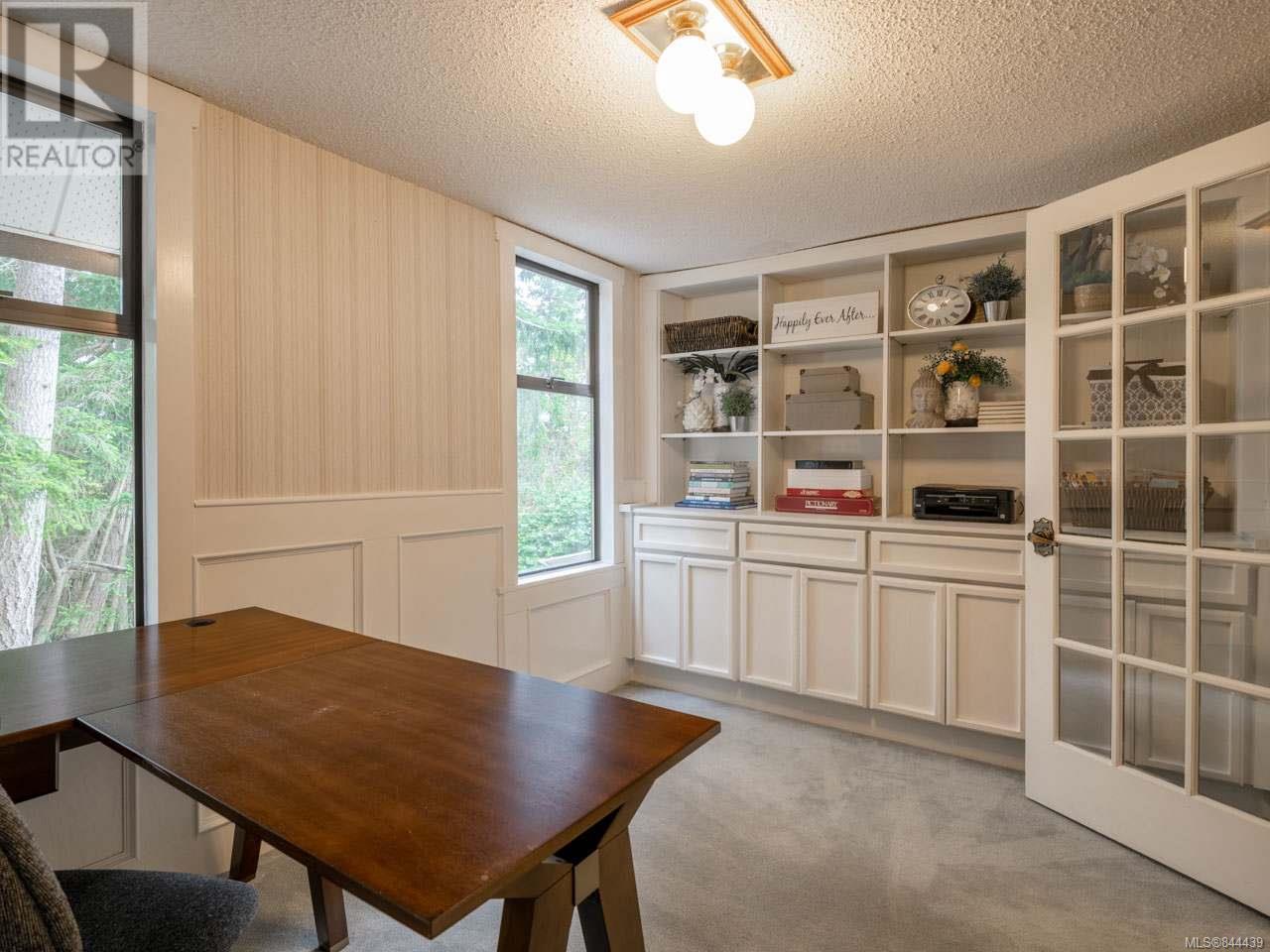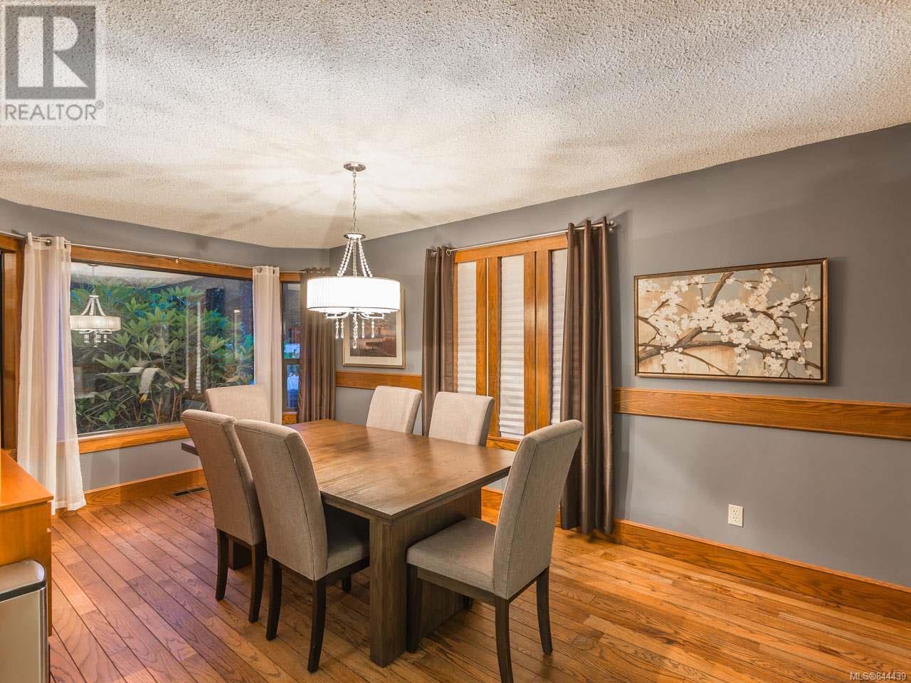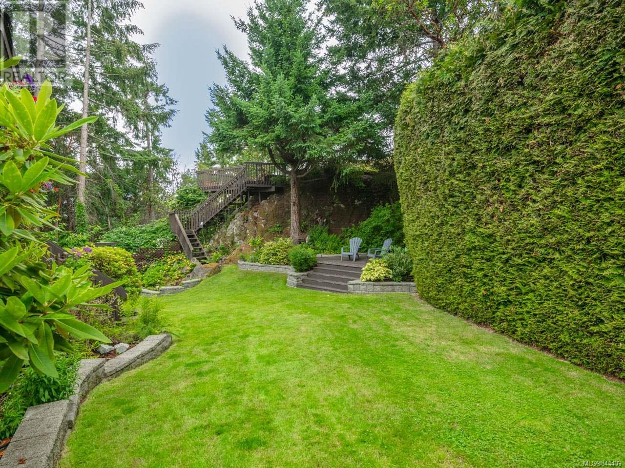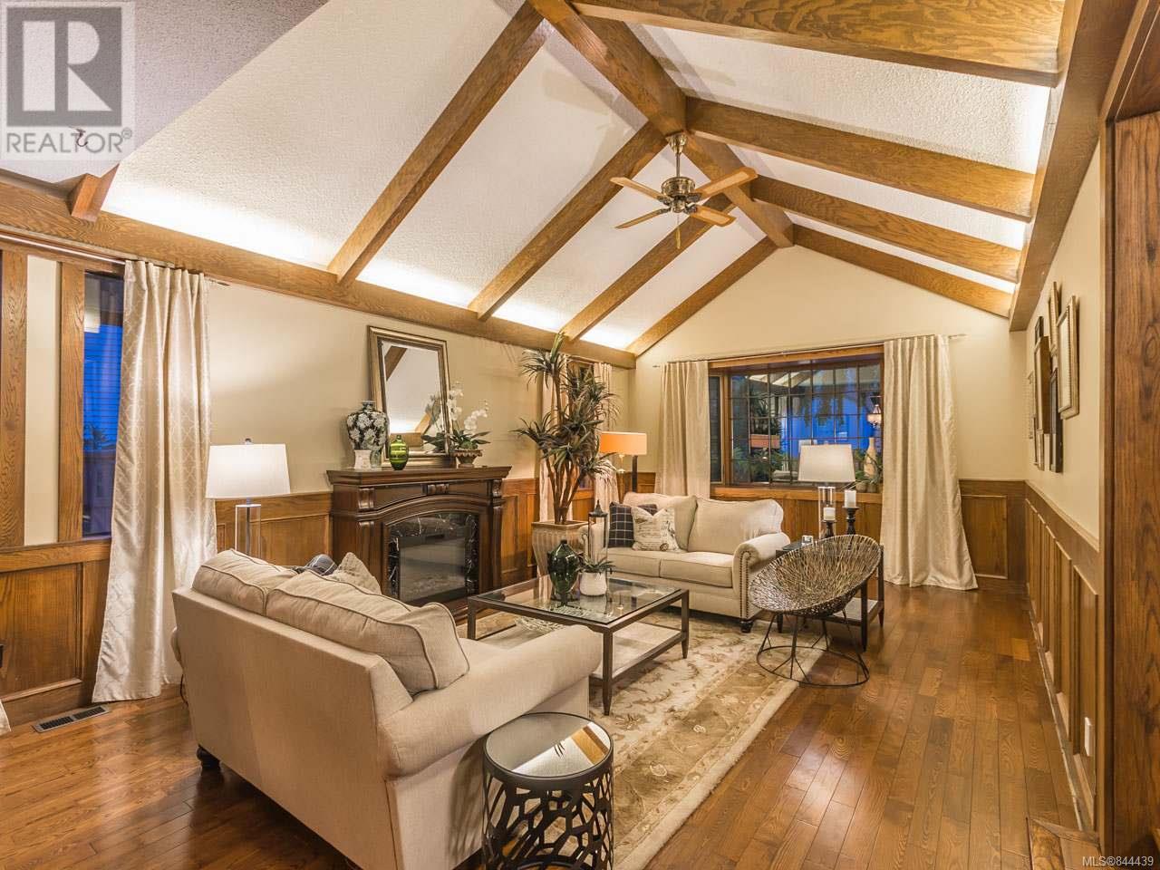 Meticulously maintained & guaranteed to amaze, this stunning Tudor-style home within Nanaimo's Huntington Estates is a true show-stopper. Those seeking a property with character & charm throughout can't go past this remarkable residence. Perfectly designed for any family, the expansive 3,629 sqft layout boasts a host of living spaces along with 4 bedrooms & 4 bathrooms. Natural light floods the spacious interior while the incredible attention to detail is immediately clear from the oak hardwood floors & wainscoting, vaulted ceilings, wood beams & gorgeous bay windows. An ample dining room is ready for your next gathering with friends and family. There's an adjoining living room & a nearby family room too. The family room provides a feature fireplace boasting a beautiful classic brick surround & the living room is simply stunning. The roomy kitchen offers sweeping countertops plus plenty of cabinets, a tiled backsplash, quality stainless steel appliances & a pantry. Next to the kitchen is an eating nook with French doors leading onto a large covered deck. A den with gorgeous built-in shelving, a laundry room & a half bath finish this level while a staircase connects to the second floor. Here, an enormous master bedroom awaits with an ensuite & a walk-in closet. There are also 2 guest bedrooms, a bathroom & an oversized bonus room. The living space continues on the lower level with a 4th bedroom, a full bathroom, a storage room & a recreation room. The 4th bedroom opens to the outdoors & could be used as a home office with a separate entry. The recreation room has a 2nd fireplace & spoils the owner with walk-out access to the back yard & a private rear patio complete with a hot tub. The long list of additional features includes a two-car garage, a new hot water tank, a heat pump, a built-in vacuum, an irrigation system & multiple outdoor entertaining areas. Just minutes from Departure Bay Beach, Pipers Lagoon and Neck Point. Data is approximate & should be verified. (id:22211)