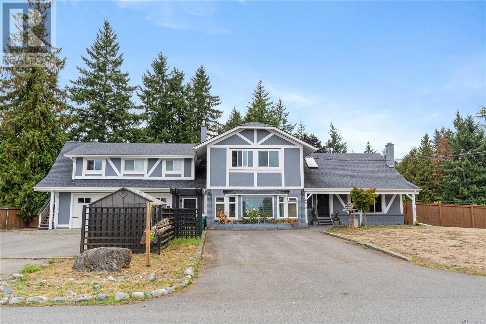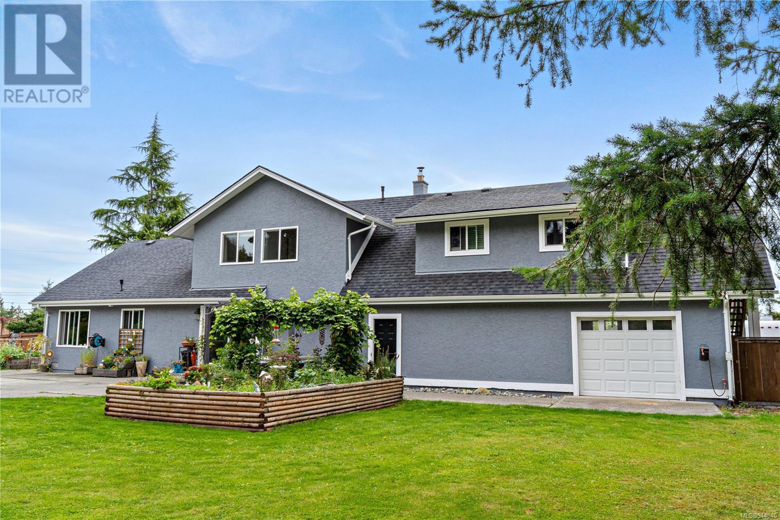 Situated on a fenced .59 acre corner lot is this Large country home located conveniently within the city limits. Sprawling over 3187 sq.ft. this 5 bedroom, 4 bathroom home includes a legal 2 bedroom suite with separate entrance & in-suite laundry above the garage. The home had several updates in 2017 including paint, all new windows, soffits, gutters & downspouts, 2 moveable storage sheds, large patio with hot tub & was completely landscaped. This home is warm & inviting with a great layout offering plenty of natural light. The 2017 interior updates included new bathrooms, paint throughout, updated kitchen & hardwood floors. Upstairs features the large primary suite & beautiful 3 pc ensuite, 2 additional bedrooms, a loft & 4 pc bathroom. There is no shortage of parking & room for all your toys on this property. Live in close proximity to all of North Nanaimo's amenities and still reside in the tranquil country setting. All measurements are approx. & should be verified if important. (id:22211)