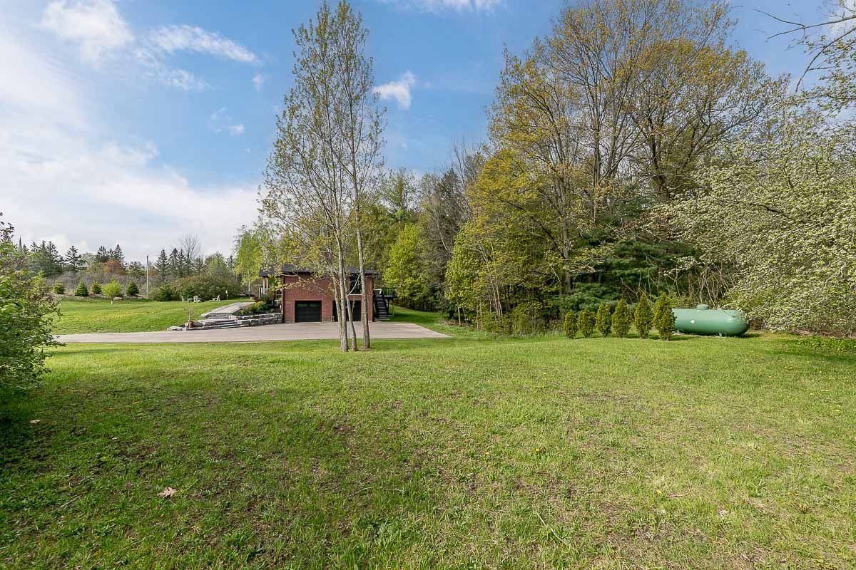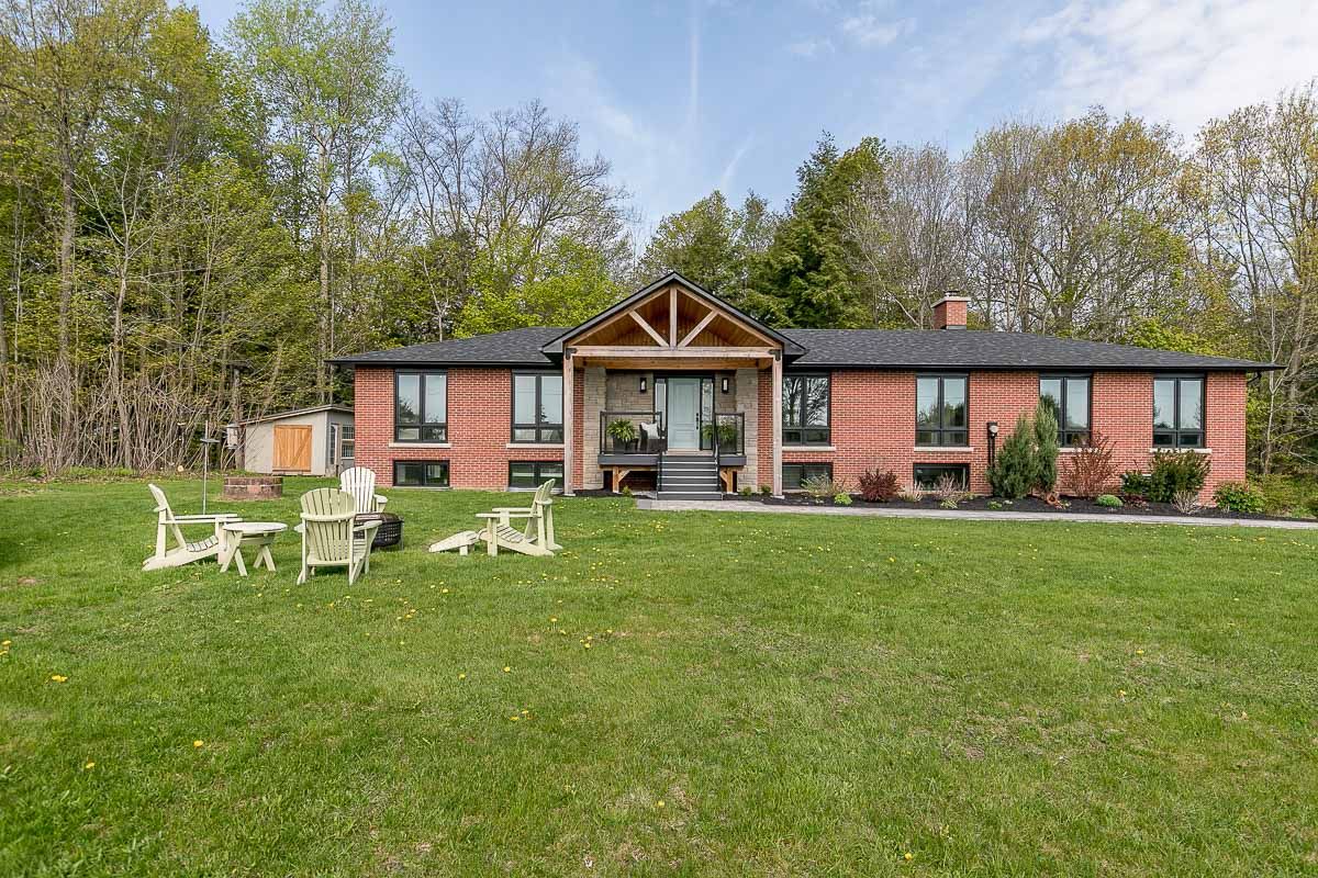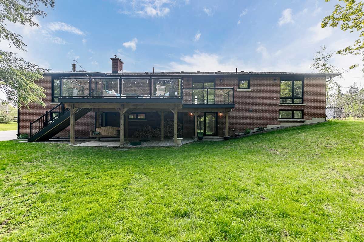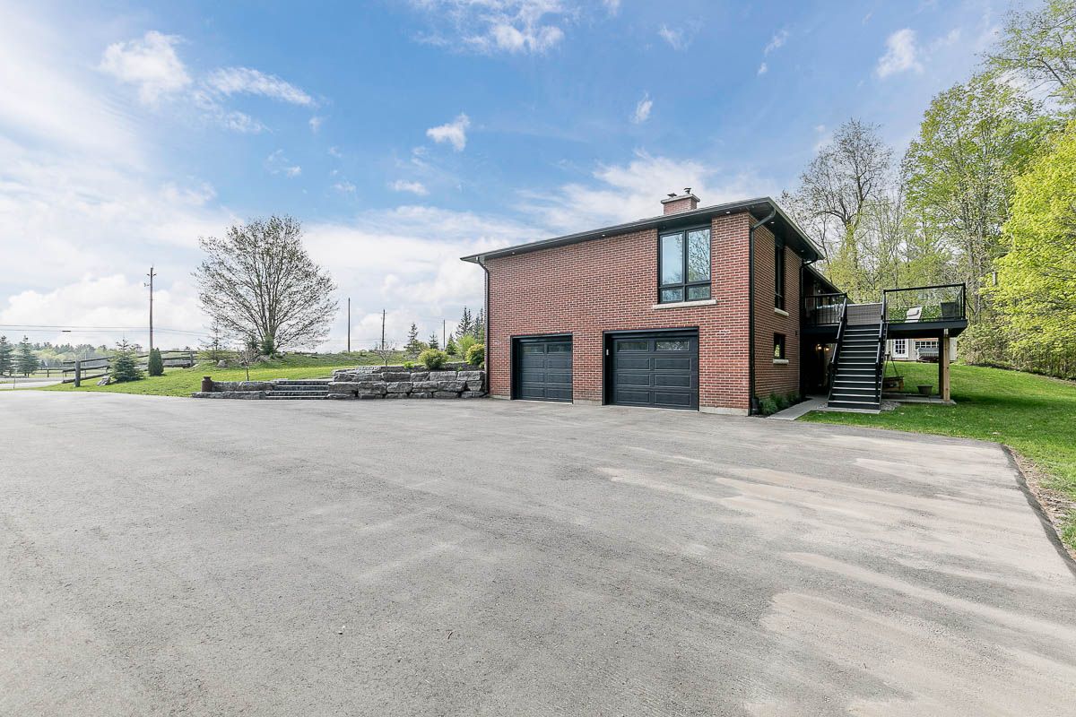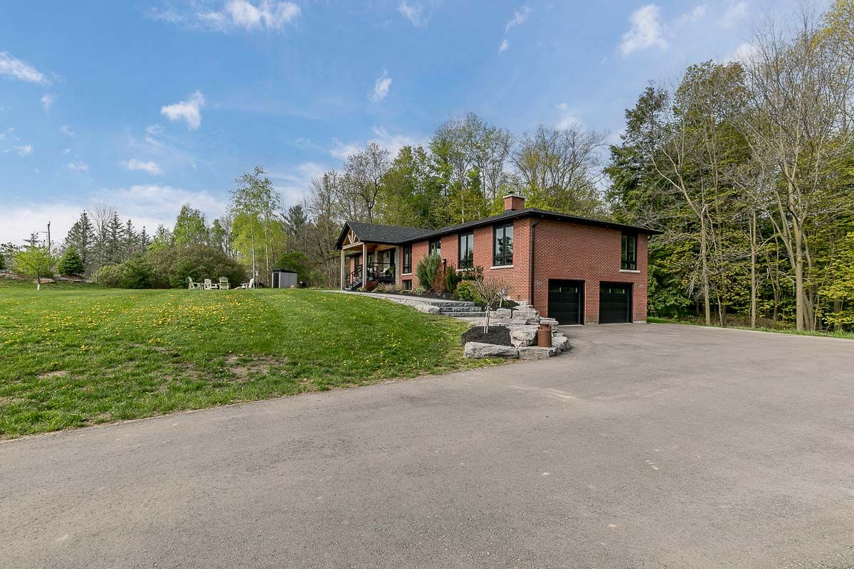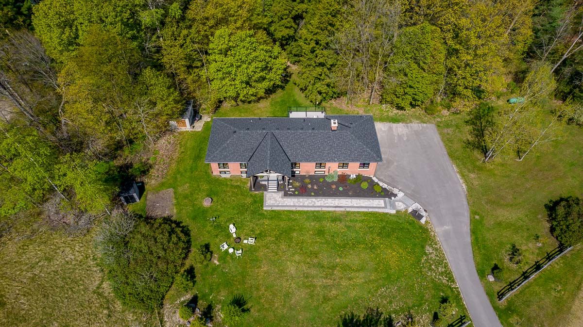 Set on 1.4 acres just North of King Township and close to highway 9 this stunningly renovated 3+2 bedroom bungalow with in-law suite. Follow the newly paved drive and interlock walkway to the timber frame and stone entrance. Designer chosen finishings are perfect for this country chic home. Open concept kitchen and dining room area with tons of cupboard space and a large island with a breakfast bar flows through to the living room with floor to ceiling stone fireplace and cappuccino bar. Walkout to the deck and relax in the peacefulness of your own private backyard. Four tastefully refinished bathrooms and all bedrooms are a great size. Lower level access to in-law suite is framed through mudroom. Lower level has 2 bedrooms, bathroom and ensuite laundry.Triple paned black frame windows, new doors and hardscapes are just a few of the items completed recently. Back deck overlooking lush forest with trilliums scattered throughout.