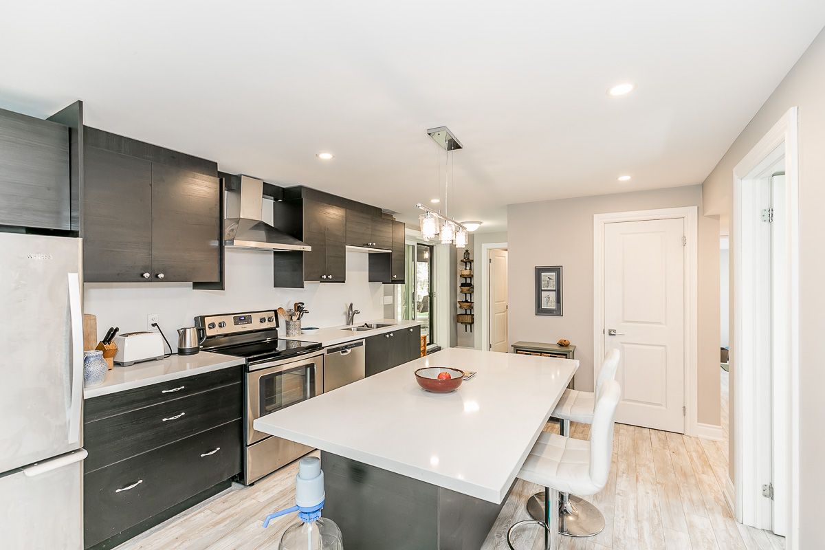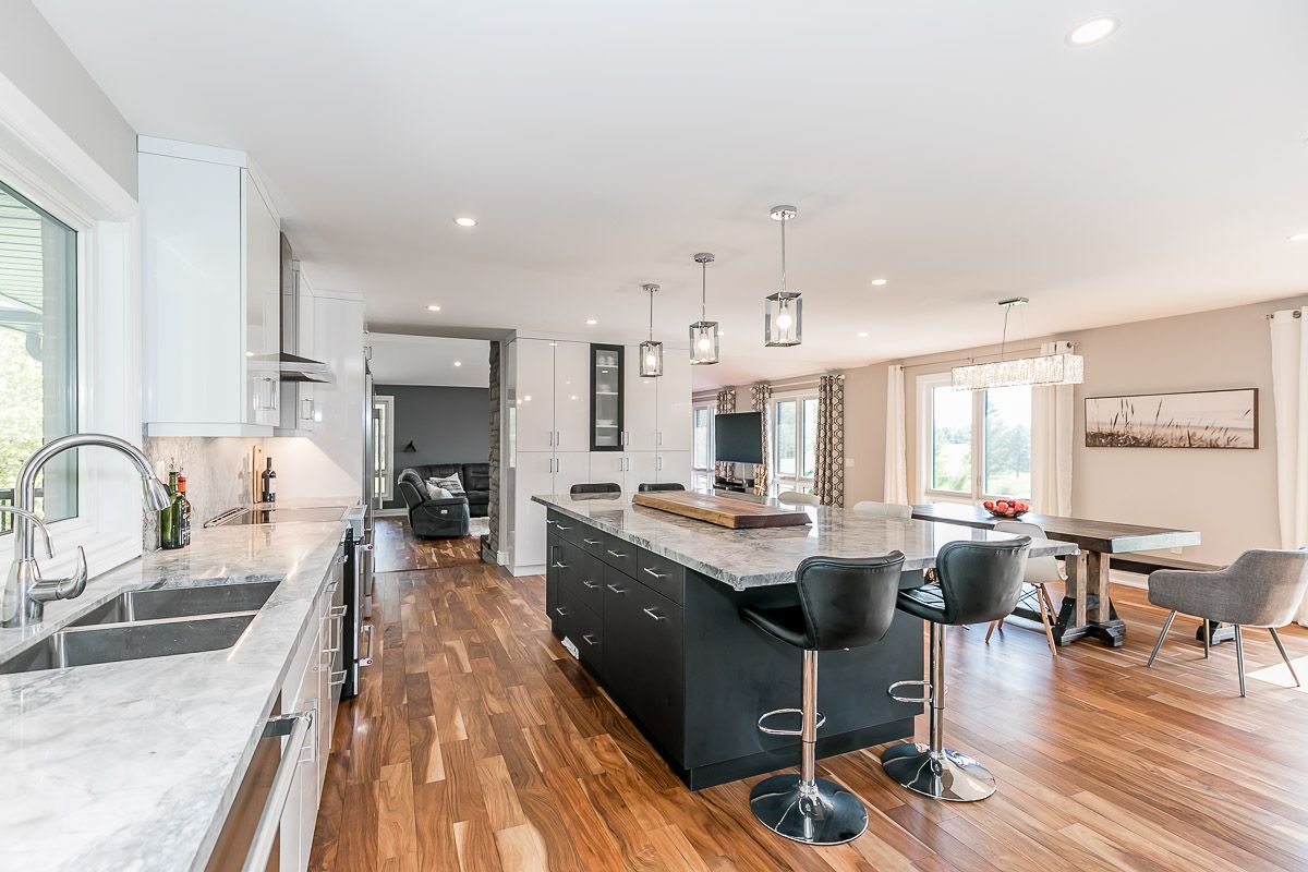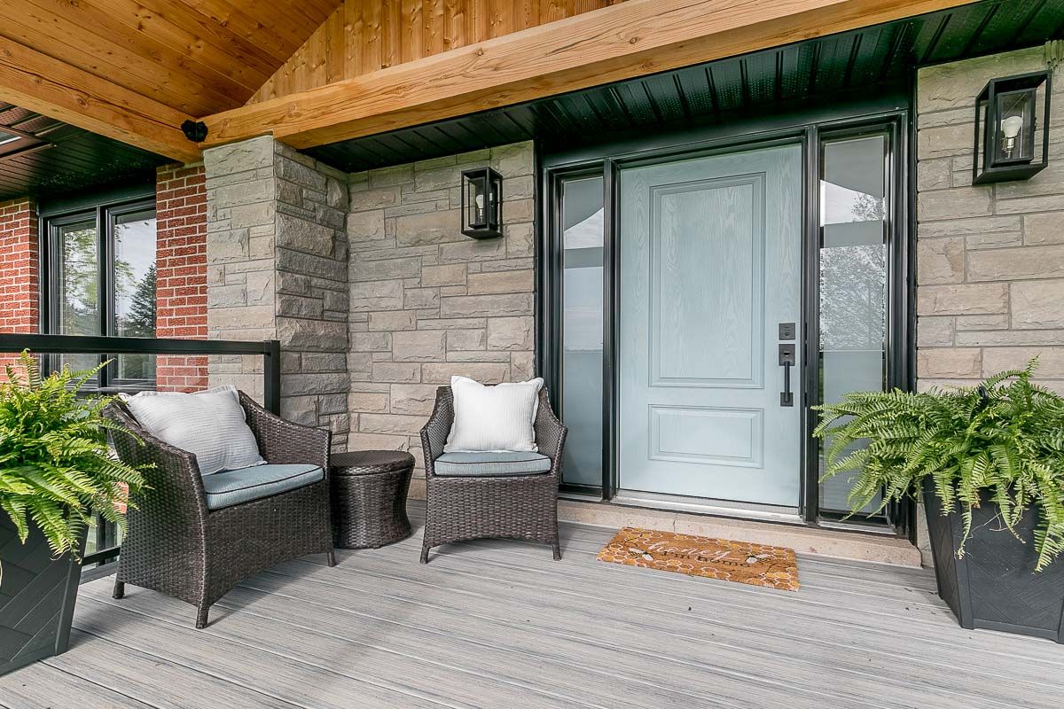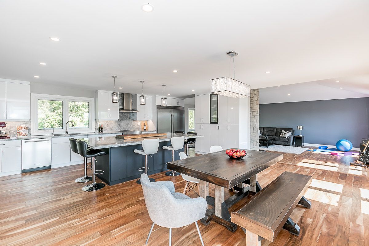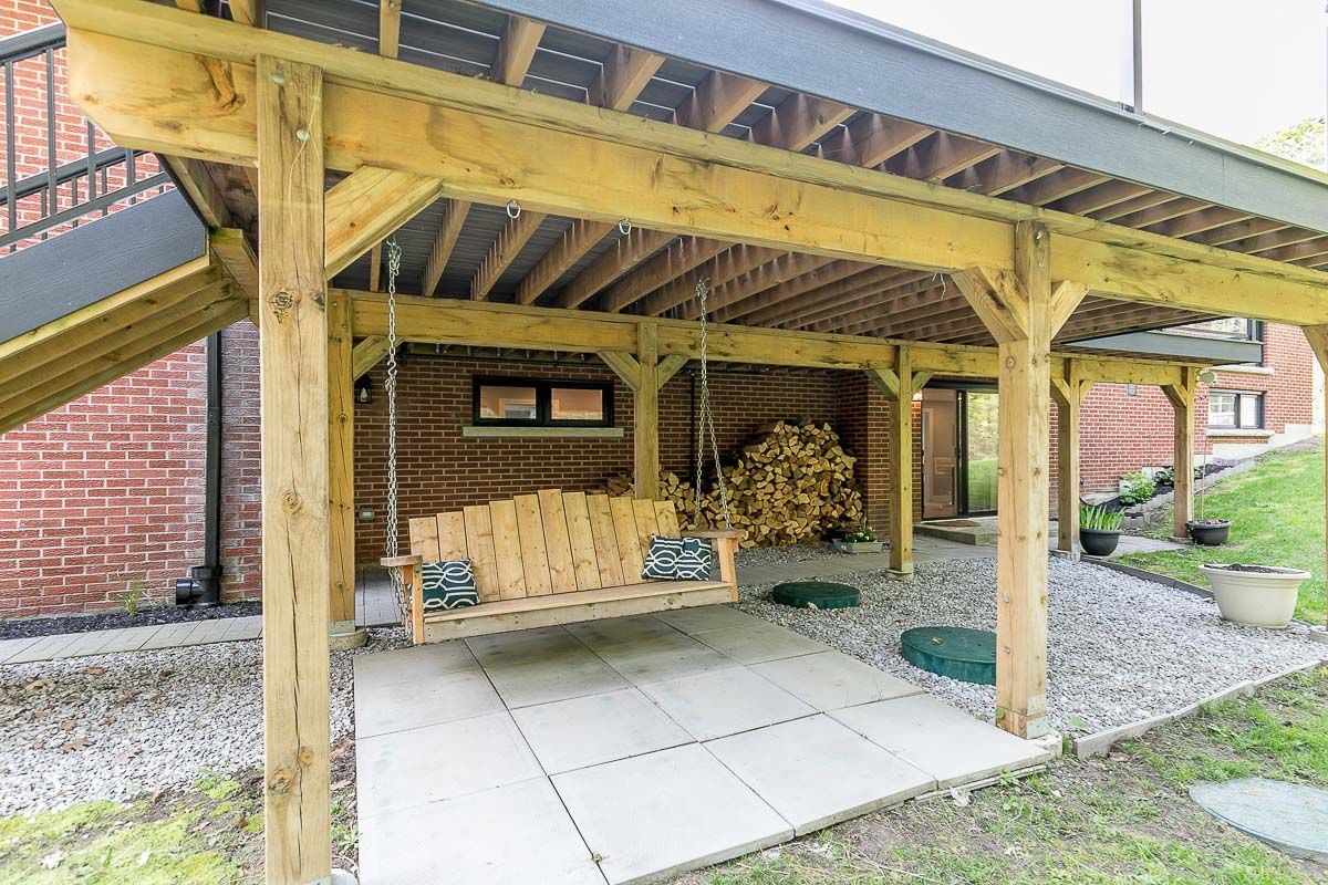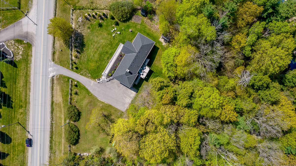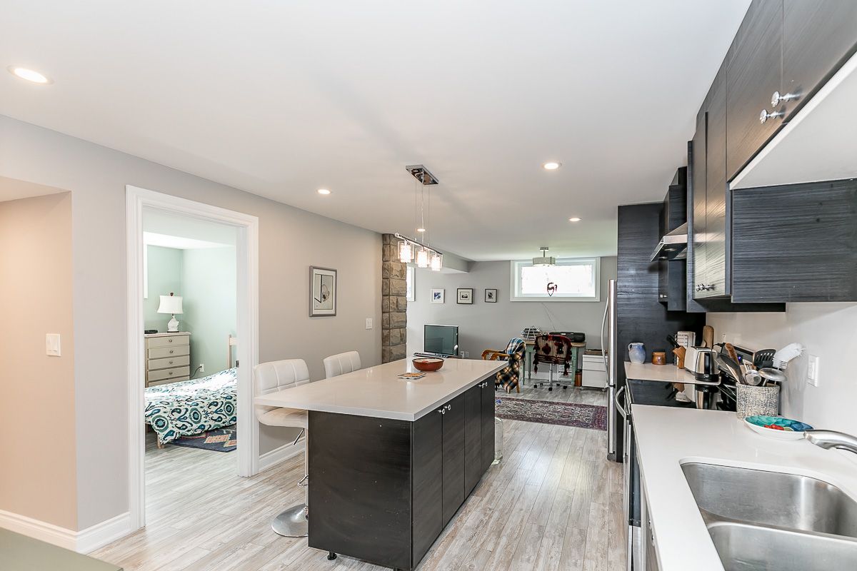 Set on 1.4 acres just North of King Township and close to highway 9 this stunningly renovated 3+2 bedroom bungalow with in-law suite. Follow the newly paved drive and interlock walkway to the timber frame and stone entrance. Designer chosen finishings are perfect for this country chic home. Open concept kitchen and dining room area with tons of cupboard space and a large island with a breakfast bar flows through to the living room with floor to ceiling stone fireplace and cappuccino bar. Walkout to the deck and relax in the peacefulness of your own private backyard. Four tastefully refinished bathrooms and all bedrooms are a great size. Lower level access to in-law suite is framed through mudroom. Lower level has 2 bedrooms, bathroom and ensuite laundry.Triple paned black frame windows, new doors and hardscapes are just a few of the items completed recently. Back deck overlooking lush forest with trilliums scattered throughout.