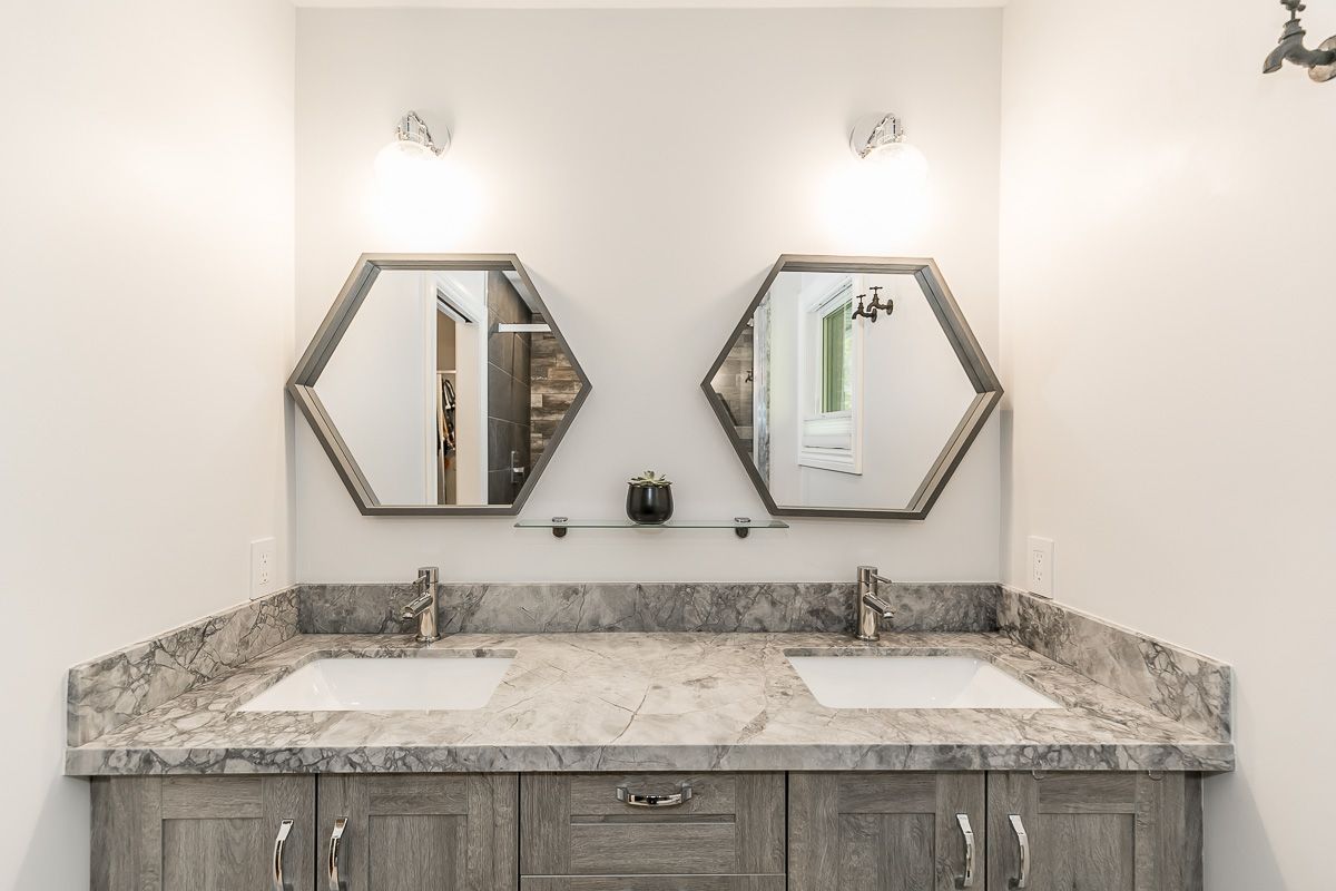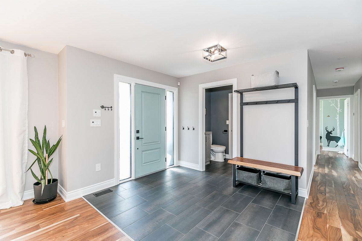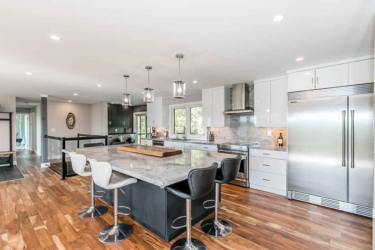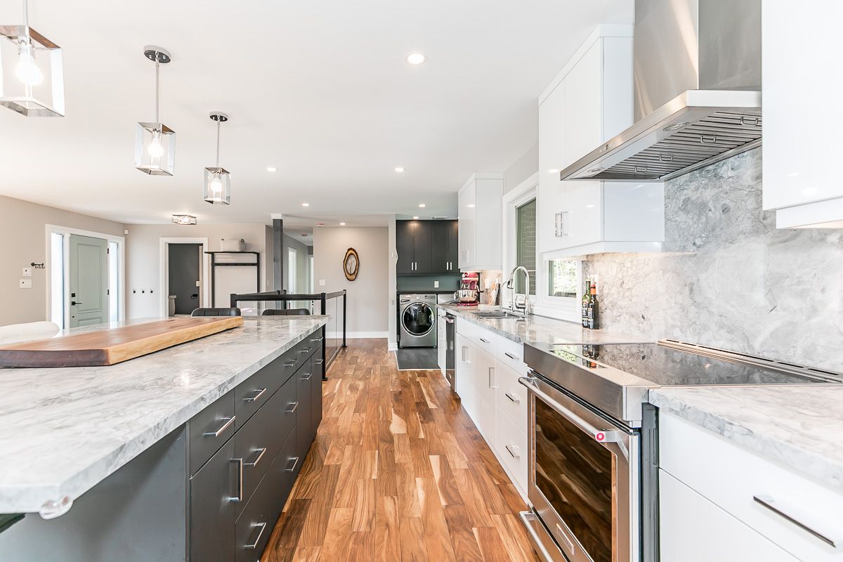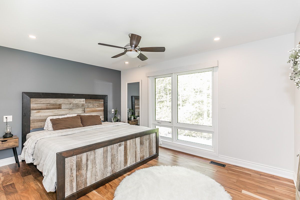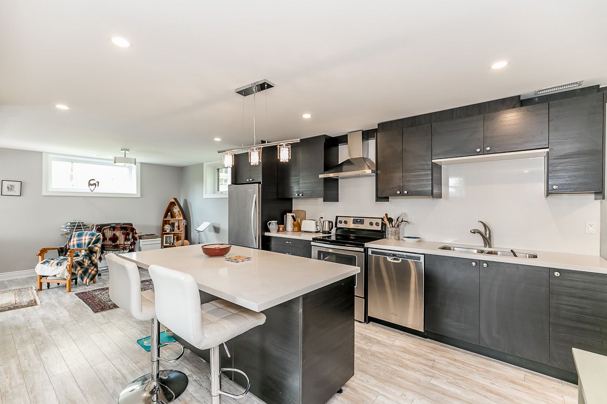 Set on 1.4 acres just North of King Township and close to highway 9 this stunningly renovated 3+2 bedroom bungalow with in-law suite. Follow the newly paved drive and interlock walkway to the timber frame and stone entrance. Designer chosen finishings are perfect for this country chic home. Open concept kitchen and dining room area with tons of cupboard space and a large island with a breakfast bar flows through to the living room with floor to ceiling stone fireplace and cappuccino bar. Walkout to the deck and relax in the peacefulness of your own private backyard. Four tastefully refinished bathrooms and all bedrooms are a great size. Lower level access to in-law suite is framed through mudroom. Lower level has 2 bedrooms, bathroom and ensuite laundry.Triple paned black frame windows, new doors and hardscapes are just a few of the items completed recently. Back deck overlooking lush forest with trilliums scattered throughout.