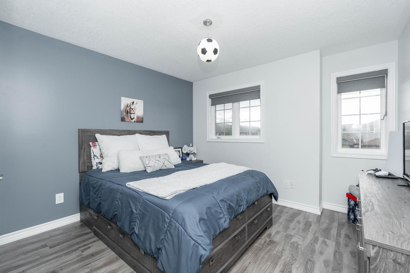 Welcome to 45 McMulkin! This beautifully renovated 3 bed, 3 bath home rests on a family-friendly street in Alliston. Its open concept layout is designed for seamless entertaining, while the stylish white kitchen with a breakfast bar (ceaser stone countertops) adds an elegant touch. Throughout the home, you'll find gleaming hardwood floors and a spacious family room, perfect for relaxation. With pot-lights, stainless steel appliances, and upgraded light fixtures, the house exudes modernity. The renovated laundry room also doubles as a mudroom from the garage entrance. Additionally, there are 3 generously sized bedrooms and 3 fully renovated bathrooms. This home boasts incredible curb appeal with its stone landscaping at the front and offers a large backyard space with wood deck for outdoor entertainment. Don't miss out on the opportunity to make 45 McMulkin your dream home! Shows 10+++Fridge, Stove, Dishwasher, Washer & Dryer, Window Coverings, Light Fixtures.