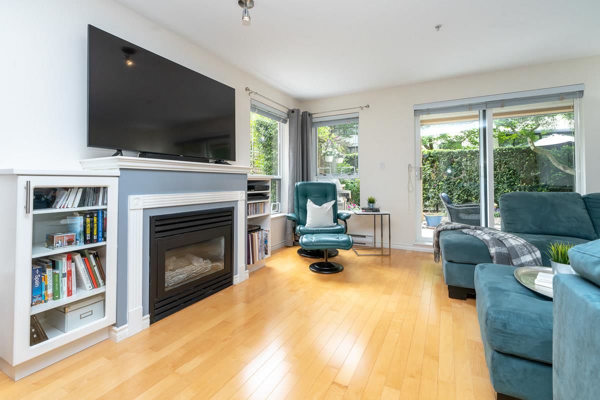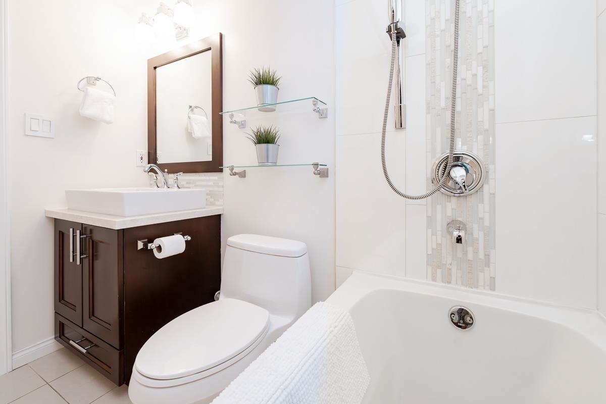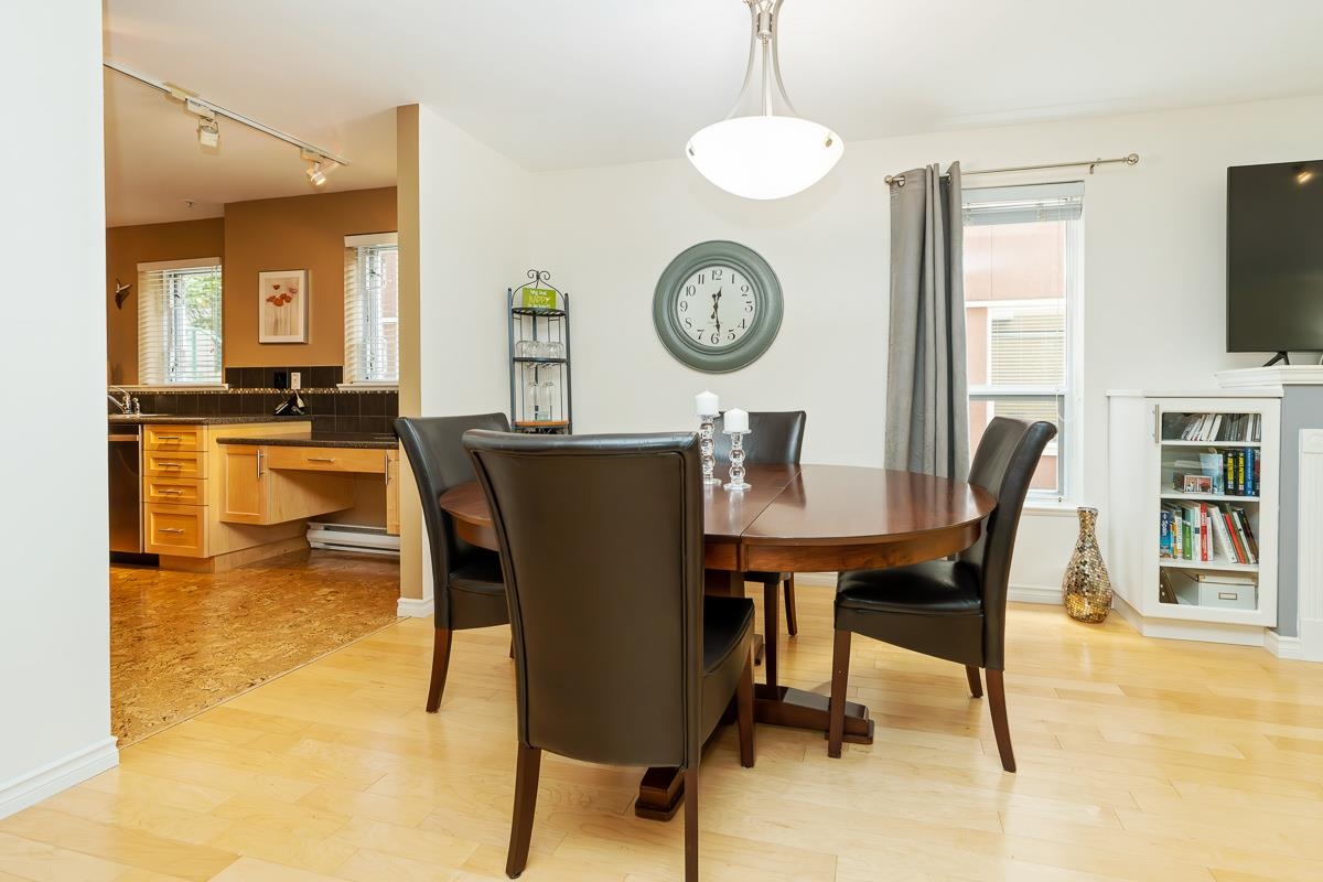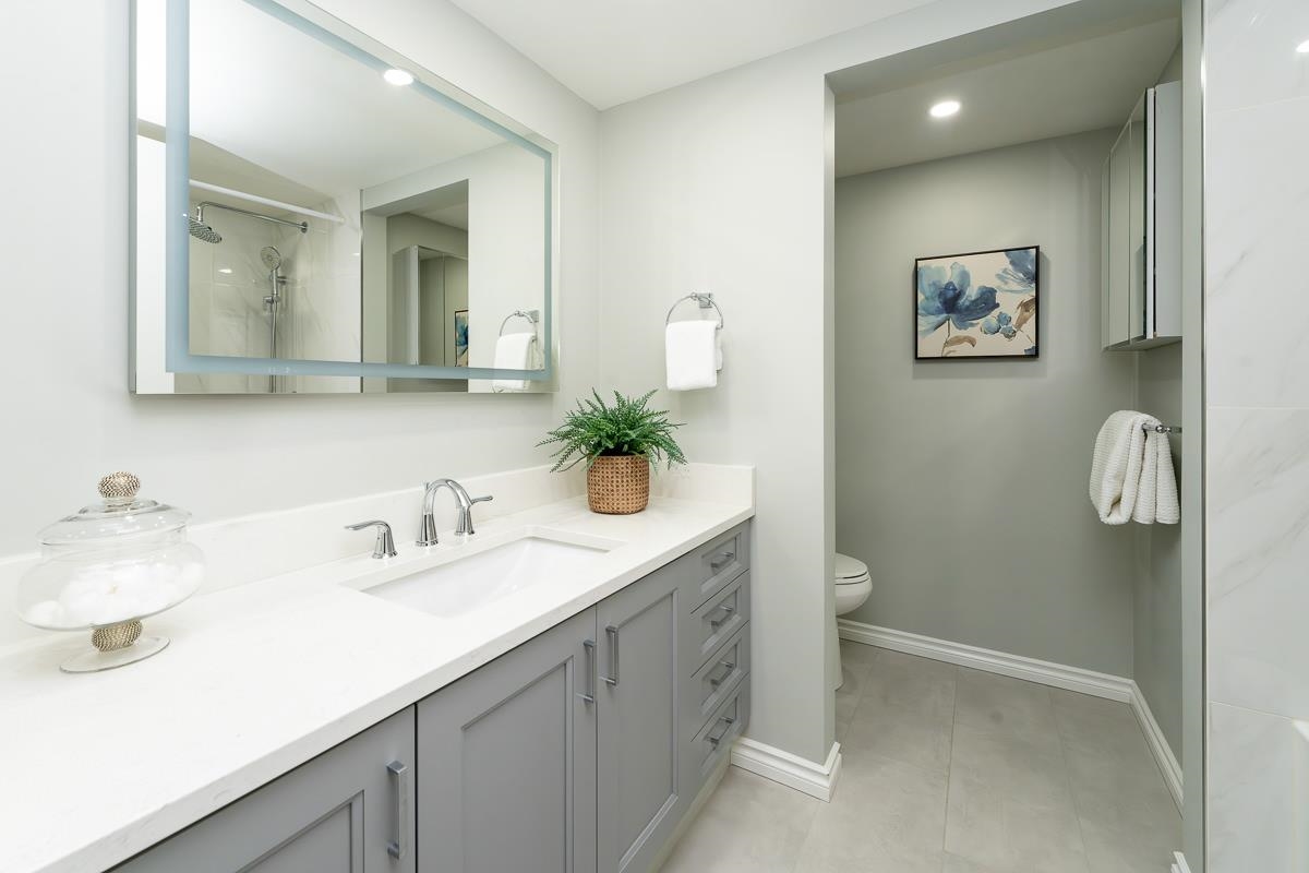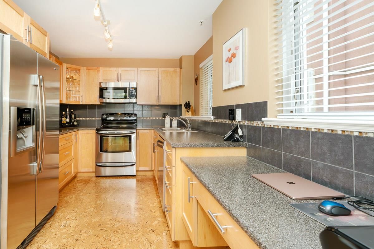 STUNNING 2 bdrm 2 bthrm condo w/ over 1200 sqft, this spacious unit offers a fantastic layout & own separate entrance, truly making it feel like a house! The real highlight is the BEAUTIFUL private patio that awaits you, providing an oasis for gardening, BBQ'ing & entertaining. Come & discover a thoughtfully renovated interior that exudes elegance. HW flooring sets a warm & inviting tone throughout, while the incredible bthrms showcase stylish design & high-quality finishes. Kitchen is a chef's dream, featuring S/S appliances, ample counter space, LARGE pantry & an office nook. Excellent building recently re-piped, new fire panel, rain screened, fully equipped gym, secure visitor parking, resident caretaker. 2 Pets OK! Close to Boardwalk, Quayside Market, Parks, Skytrain, Transit!