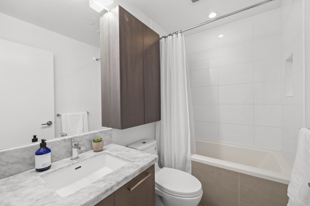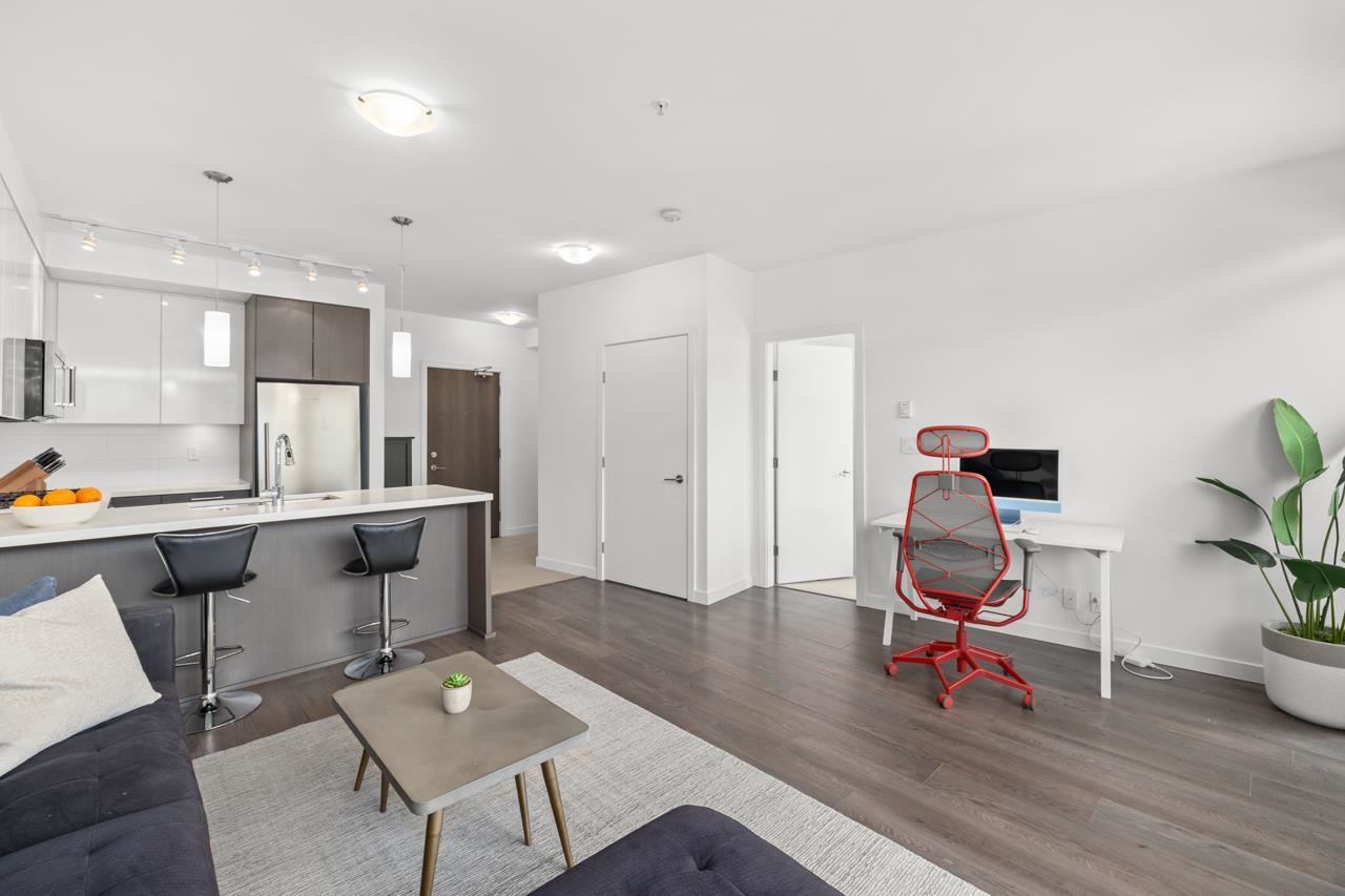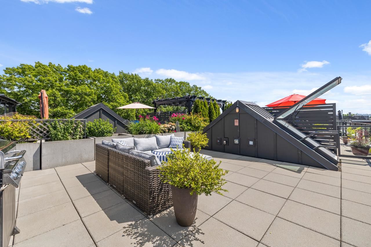 Welcome to the Lookout! This bright & stylish 1 bed, 1 bath condo offers incredible outdoor space- 480 sqft rooftop deck, perfect for entertaining and your own oasis + two more balconies! Floor to ceiling windows run the length of this home with stainless steel appliances, gas stovetop, and quartz countertops, kitchen has lots of storage. The complex is still under the 10-year warranty offering peace of mind. Includes 2 side by side parking stalls, storage + insuite laundry. The complex has everything you need- gym, amenity room, and lots of green space with views of the river. Steps away from coffee, pizza, small grocer and transit. Pets ok. Call your realtor to book a private appointment! Open House Saturday, June 17th 1-2pm