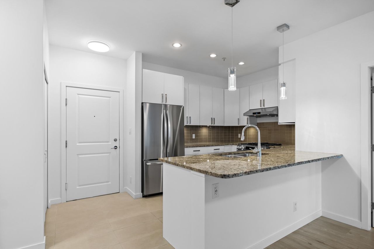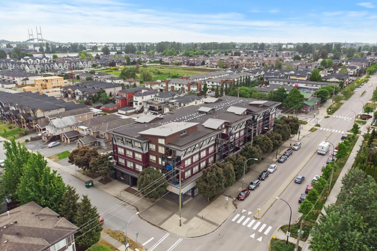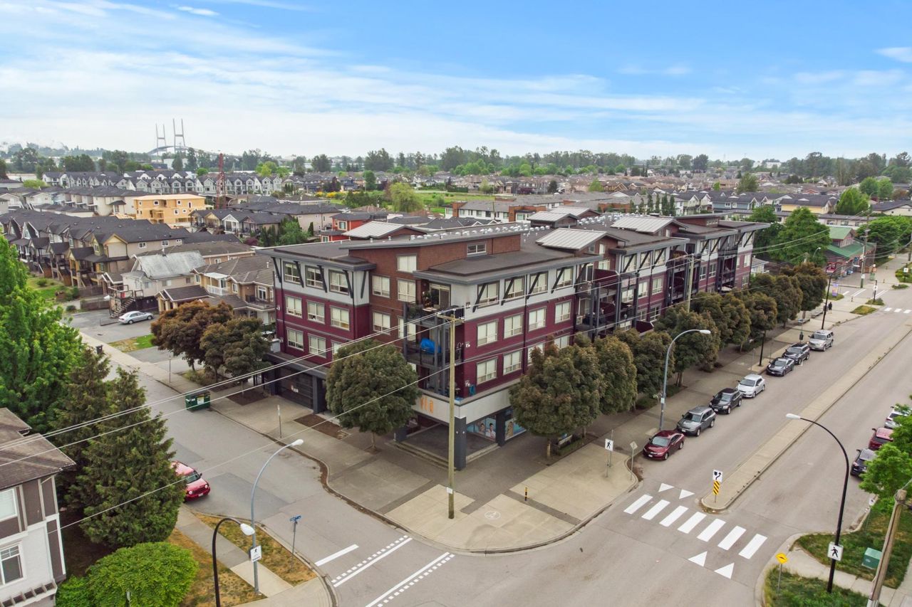 This Queensborough home features 2 bedrooms, 2 bathrooms plus den with a large partially covered balcony terrace and great mountain views. With high ceilings and an open floor plan, this unit feels spacious and welcoming. The kitchen has brand new S/S appliances, gas cook top, built in wine fridge, granite counters with a breakfast bar perfect for cooking and entertaining. Living/dining room fills with natural light and features a cozy gas fireplace. This home is close to Queensborough Landing, Walmart, Starlight Casino, Community Centre, schools, transit and easy access to HWY #91 E/W connect to Richmond, Vancouver and Burnaby.