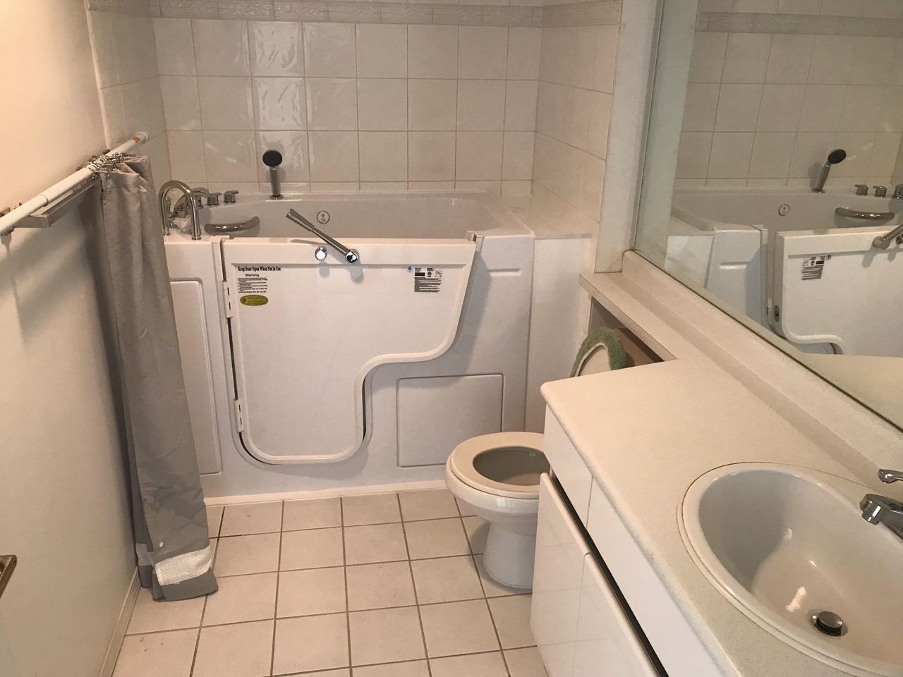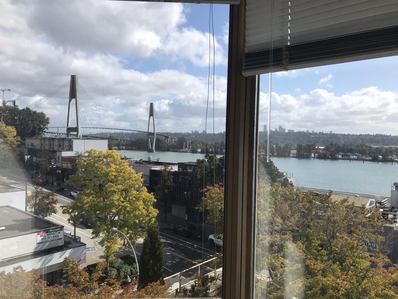 Be greeted every morning by natural sunlight & indulge in Panoramic views of New West's riverfront from your large 2 bedroom , 2 baths (1 bath with Walk-In-Tub) condominium. 1 parking plus additional storage locker in parking level, Pets allowed with restrictions (1 dog 18" height max at shoulder) or 1 cat, rentals allowed(min 30 days). Full gym, hot tub and sauna as well as large common garden level patio for you to enjoy! Amazing location within walking distance to all amenities, transit, schools, parks & New West Quay!