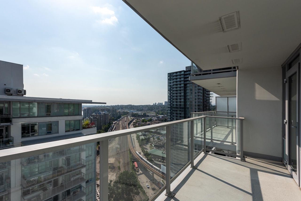 Spectacular river and city views from the 29th floor in BOSA’S RIVERSKY 1. Just steps to the Boardwalk, Quay Market, Pier Park, theatres, shopping and Skytrain. LIKE NEW condition. Upgrades include glass shower enclosure, custom lighted mirror in kitchen & light fixtures. Clever design featuring BOSAspace system - island w/built-in extendable table seats up to 8, ‘sliding’ TV wall w/fold down bed. Kitchen features integrated fridge and DW, Italian cabinetry, quartz counters. Private 105 SF balcony offers amazing views. F/T concierge, gym, yoga studio, parcel service, & Riversky club w/fireside lounge, kitchen, TV & terrace w/loungers and BBQ area overlooking the Fraser River. 1 pkg, 1 locker on same level. 2 pets OK. Open Saturday June 10, 2-4 PM