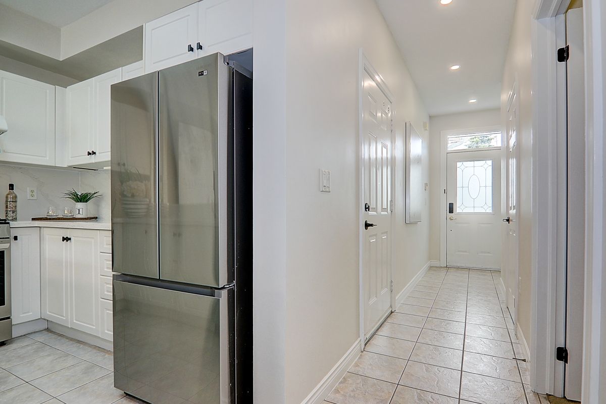 *Rare Opportunity To Own A Fabulous Townhome In College Manor! * Newly Renovated * 3 Bedroom Townhouse Close To 1800sf Living Space (Including Basement) * Newly Renovated Kitchen, Granite Countertop * Pot Lights Throughout * Open Concept Living & Dining, Overlook Garden * 3 Large Size Bedroom, Super Founctionable * Walk-out Basement With A Large Size Recreation Room, Can Be Used As Family Room * Very Beautiful And Quite College Manor Community * Walking Distance To Schools * Bogart Pond & Trails Just Behind The House * Enjoy Plenty Sunshine, Fresh Air And Birds Singing Every Morning When You Wake Up!*Fridge, Gas Stove, Dishwasher, Range Hood, Washer & Dryer & All Elf. EV Charger Outlet In Garage. Maintenance Fee Includes Snow Removal & Lawn Care, Exterior Roof Shingles And Eavestrough Maintenance, Common Elements.