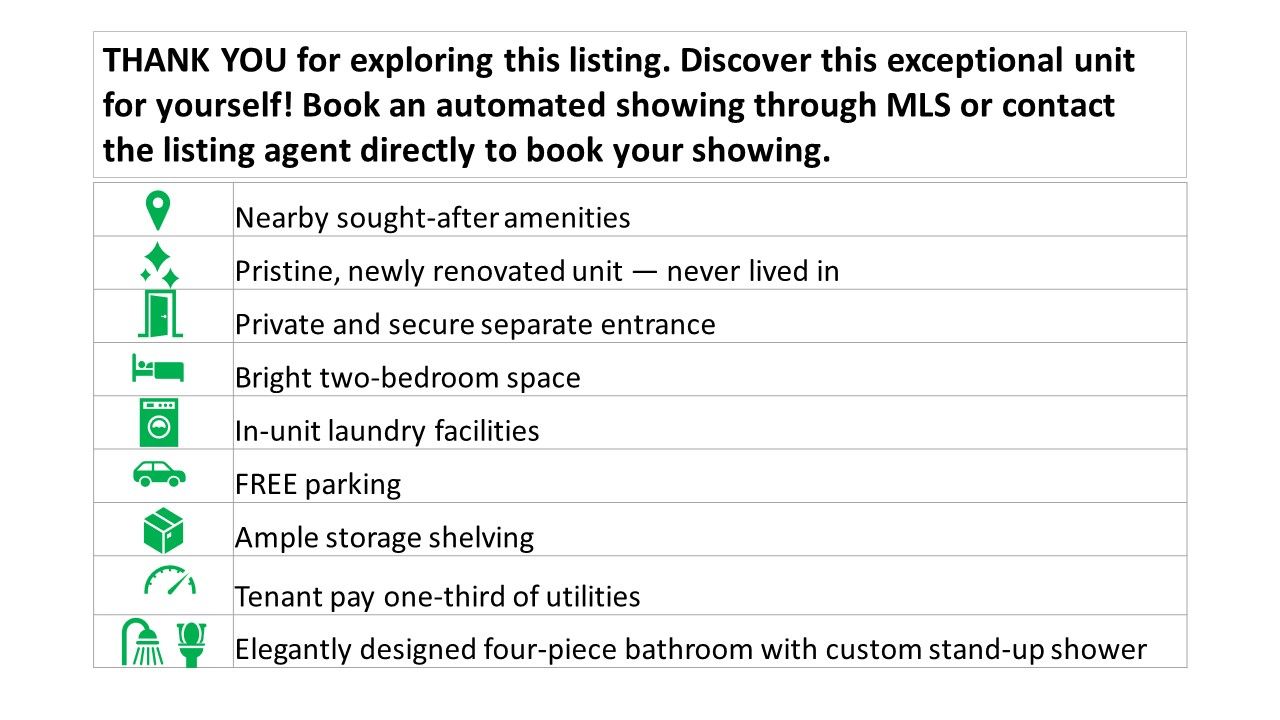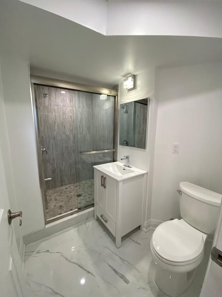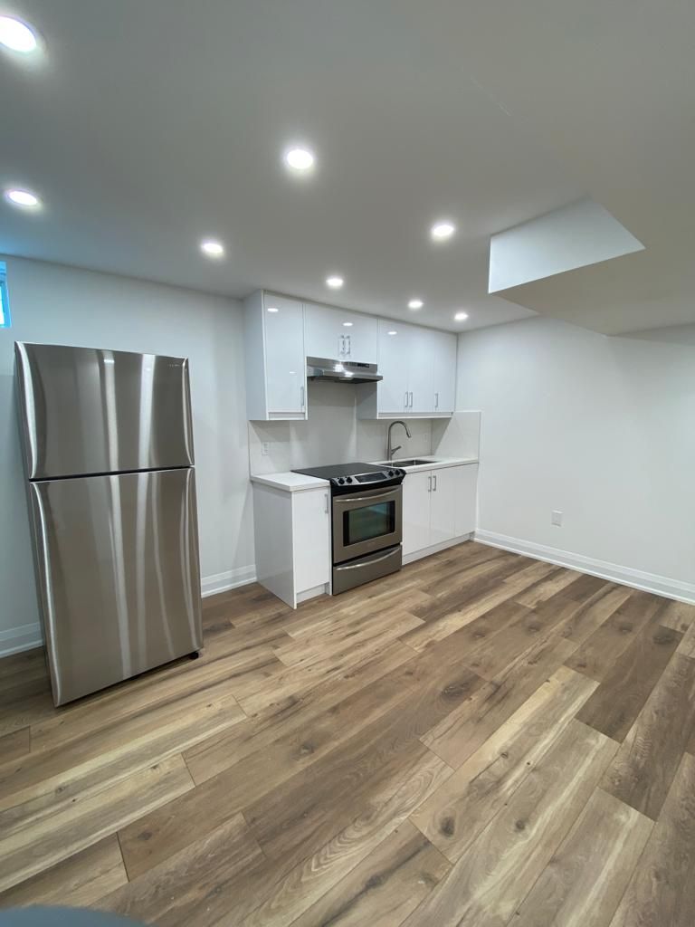 Beautifully renovated 2 bedroom basement apartment, never before occupied, in a welcoming family-friendly neighbourhood. Featuring a separate entrance, bright spotlights, and a custom-built shower. Located just minutes away from Costco, schools, parks, transit, GO train, shopping, and other amenities. Convenient access to the 404 HWY. Tenants contribute one third towards utilities shared with the main floor. Parking includes space for one car on the right side of the driveway.1 parking spot. The tenant is responsible for sidewalk/entrance cleaning where applicable.