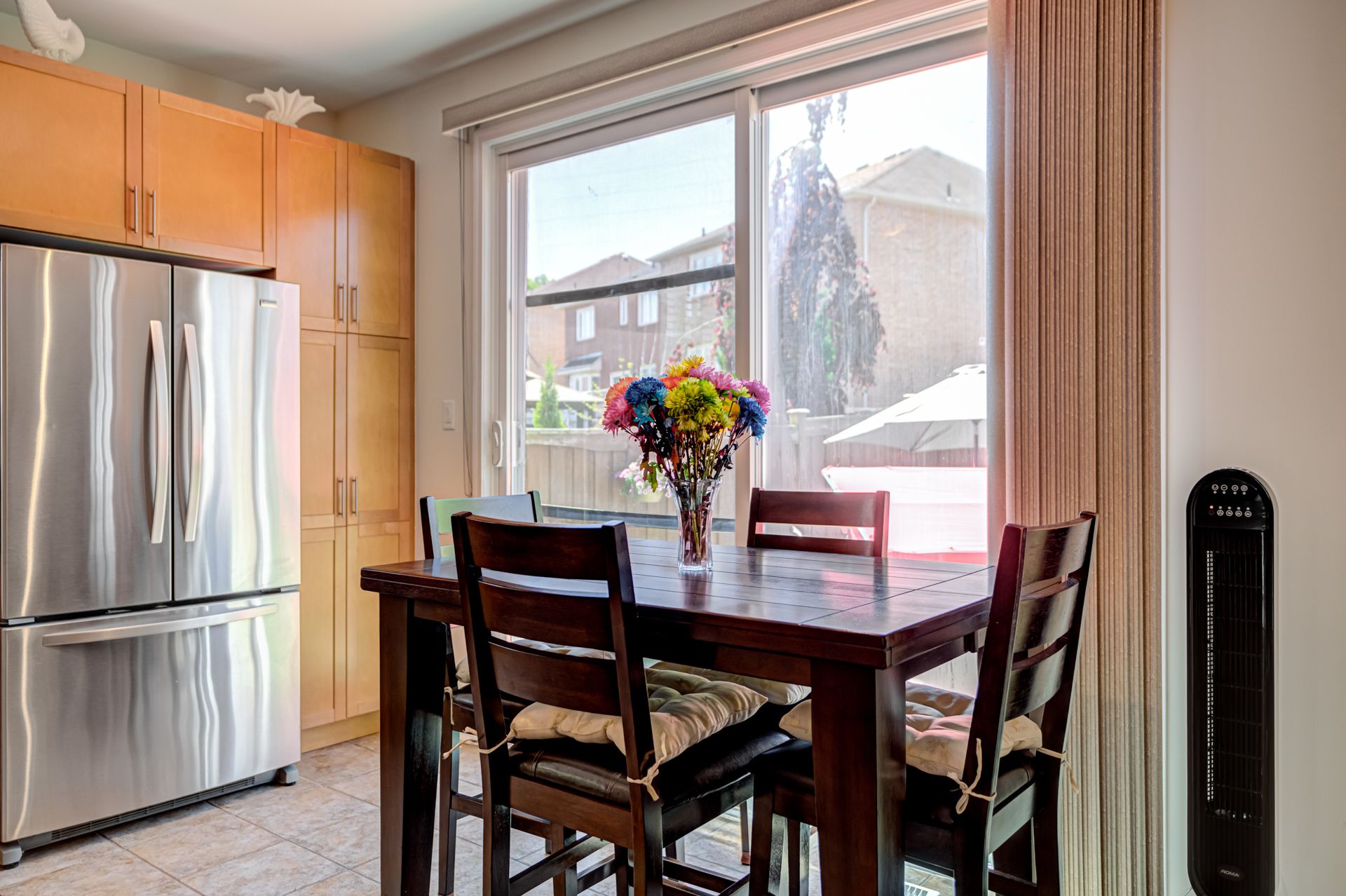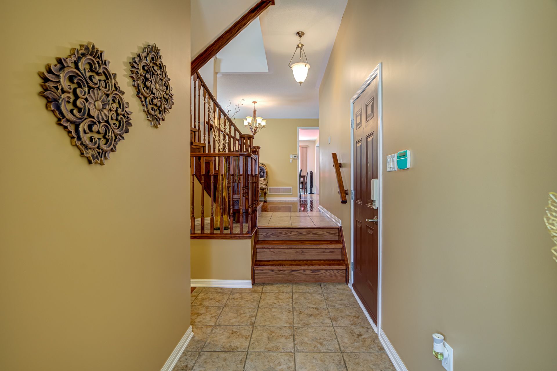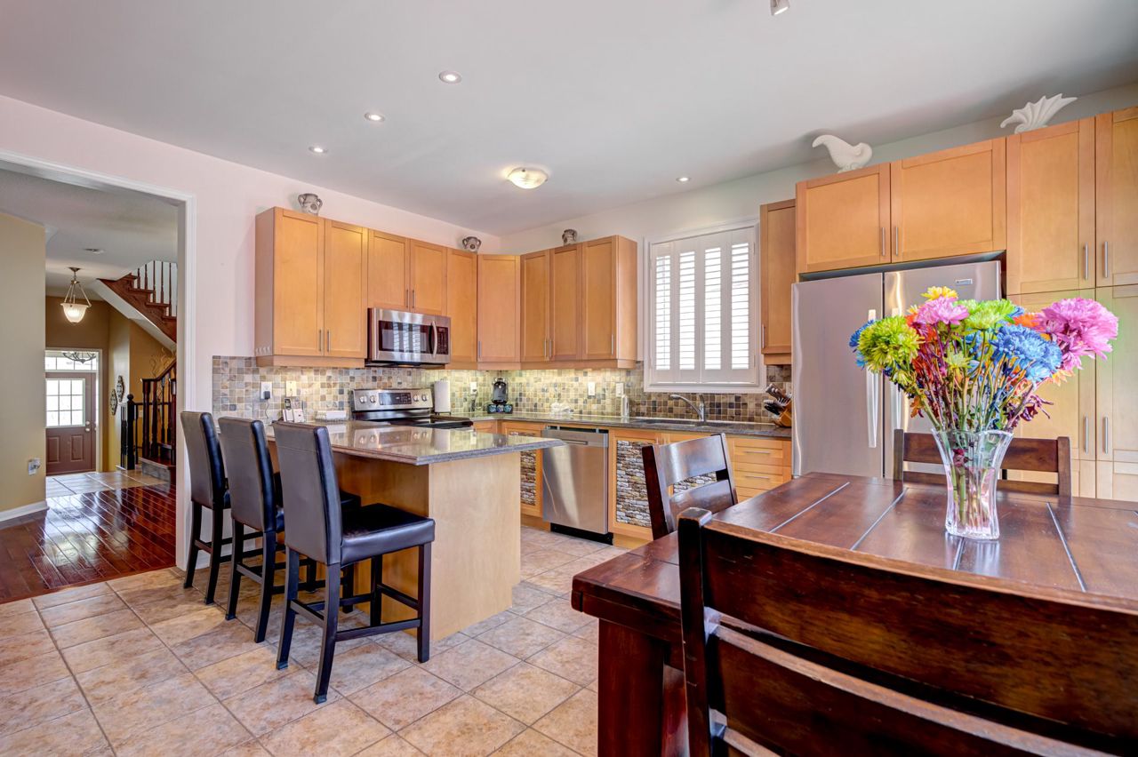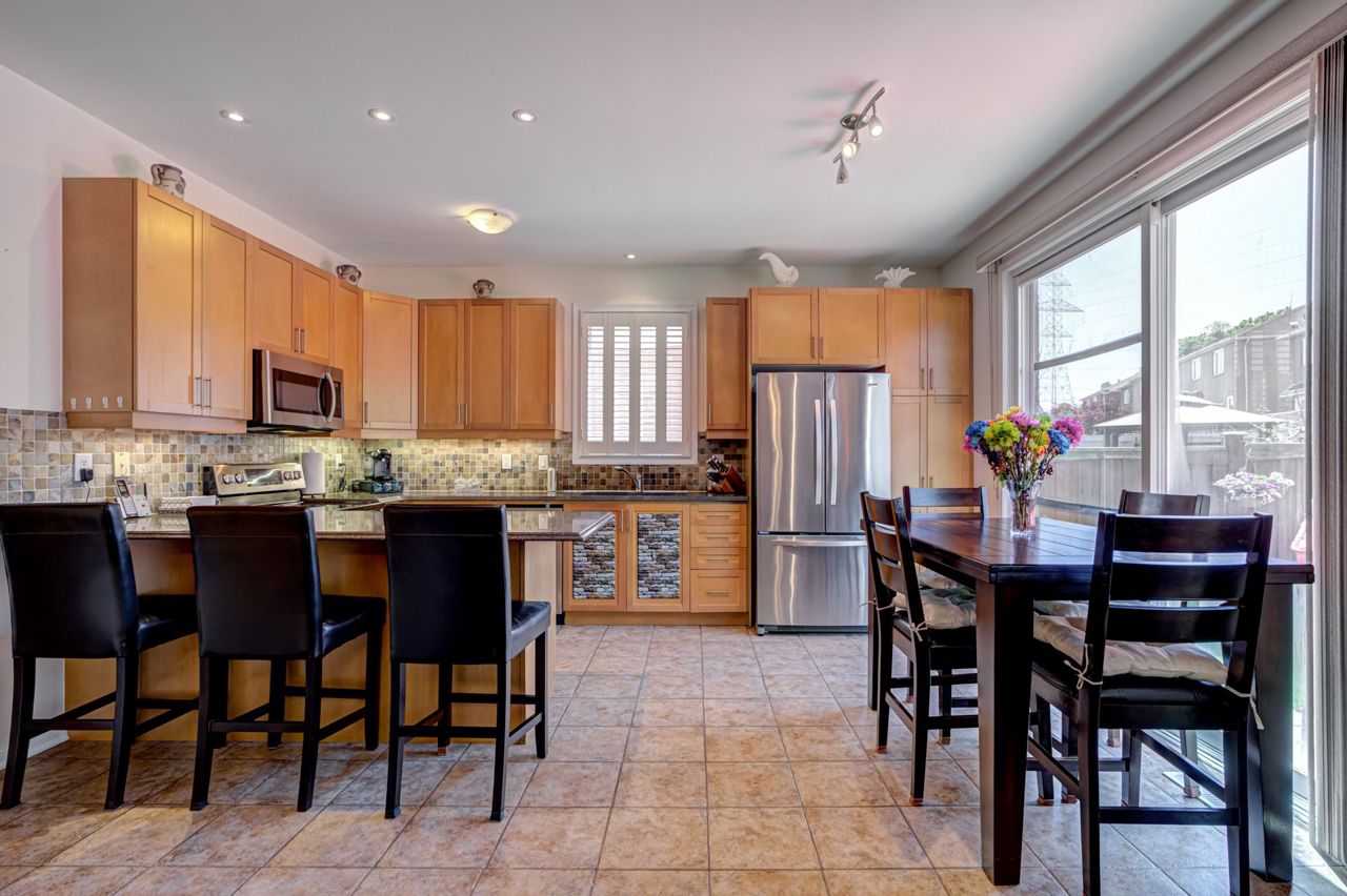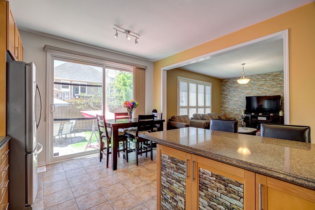Beautiful Engergy Star Rated 4Bdr Brick Home.Apprx 2500Sf. Upgraded; 9Ft Ceiling,Potlights,Huge Upgraded Kitchen; Maple Cabinets,Valance Lighting, Extra Pantry Island W/Breakfast Bar Granite, Over Size Slider Door,Sharp Backsplash. Window Above Kitch Sink. Access To Garage. Look Out Windows In Basement,3 Pc R/I,Fenced Yard Great Stone Patio.Quiet Crescent. Walk To School,Park, Min To All Shopping & Hwys. Bright HomeAppliances, window coverings, ELFs, washer, dryer. Water softener and humidifier owned.
