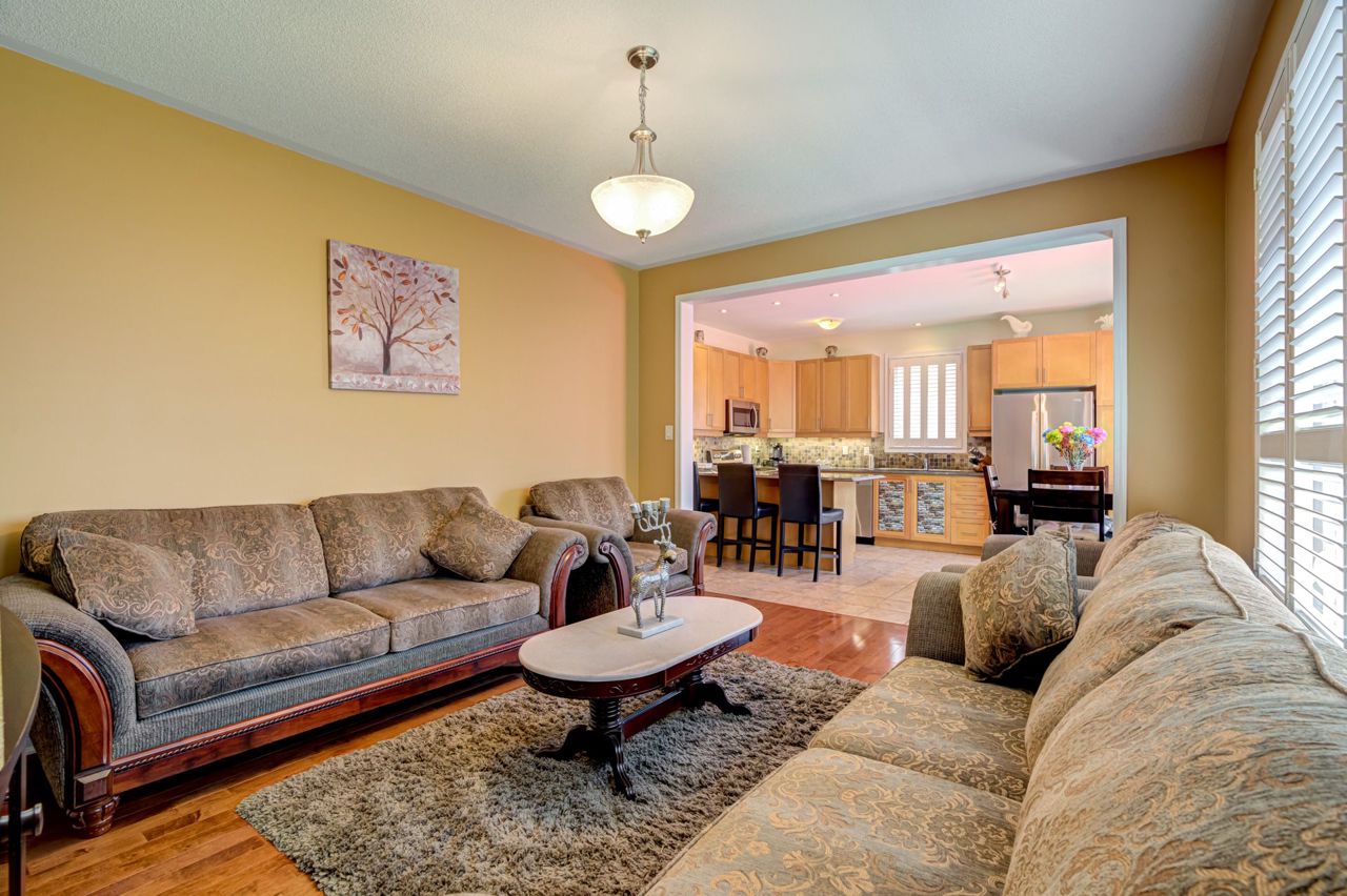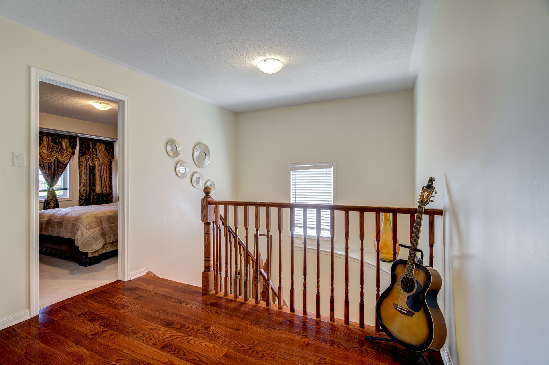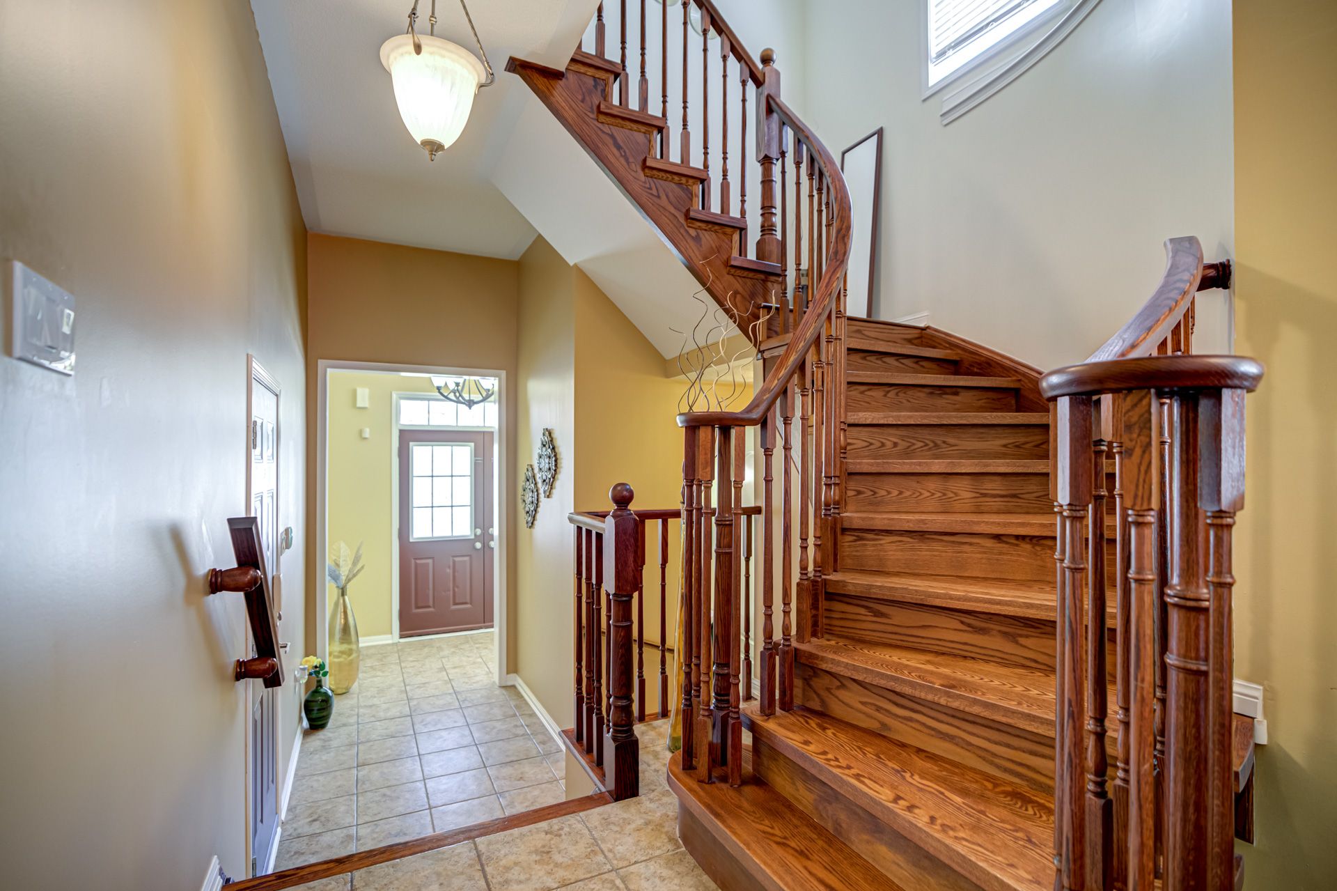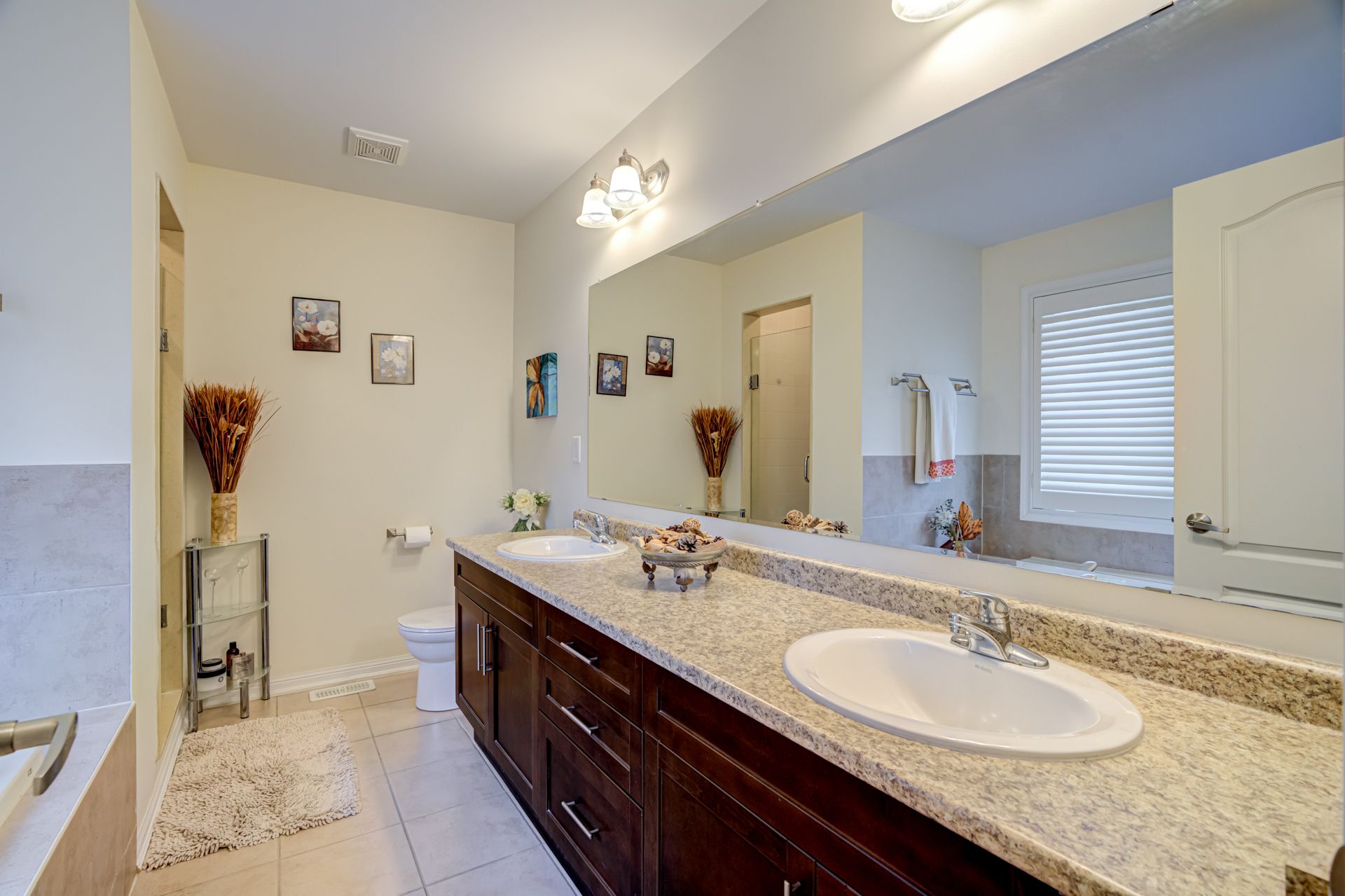 Beautiful Engergy Star Rated 4Bdr Brick Home.Apprx 2500Sf. Upgraded; 9Ft Ceiling,Potlights,Huge Upgraded Kitchen; Maple Cabinets,Valance Lighting, Extra Pantry Island W/Breakfast Bar Granite, Over Size Slider Door,Sharp Backsplash. Window Above Kitch Sink. Access To Garage. Look Out Windows In Basement,3 Pc R/I,Fenced Yard Great Stone Patio.Quiet Crescent. Walk To School,Park, Min To All Shopping & Hwys. Bright HomeAppliances, window coverings, ELFs, washer, dryer. Water softener and humidifier owned.