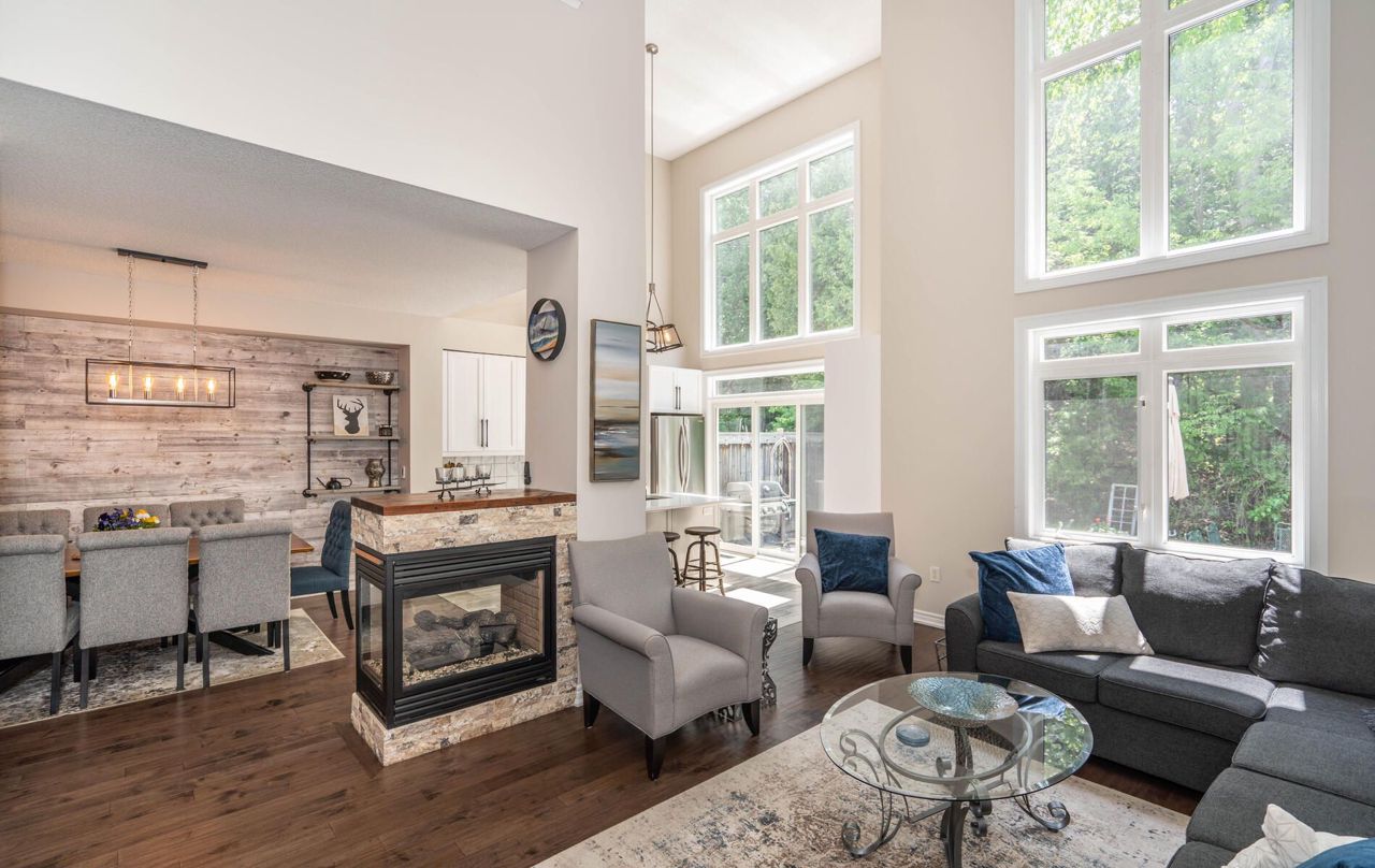 Absolutely beautiful, rarely offered three bedroom (2 up, 1 main), two-car garage townhome backing onto forest on a quiet cul-de-sac in the Bogart Pond Enclave. Stunning open concept main floor w/two storey windows giving an incredible view of mature trees. Gorgeous renoed kitchen w/w/ out to patio. Newer oak hardwood throughout. Newer oak staircase, newer mn flr 3-sided fireplace. Painted throughout (2019), large open concept loft, perfect for at home office. Washrooms on every level. Newer driveway+curb stop (2022), all windows re-sealed (2022), owned tankless water heater and water softener. Just a walk away from treed trails and Bogart Pond. Minutes to 404, great schools, shopping, Magna Centre. This wonderful home has everything you're looking for. It's the perfect 'Almost Muskoka' getaway in the middle of Newmarket. Don't miss the virtual tour.Maintenance fee includes snow removal, garden and lawn care, exterior roof shingles and eavestrough maintenance, common elements. Pets are permitted with restrictions. Status Certificate is available.